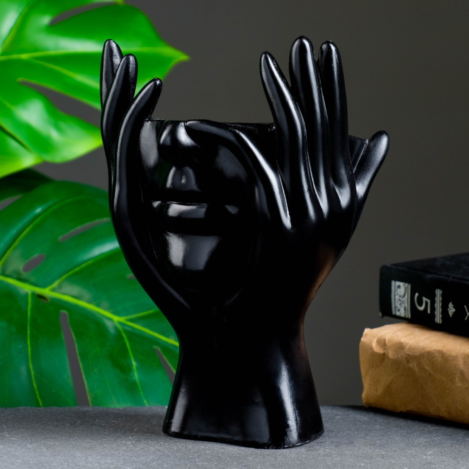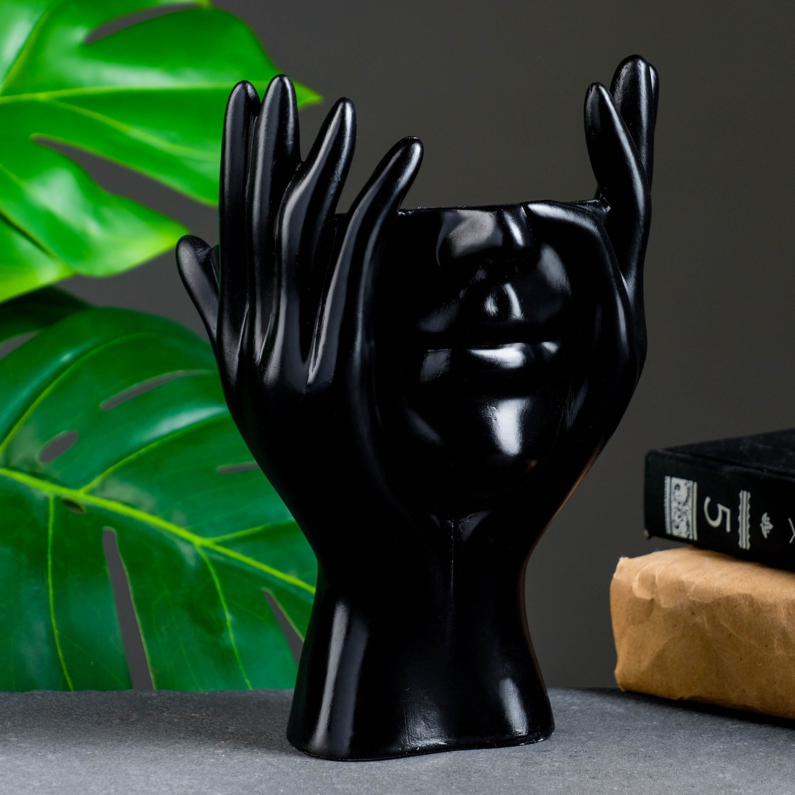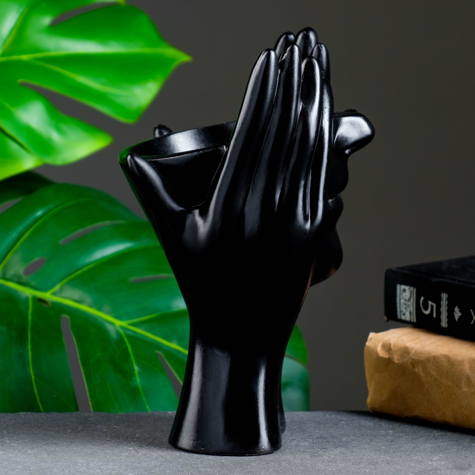 Фигурное кашпо для цветов «мечты в руках», 380 мл, 20.5 13.5 13 см, гипс, чёрное