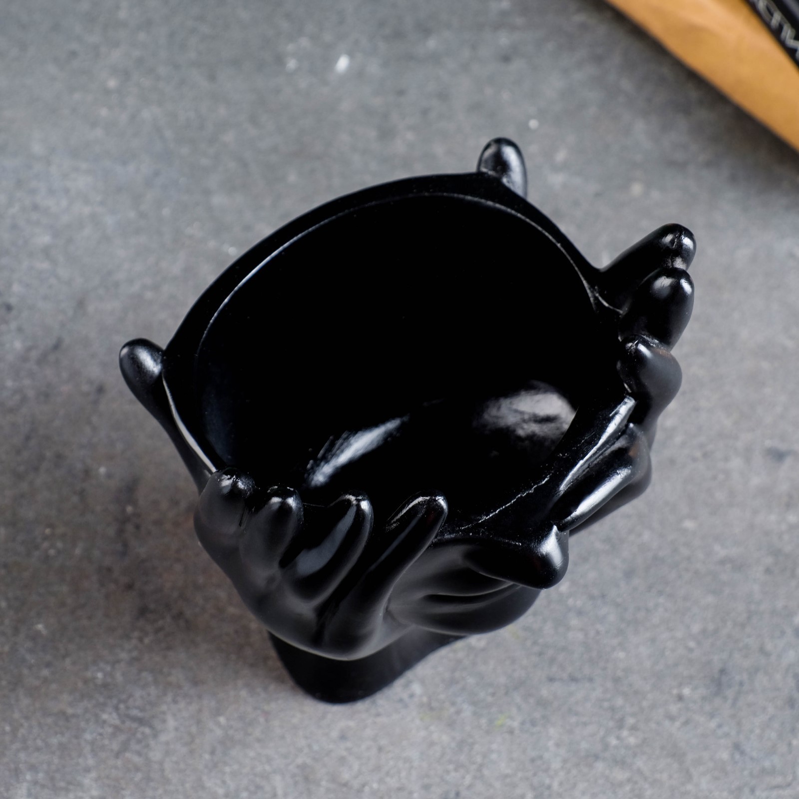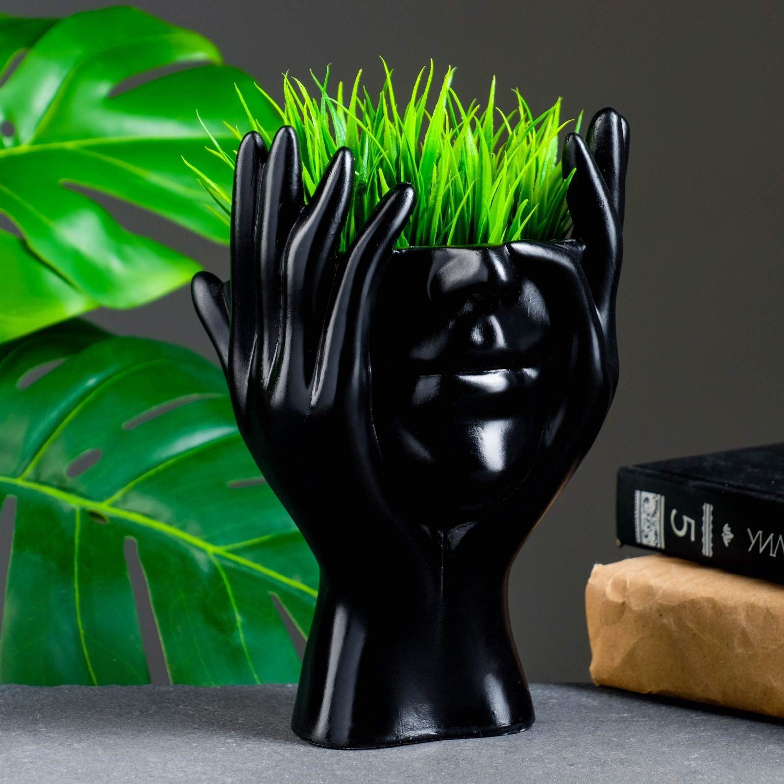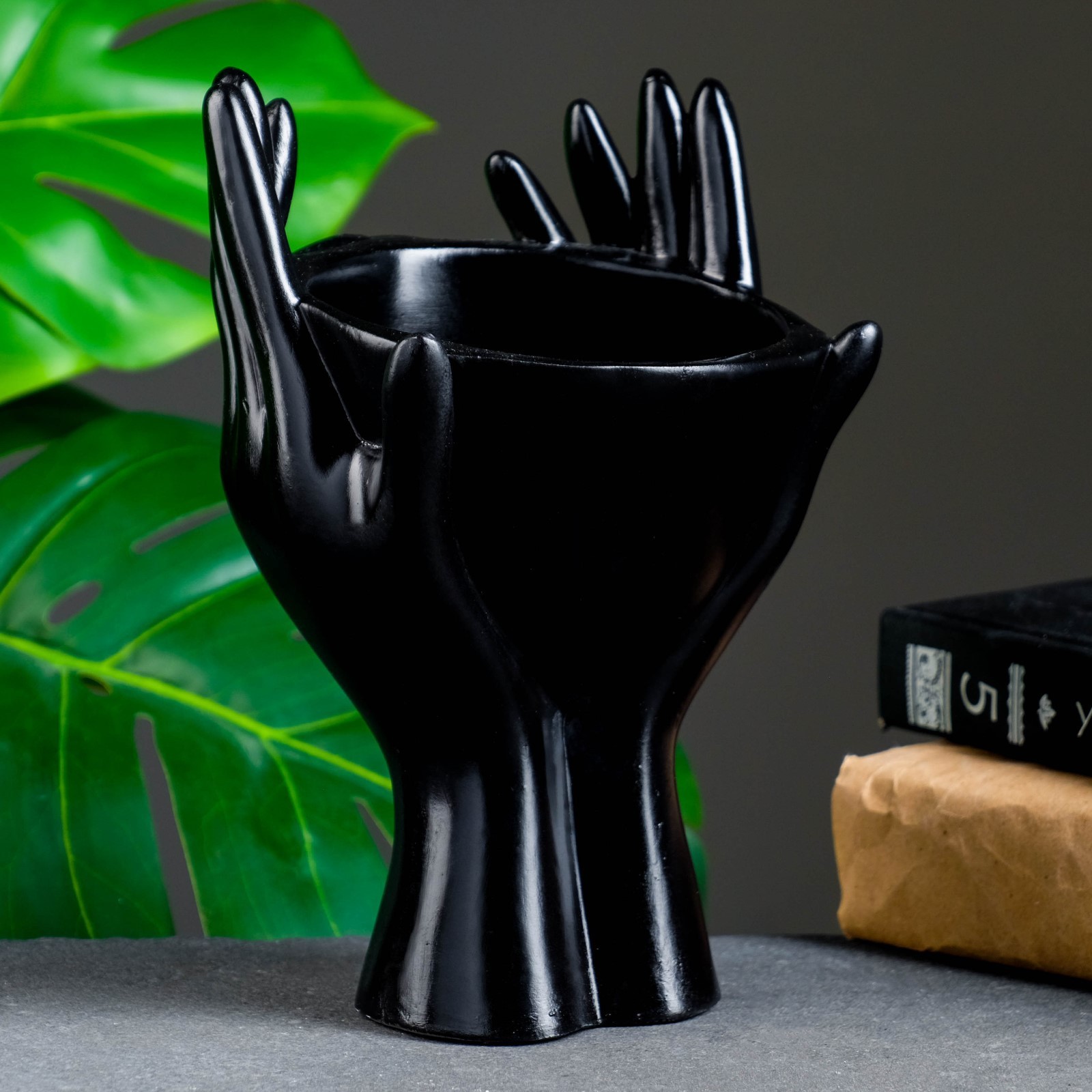 Фигурное кашпо для цветов «мечты в руках», 380 мл, 20.5 13.5 13 см, гипс, чёрное