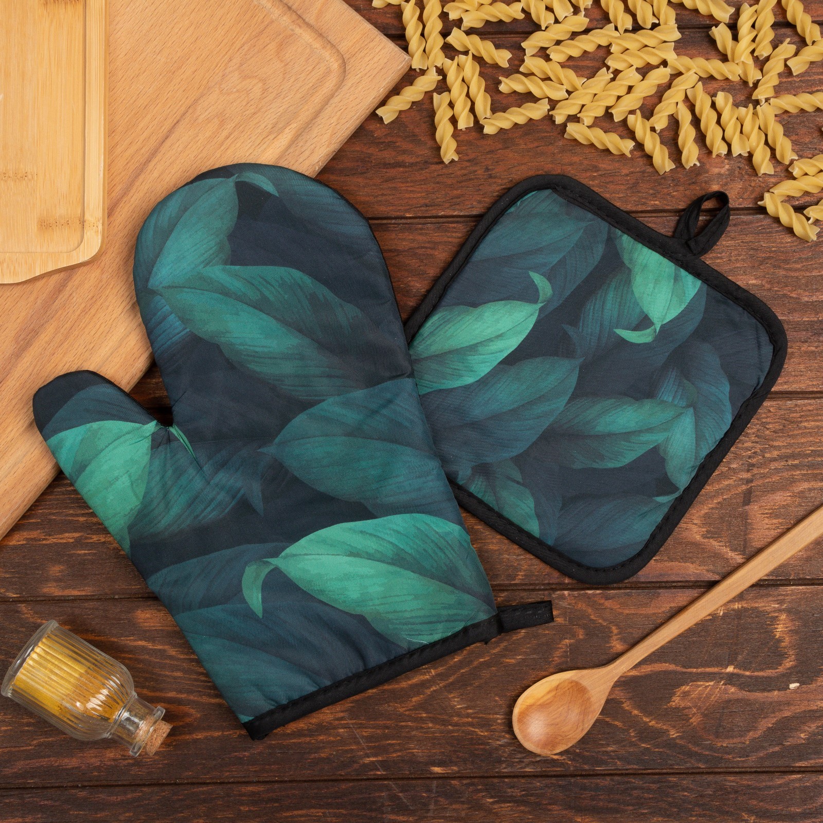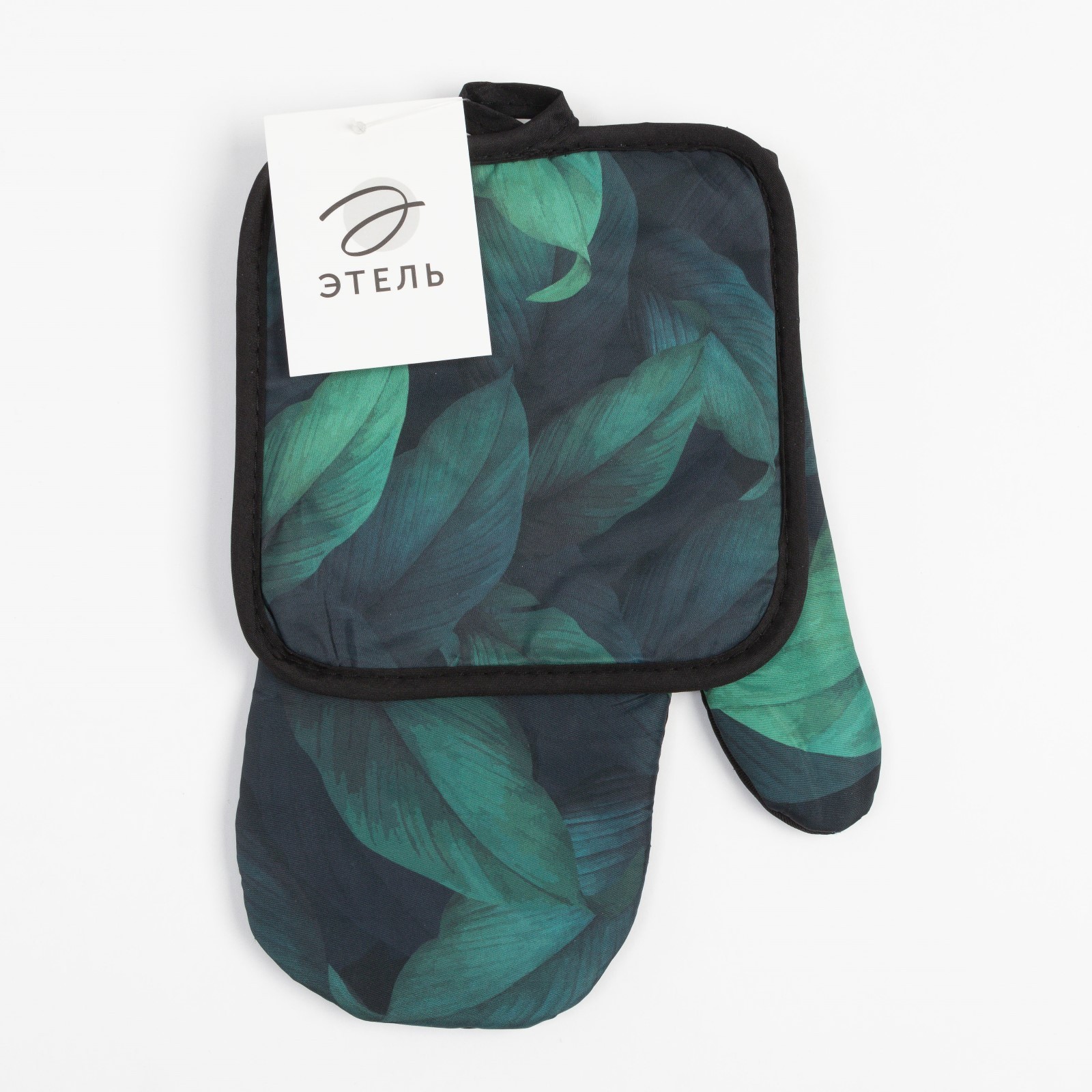 Кухонный набор (2 предмета) этель «листья», прихватка 17х17 см, варежка 26х16 см, 100% п/э