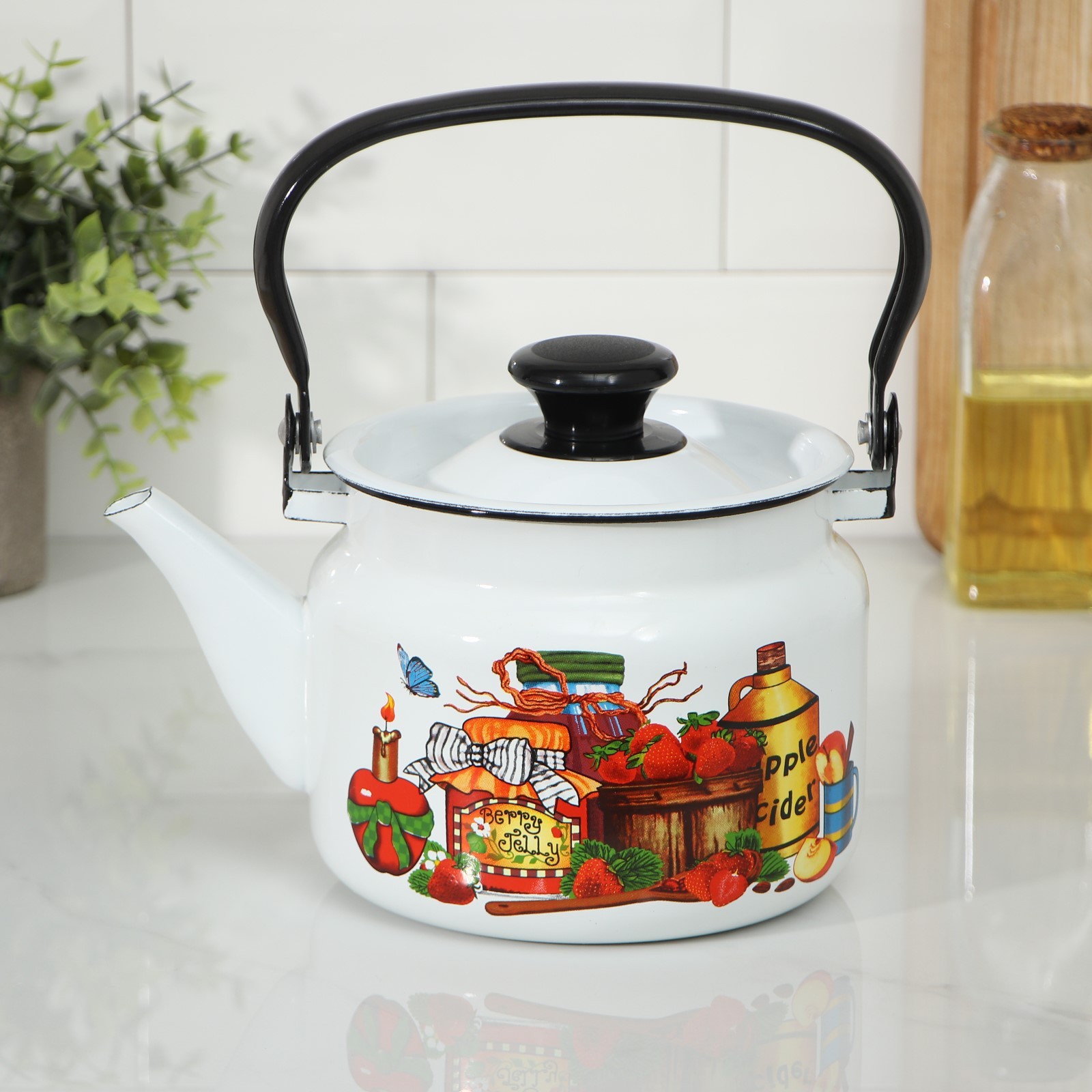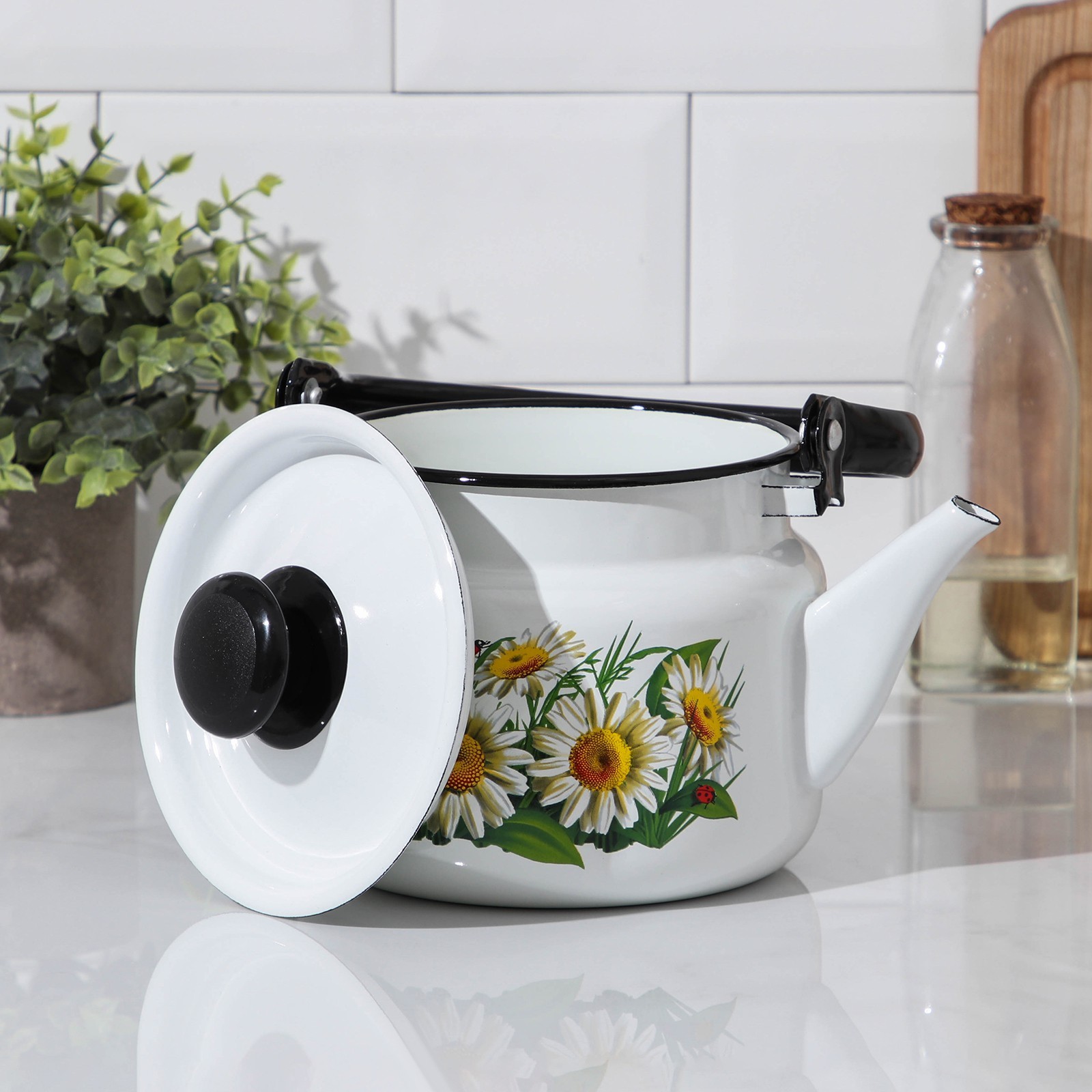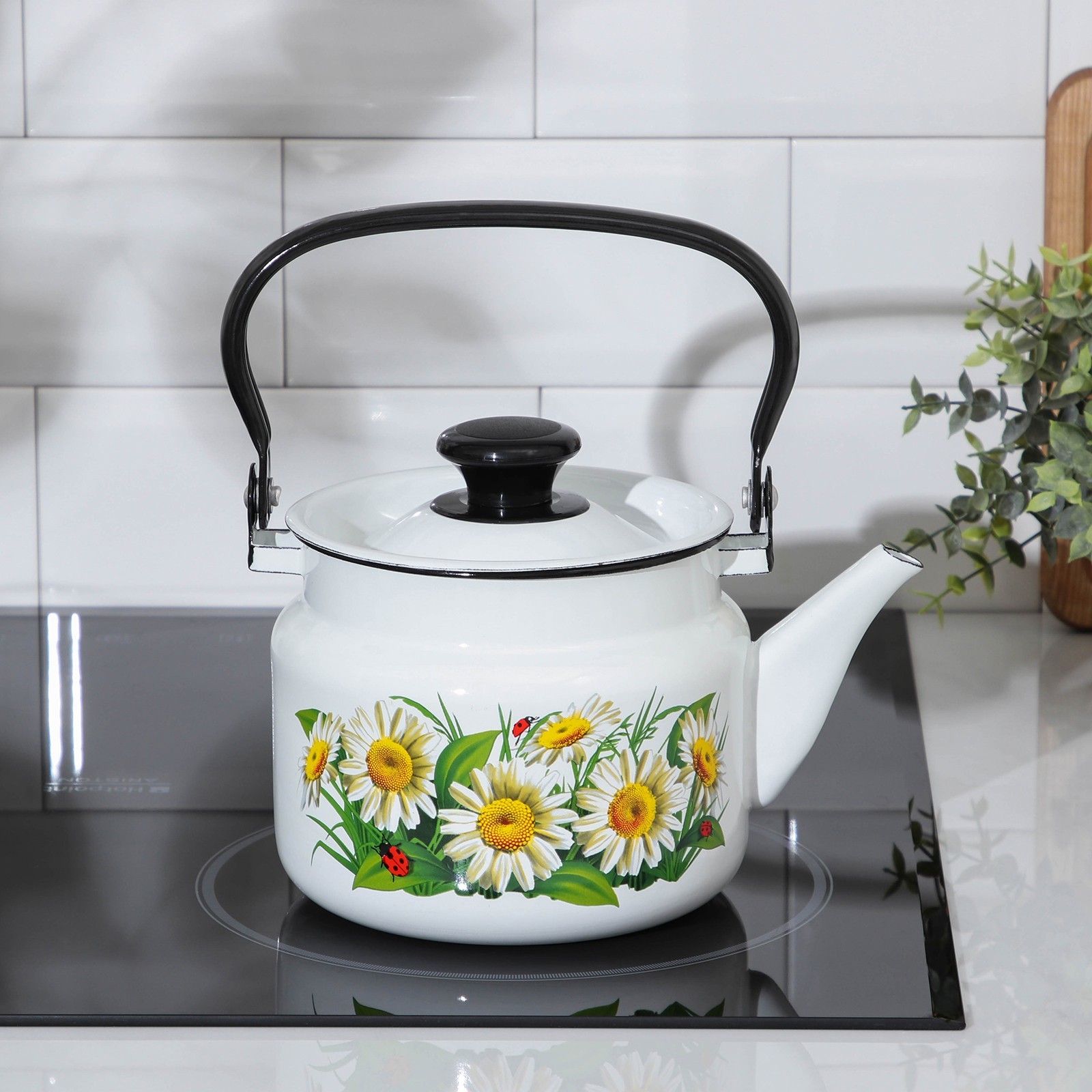 Чайник цилиндрический, 2 л, индукция, деколь микс, цвет белый