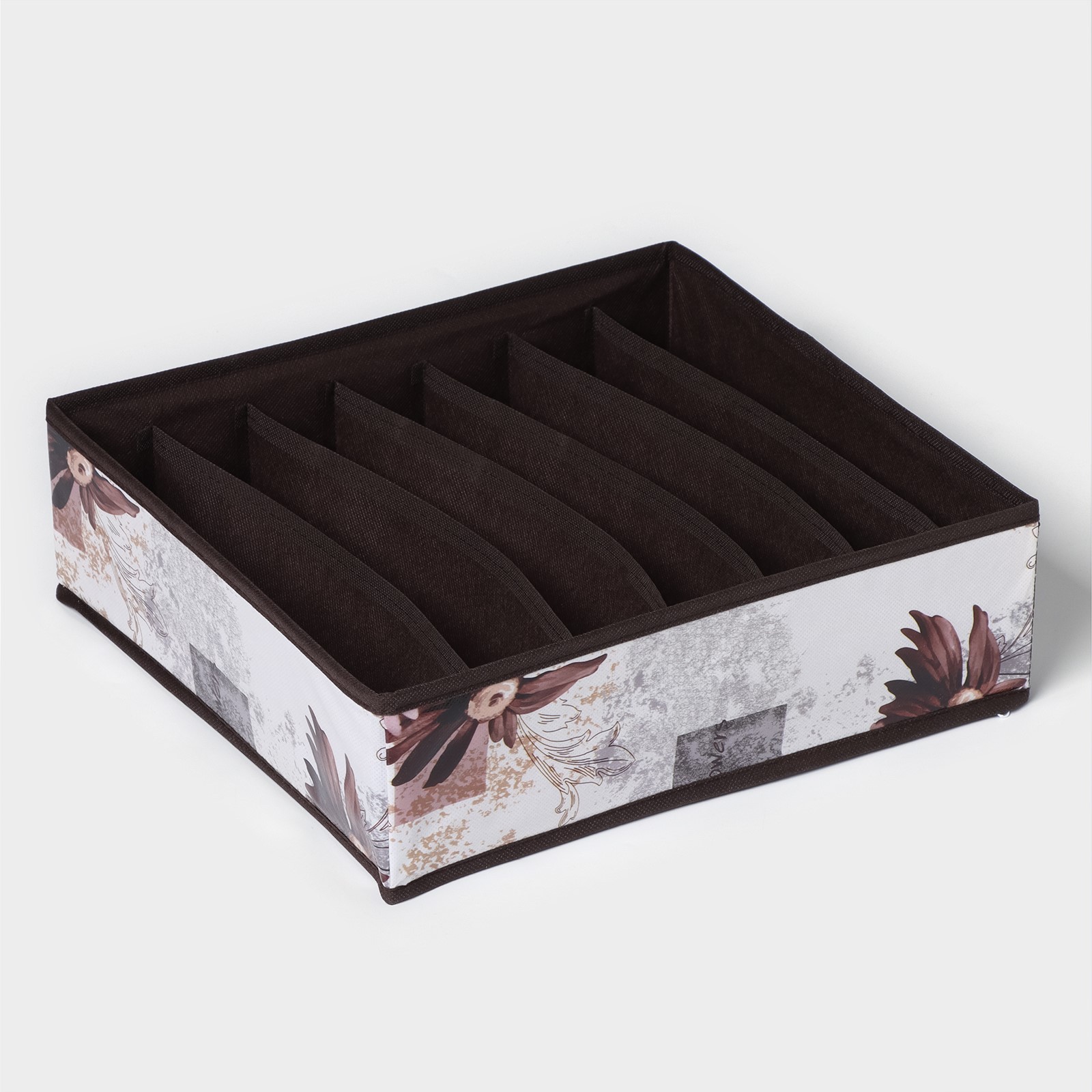 Органайзер для хранения белья доляна «астра», 7 ячеек, 34x30,5x10 см, цвет коричневый