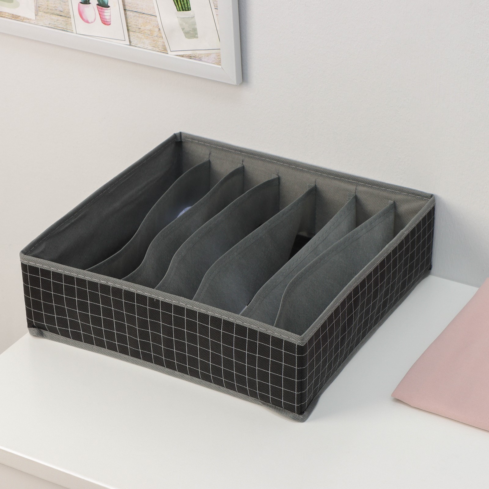 Органайзер для хранения белья доляна «кло», 7 ячеек, 34x30,5x10 см, цвет чёрный
