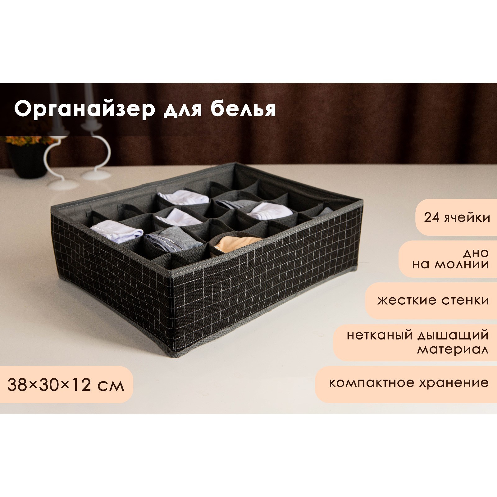 Органайзер для хранения белья доляна «кло», 24 ячейки, 38x30x12 см, цвет чёрный