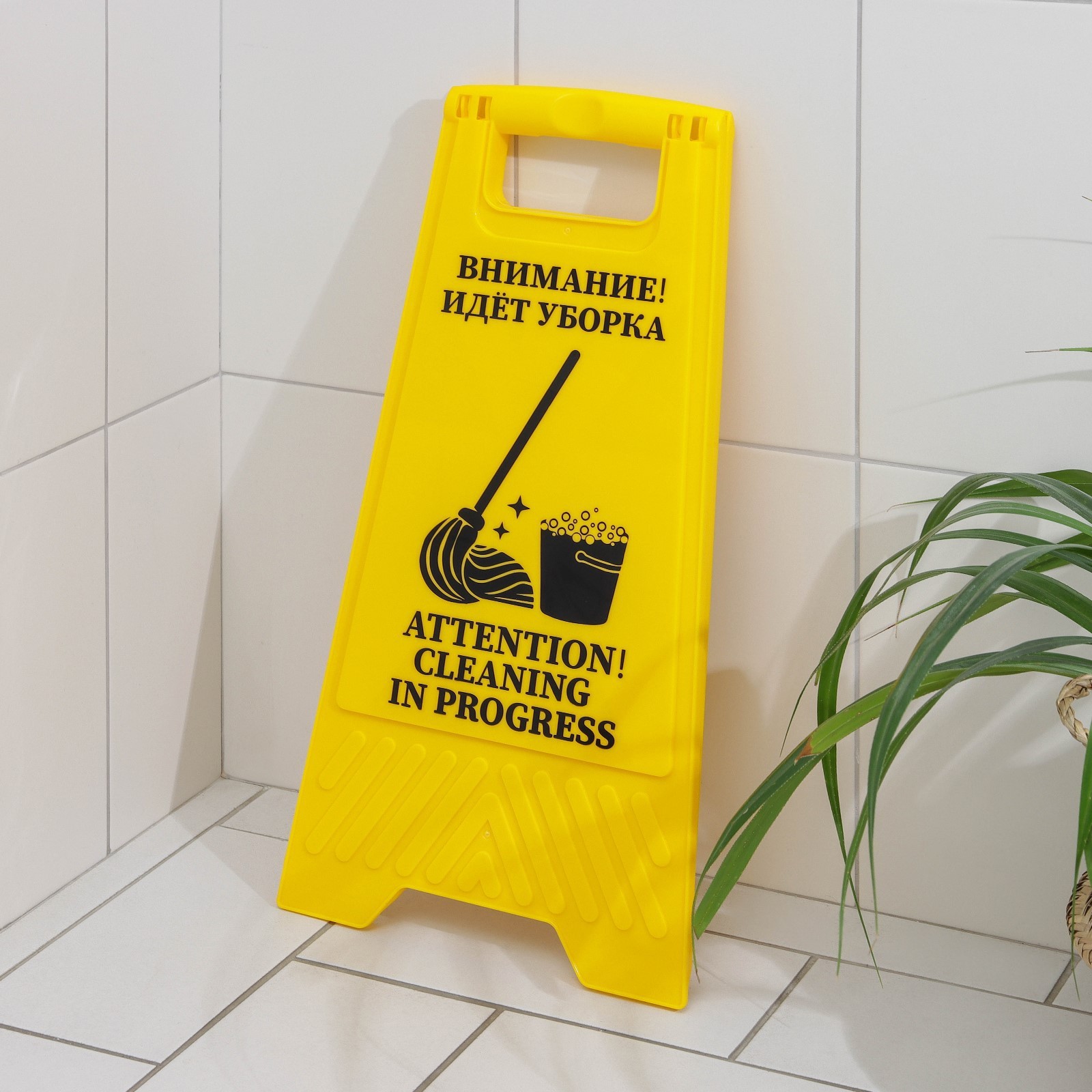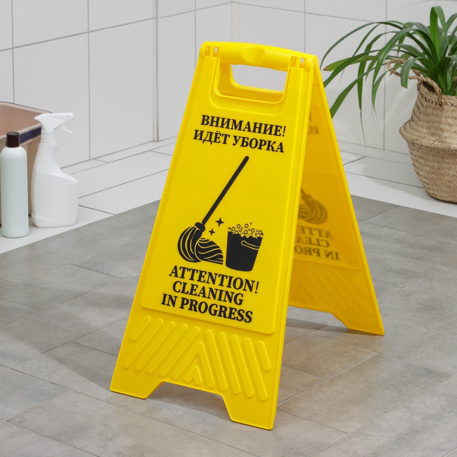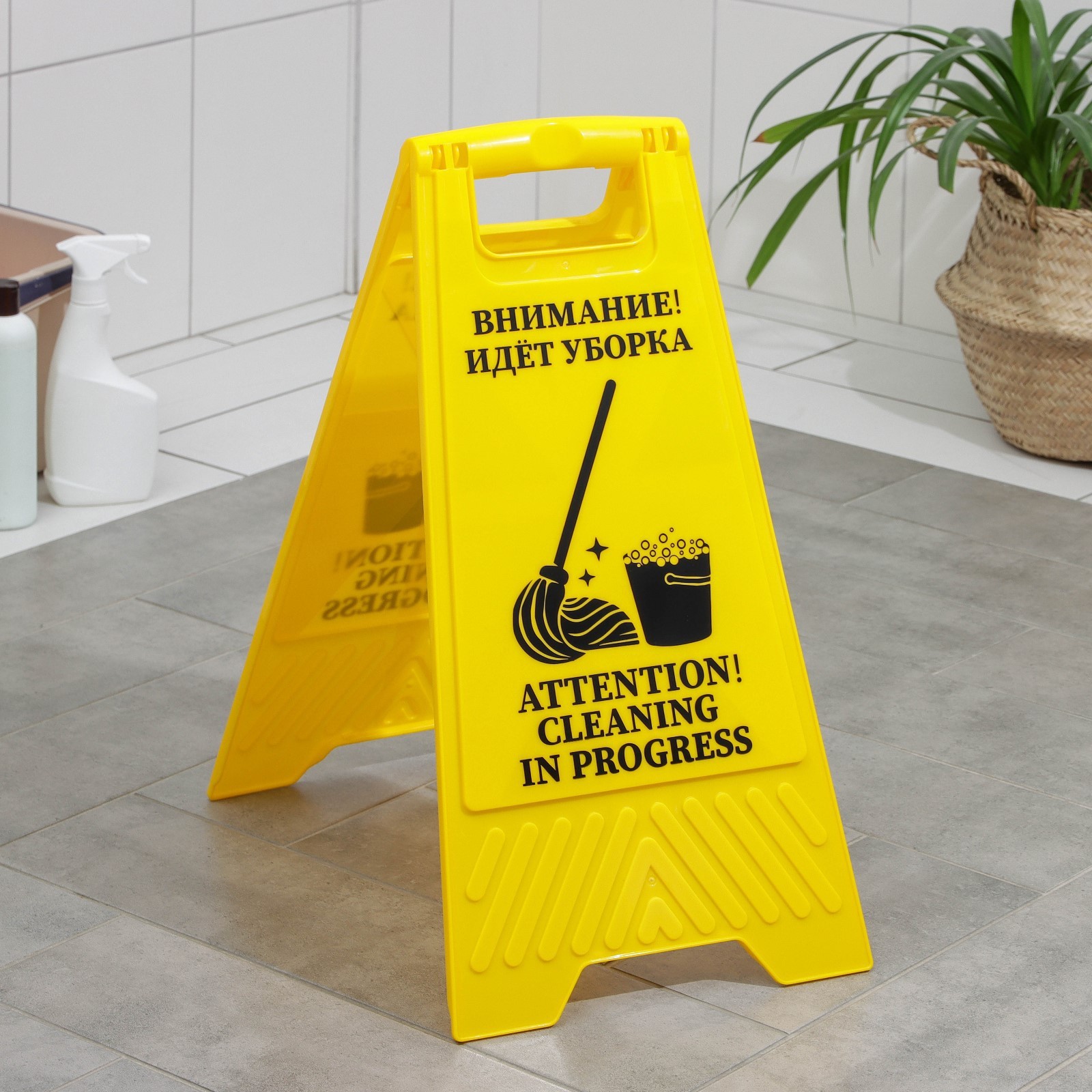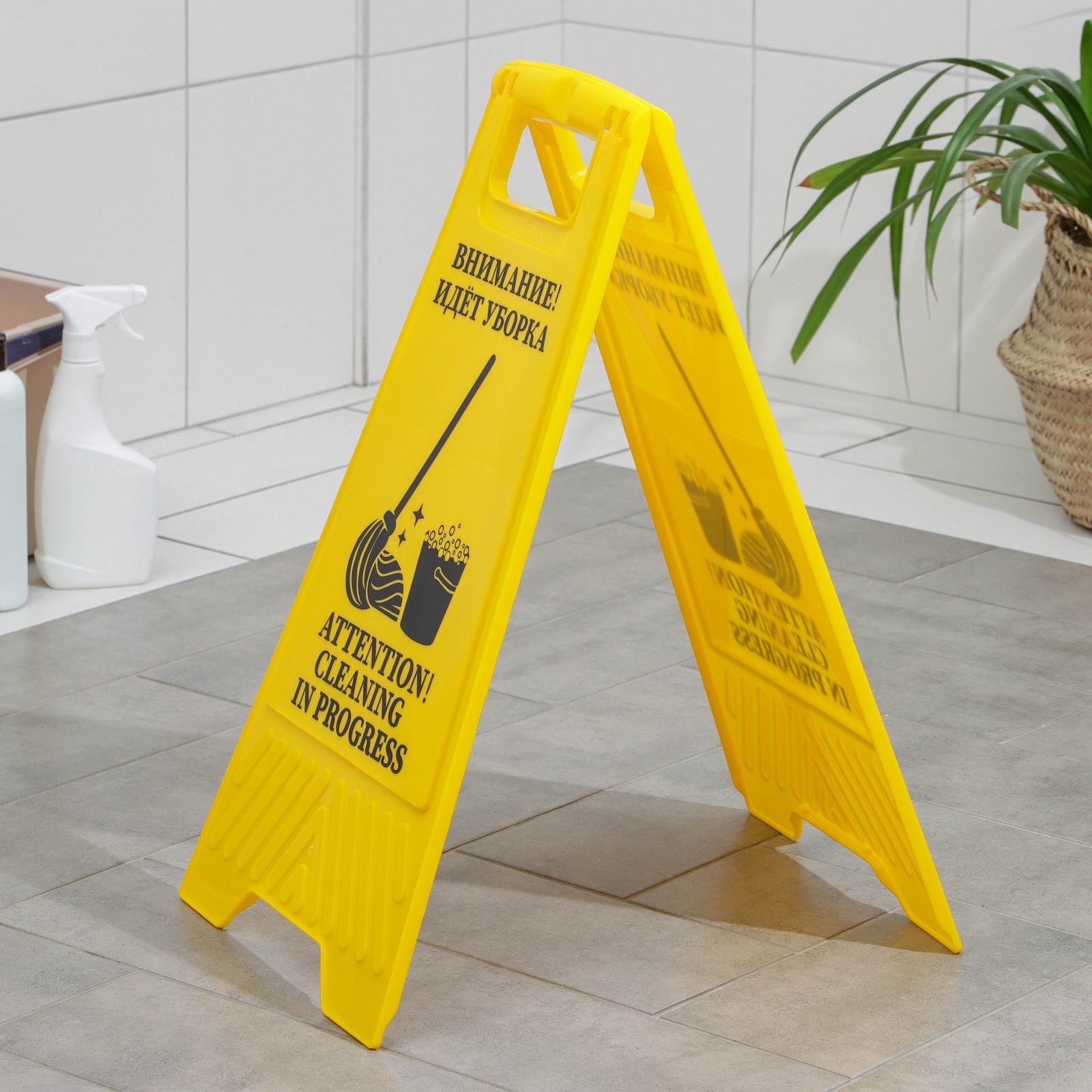 Знак «внимание! идёт уборка», 61x30 см, пластик, цвет жёлтый