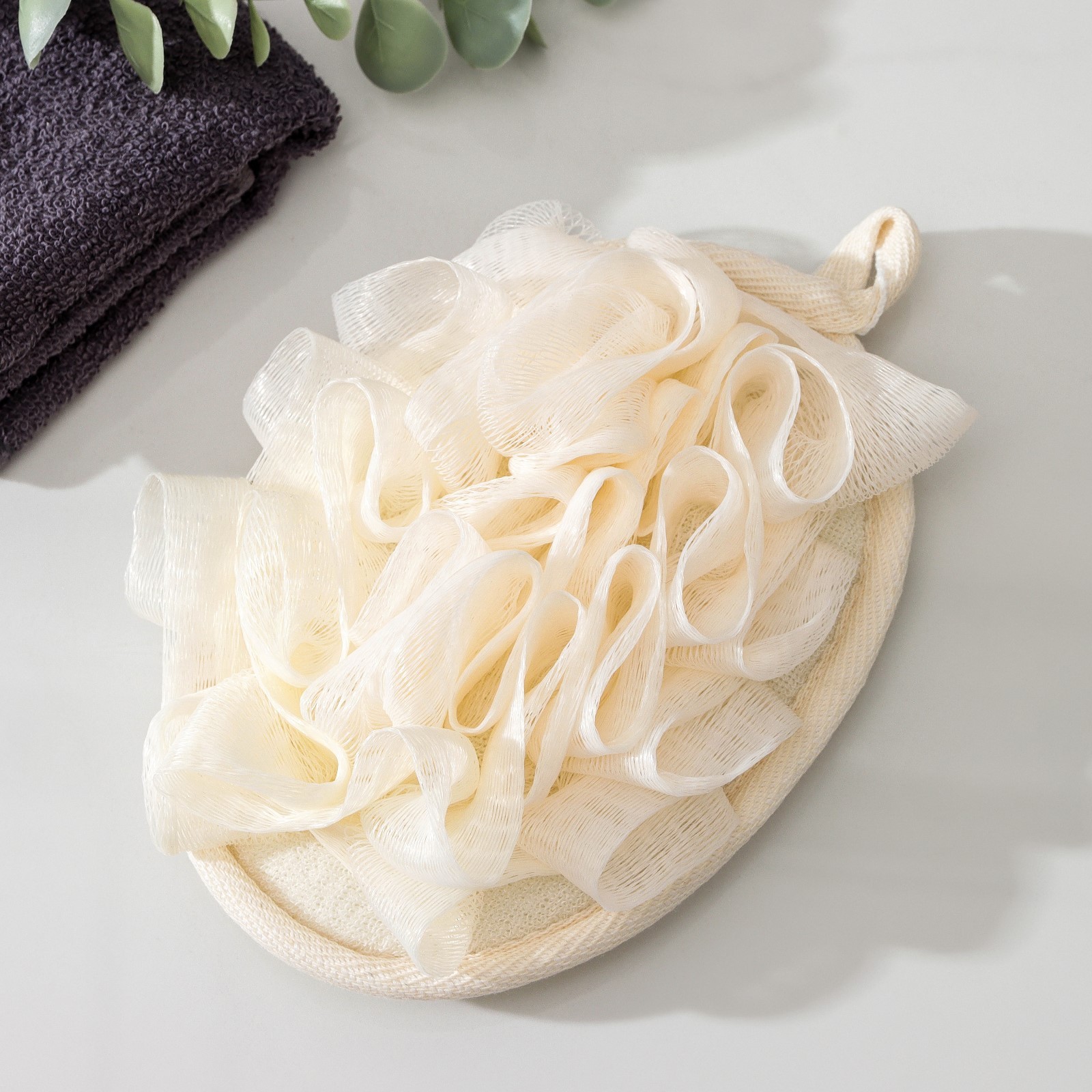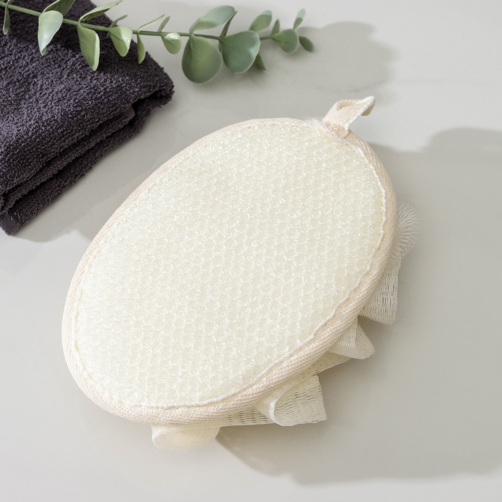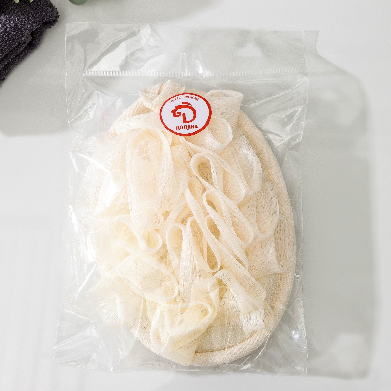 Мочалка для тела массажная со скрабером доляна «афродита», 11x16 см, цвет бежевый. Мочалки из серии «Афродита» выполнены из качественного материла. С одной стороны - сетка, с помощью которой вы сможете сделать пилинг. С другой - стороны нейлон, собранный в небрежный цветок, который служит не только декоративным элементом, но и создаёт обильную пену. Использование мочалки способствует не только очищению кожи, но и улучшению состояния кожных покровов. Мочалку удобно держать в руке, со временем она не деформируется и не меняет цвет, сохраняет свой первоначальный вид. Перед первым применением мочалку рекомендуется хорошо промыть в воде. Цвет: Бежевый parts count: 0 Длина рабочей части, см: 16 tnved: 6307909800 Вид: Стандартная мочалка Возраст: Любой Материал: Полиэстер Материал: Нейлон  развернуть описание ▼