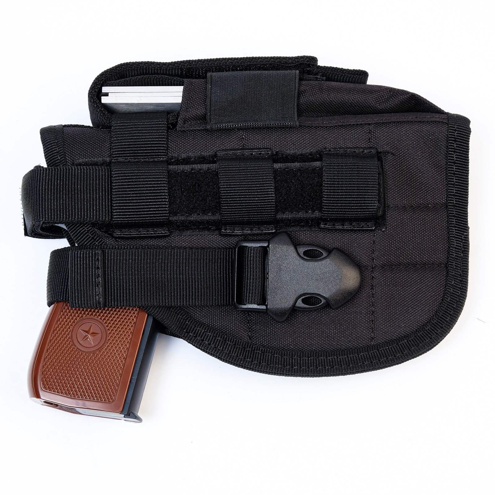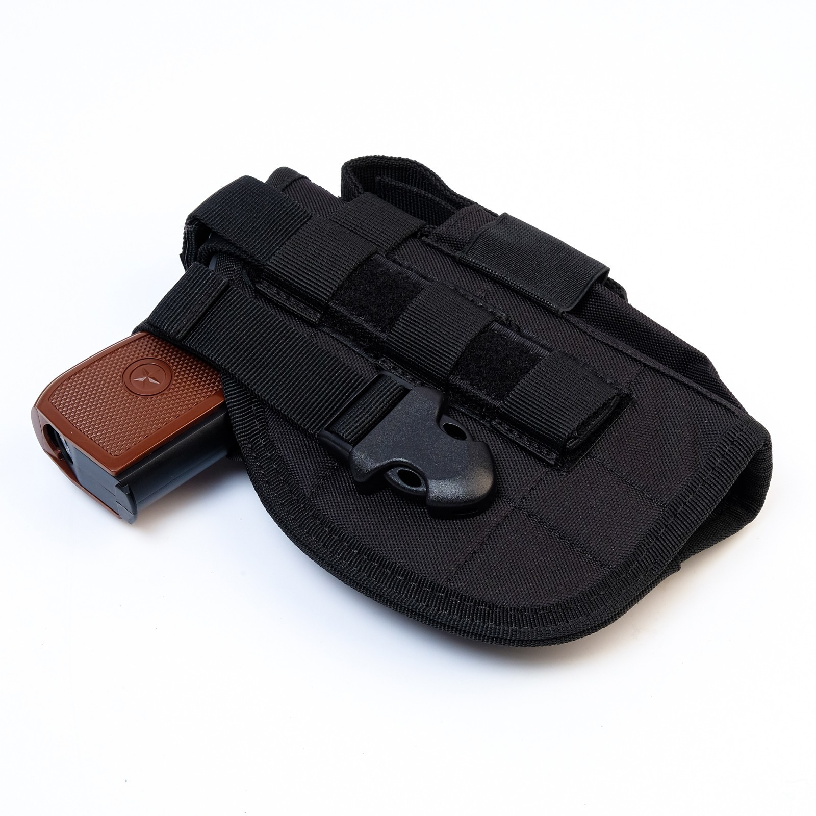 Кобура поясная, универсальная "аttack" черная. Кобура поясная универсальная - это аксессуар, предназначенный для ношения оружия на поясном ремне. Она изготовлена из качественных материалов и обеспечивает надежную фиксацию оружия. Кобура имеет регулируемый ремень, который позволяет настроить ее под любой размер пояса. Универсальная конструкция кобуры позволяет использовать ее для разных видов оружия. Материал: Текстиль Материал: Пластик Вид кобуры: Поясная  развернуть описание ▼