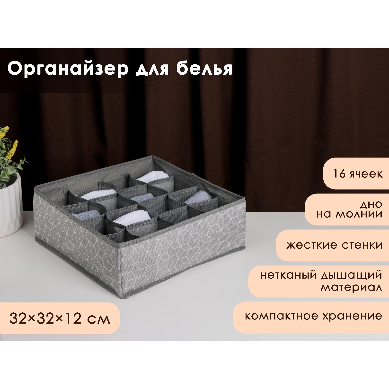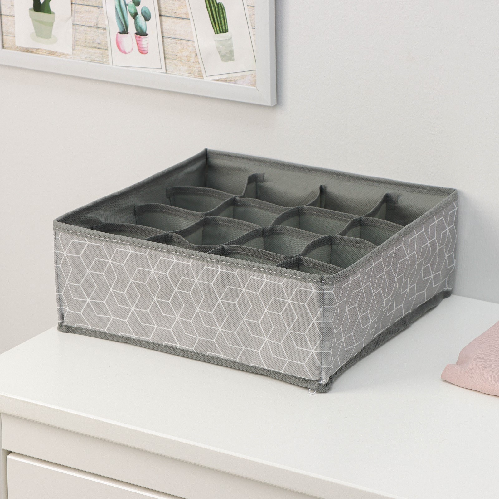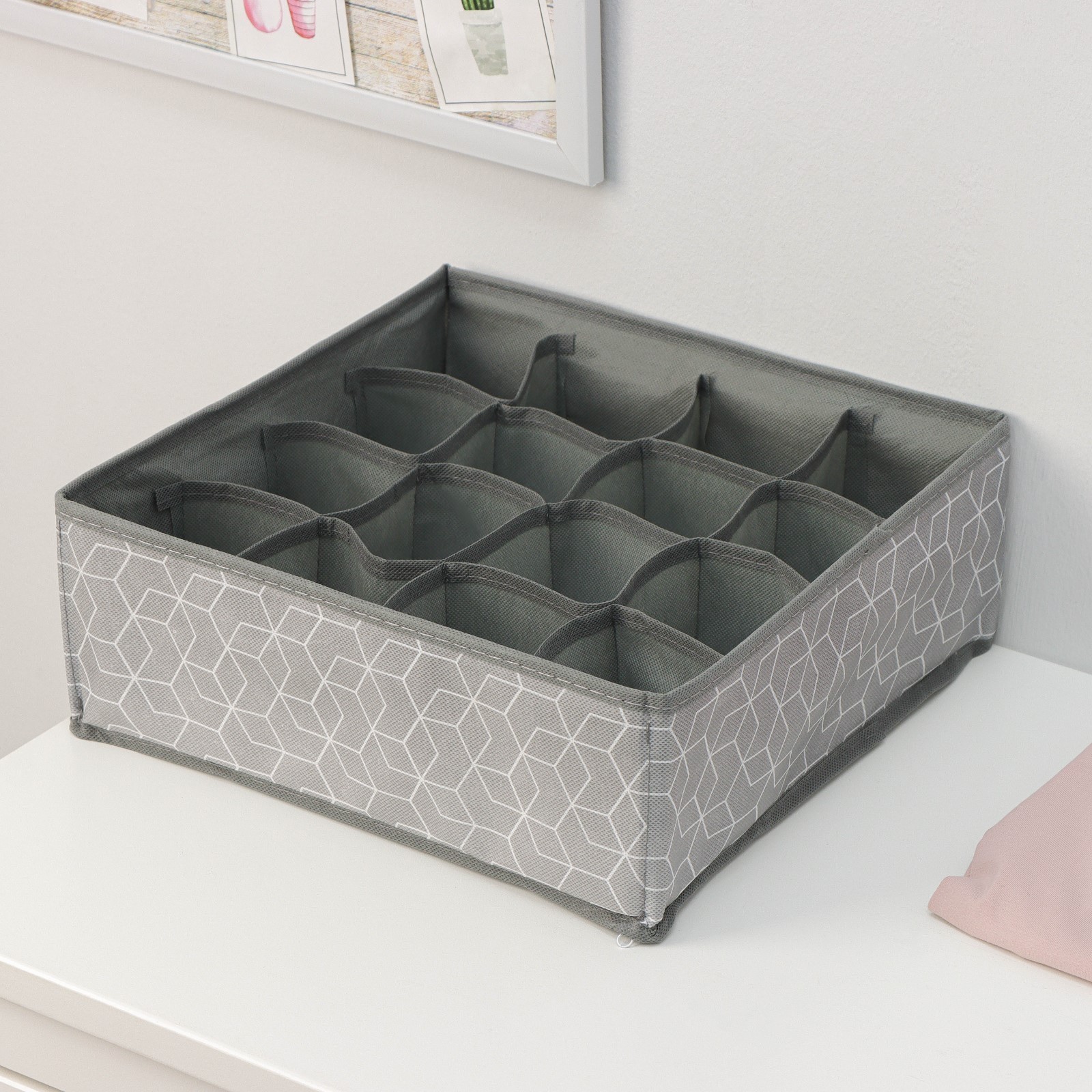 Органайзер для хранения белья доляна «фора», 16 ячеек, 32x32x12 см, цвет серый
