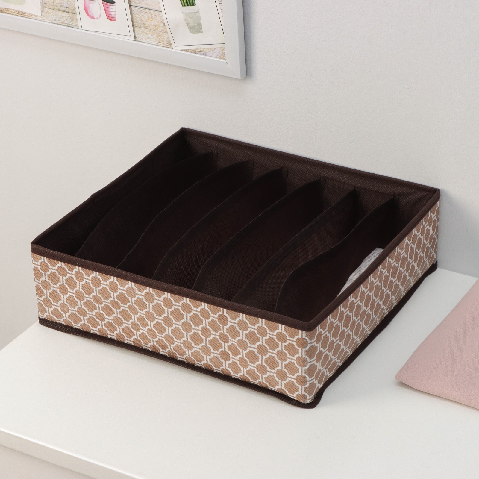 Органайзер для хранения белья доляна «браун», 7 ячеек, 34x30,5x10 см, цвет коричневый