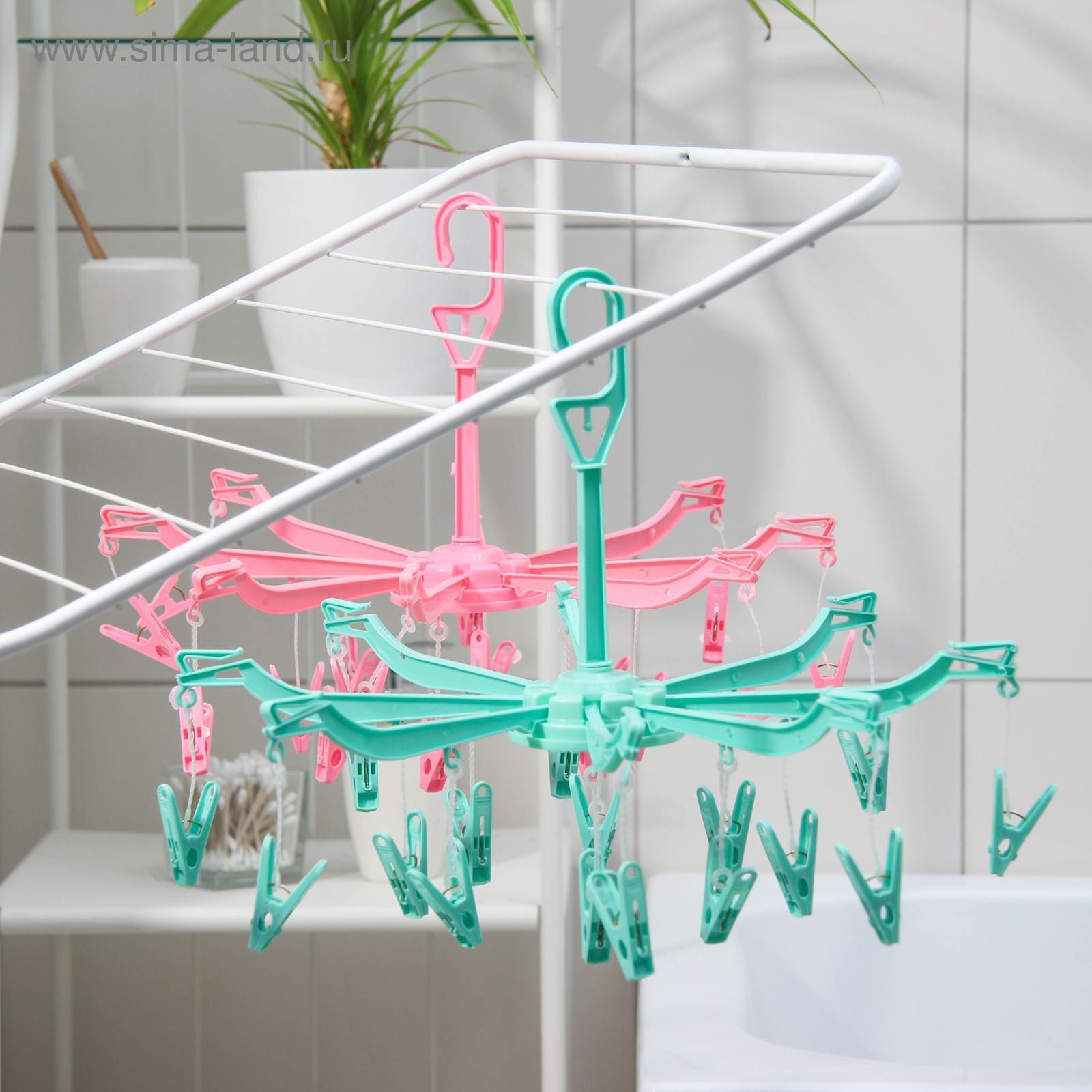 Сушилка для белья подвесная доляна, 41x41 см, 16 прищепок, цвет микс