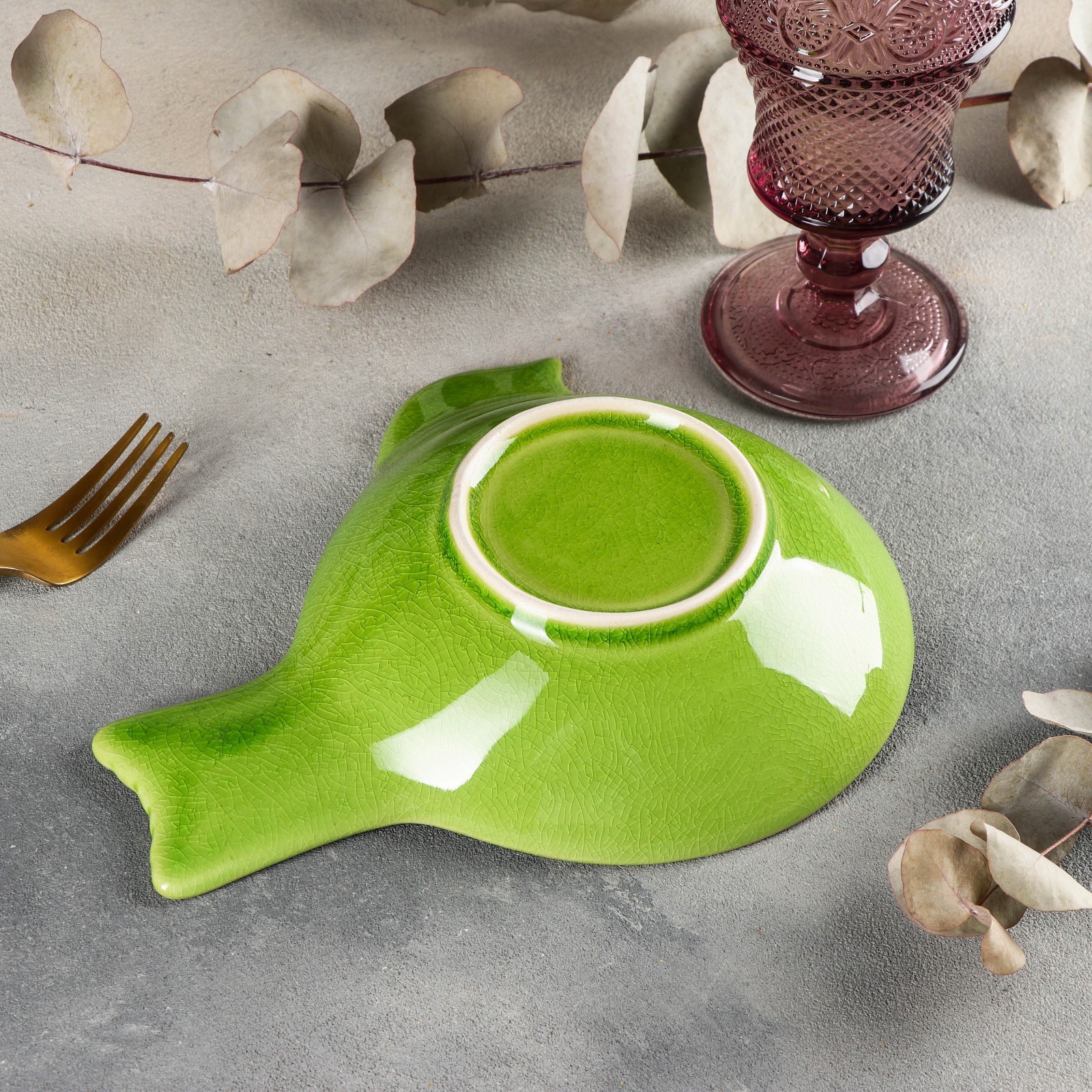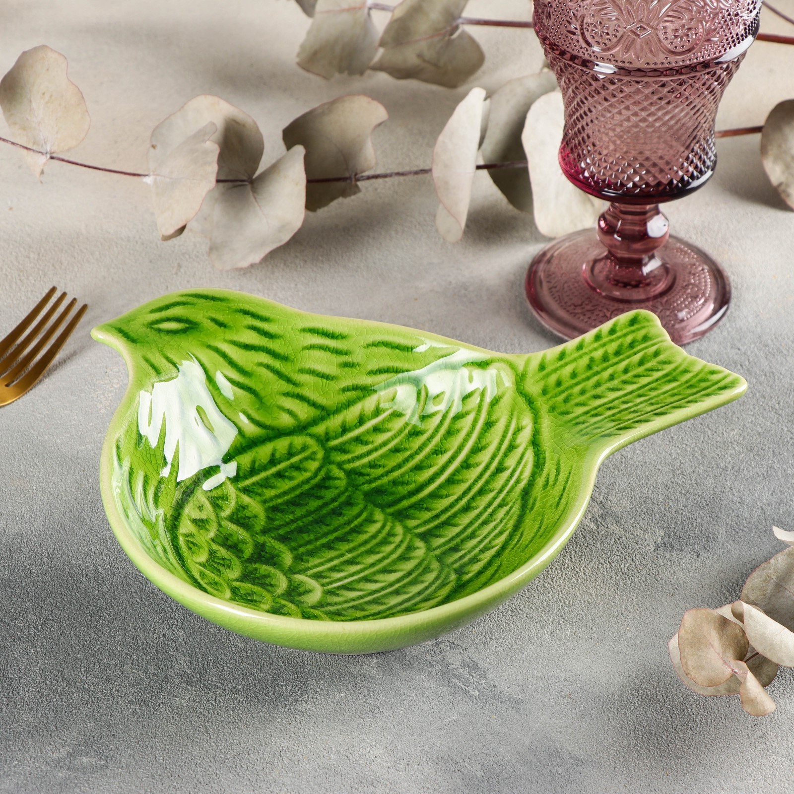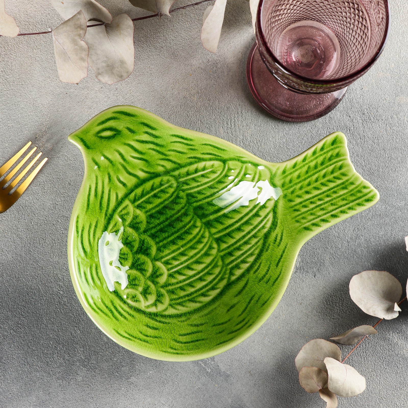 Салатник керамический «птица», 22x18 см, цвет зелёный