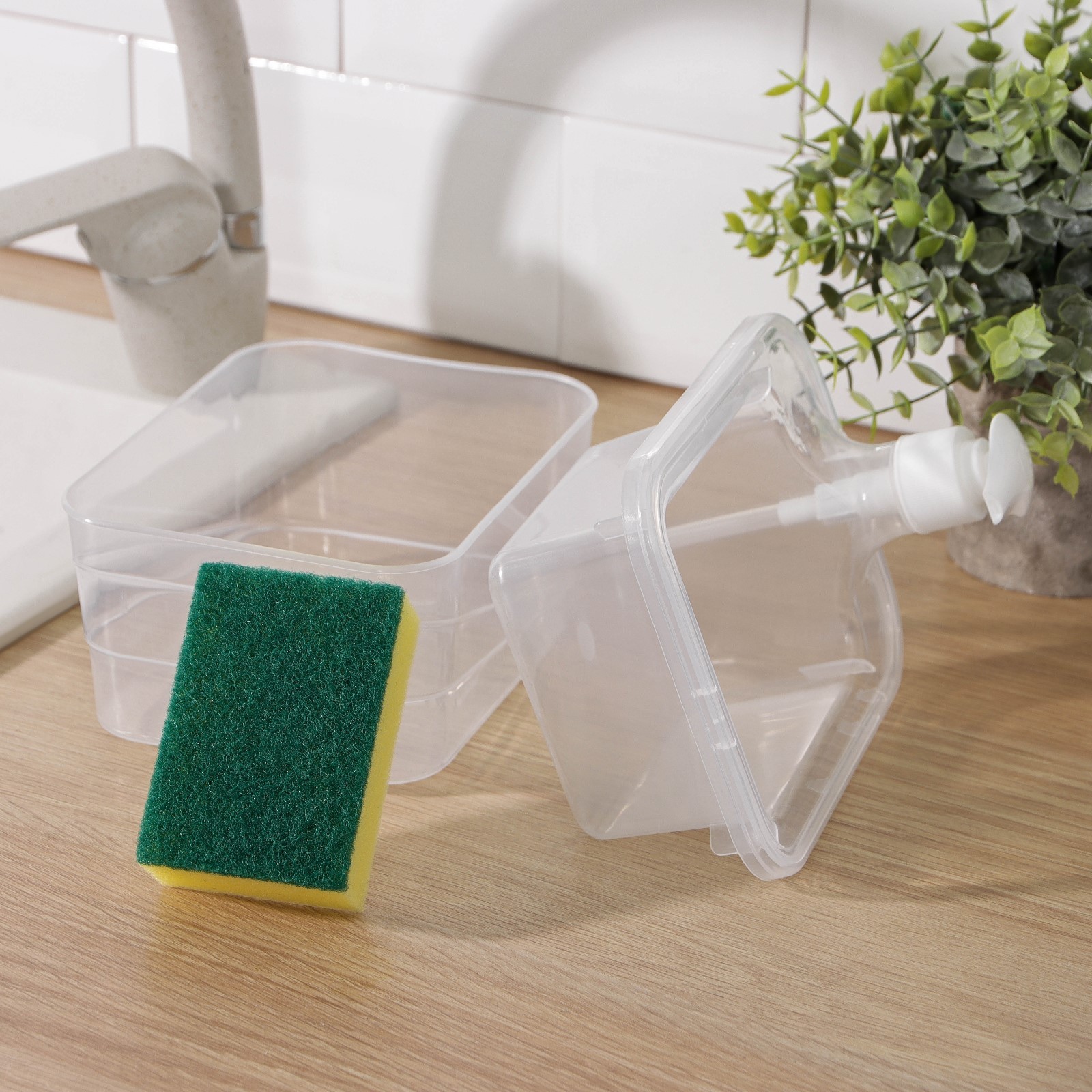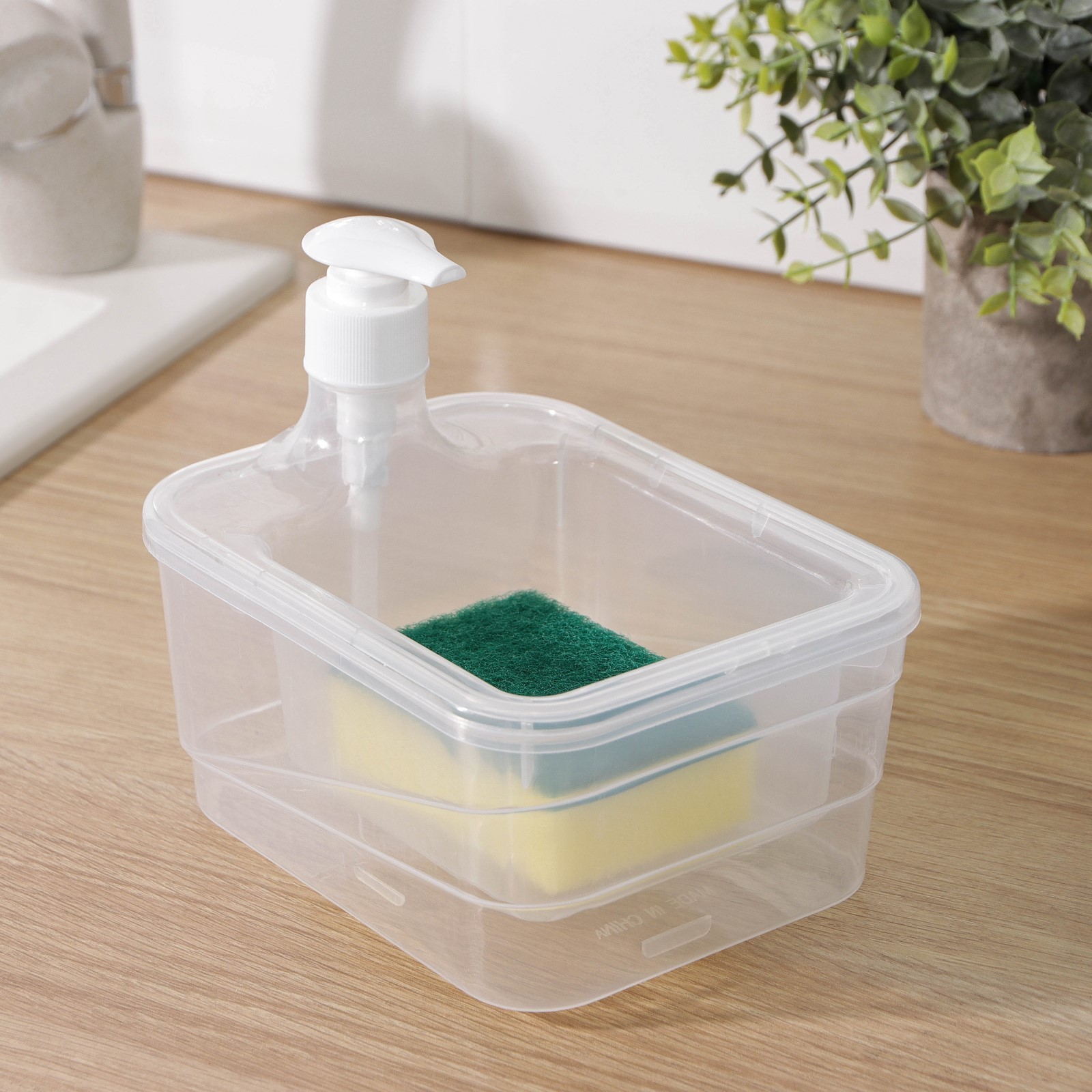 Дозатор для моющего средства с подставкой для губки доляна, губка в комплекте, 600 мл, 17x13x14 см