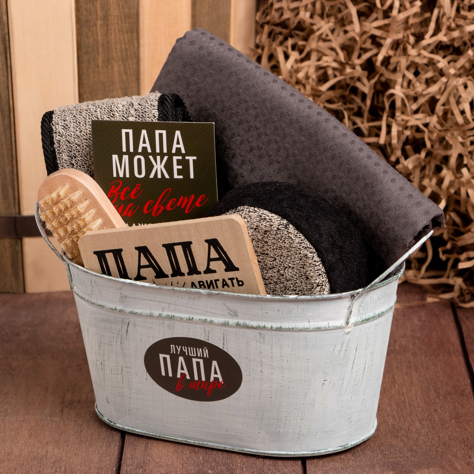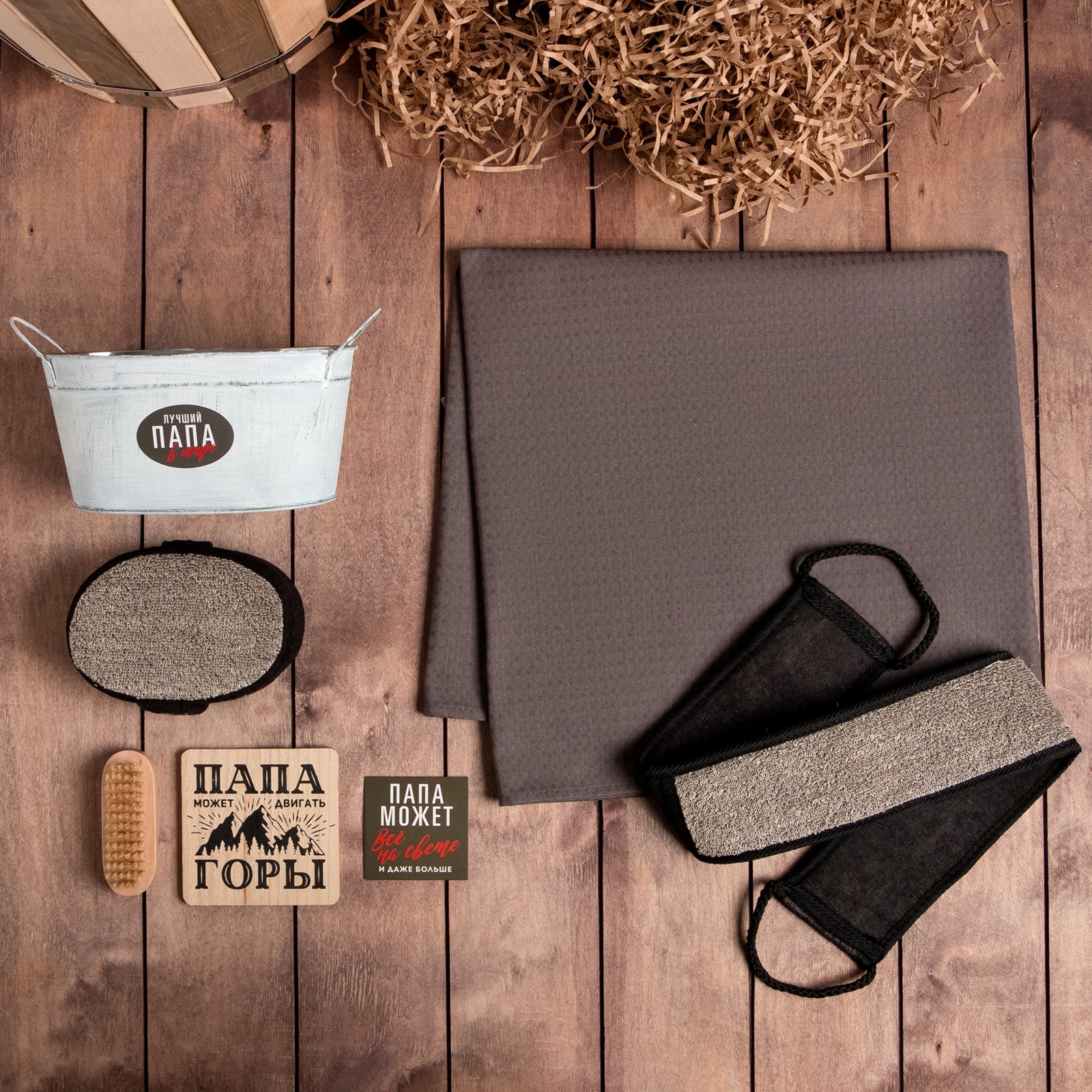 Набор подарочный «этель. папа»: полотенце, щётка, мочалка. Набор:Да|Цвет:Коричневый|Для кого:Для мужчины|Ткань:Вафельное полотно|Плотность, г/м :160|Размер, см:80 х 150|В наборе, шт.:6|Тематика:Мужская|Вид упаковки:Ведерко|Вид упаковки:Пакет|Тематика праздника:23 Февраля|Адресат:Мужчине|Декоративные элементы:Без элементов|Рекомендации по уходу:Стирка при 30 °С|Рекомендации по уходу:Глажка при 110 °С|Рекомендации по уходу:Не отбеливать|Рекомендации по уходу:Химчистка запрещена|Назначение полотенец:Для тела, банное|Состав ткани:Хлопок|Составляющие набора:Подставка под горячее|Составляющие набора:Щётка|Составляющие набора:Полотенце|Составляющие набора:Открытка|Составляющие набора:Мочалка|Возраст:Для взрослых|В подарочной упаковке:Да|Особенности:Без особенностей|Страна:Россия  развернуть описание ▼