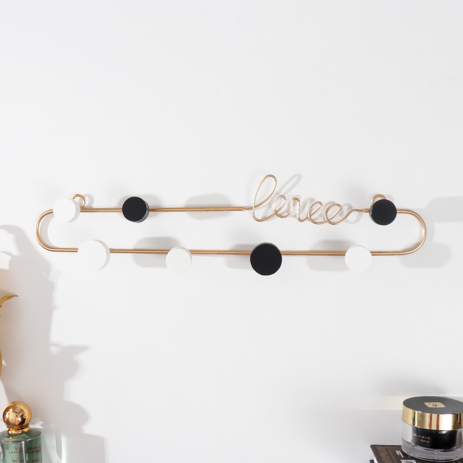 Крючки декоративные металл "love. цветные точки" 9х4х39 см. Цвет: Золотистый Количество крючков: 7 Тематика: Надписи, цифры, буквы Материал: Металл Вид ключницы: Открытая Особенности: Без особенностей Вид крепления: Шурупы Вид крепления: Саморезы  развернуть описание ▼