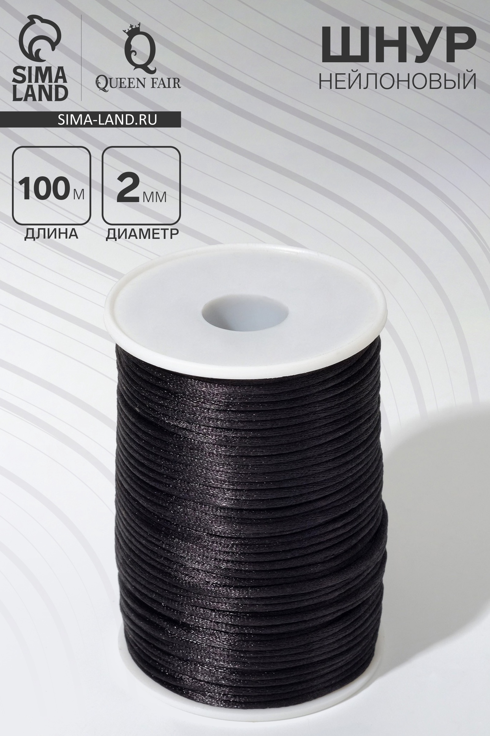 Шнур нейлоновый d=2 мм l=100 м, чёрный. Шнур нейлоновый диаметром 2 мм и длиной 100 м, цвет чёрный – это прочный и универсальный материал, который идеально подходит для создания разнообразных украшений и аксессуаров. Нейлон обладает высокой прочностью и устойчивостью к износу, что делает этот шнур отличным выбором для плетения браслетов, ожерелий, кулонов и других декоративных изделий. Чёрный цвет придаёт шнуру универсальность, позволяя сочетать его с различными декоративными элементами и стилями. Длина 100 м предоставляет достаточное количество материала для множества проектов, а диаметр 2 мм подходит для создания украшений среднего размера. Шнур легко поддаётся обработке, что позволяет использовать его в различных техниках, таких как плетение, вязание и макраме Набор:Нет|Цвет:Чёрный|Диаметр, мм:2|Длина, м:100|Длина, см:10000|Ширина, мм:2|Материал:Нейлон|Цвет фурнитуры:Без фурнитуры|Вид:Шнур|Вставка/Подвеска:Без вставок|Страна:Китай  развернуть описание ▼