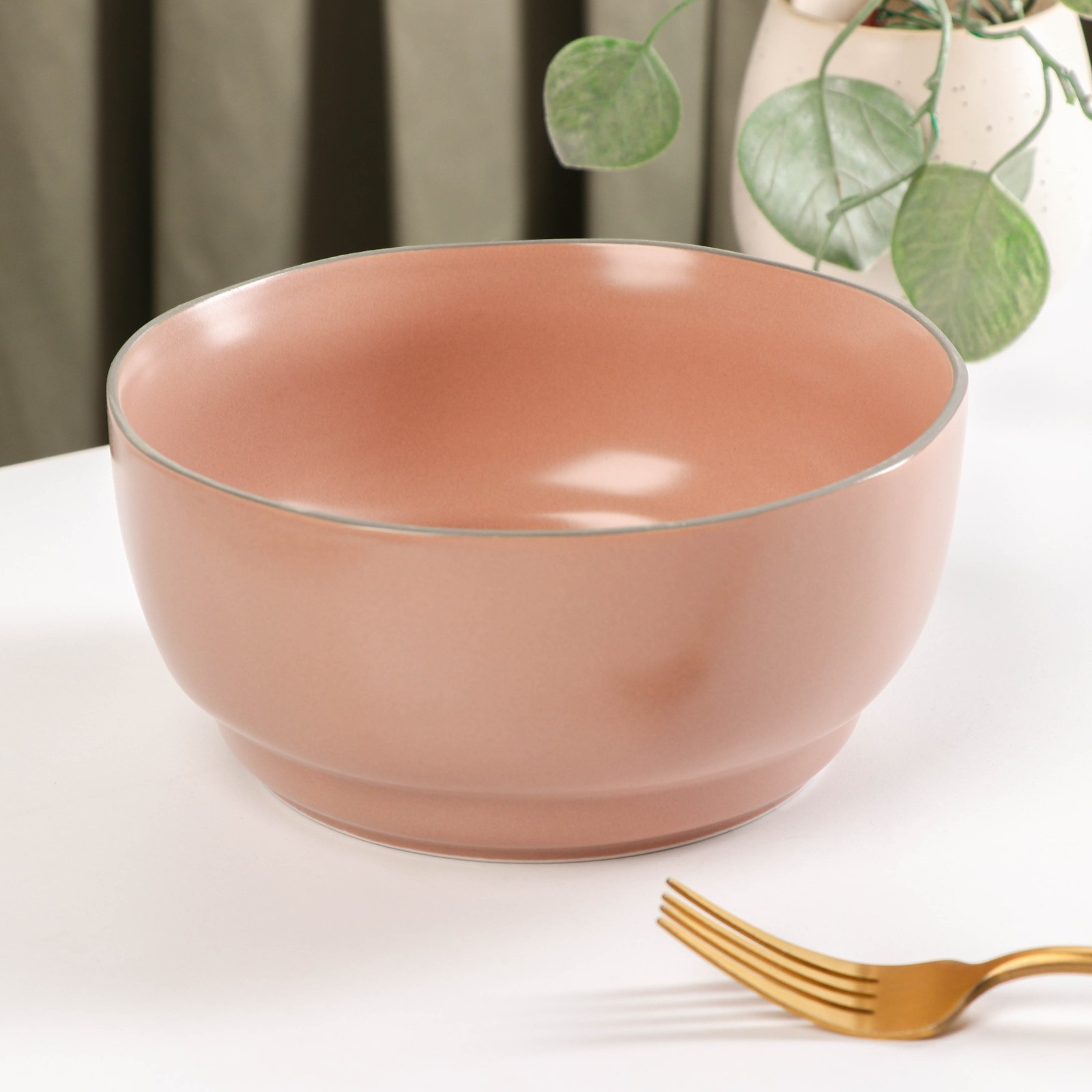 Салатник керамический «крем», 1,2 л, D=17,3 см, цвет розовый