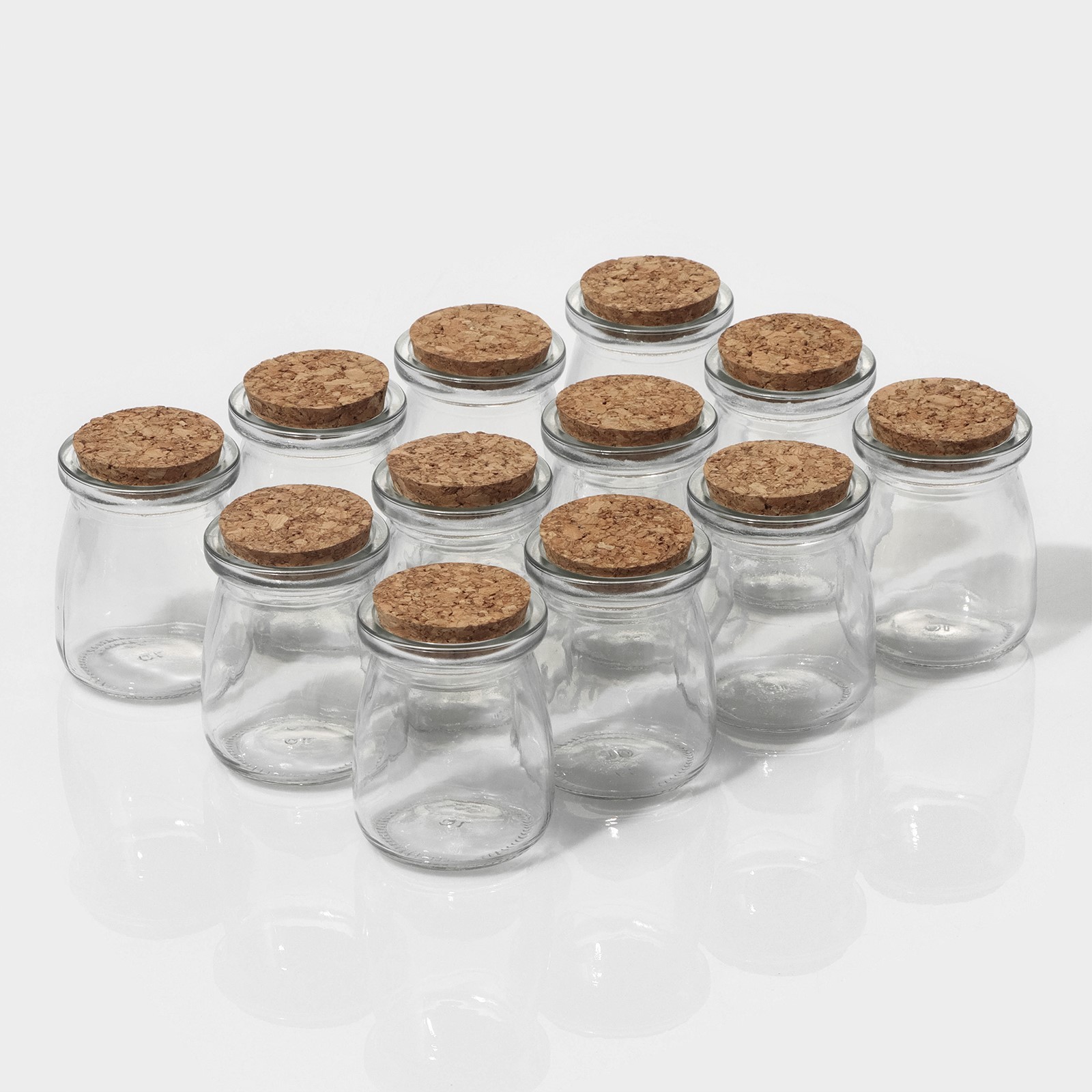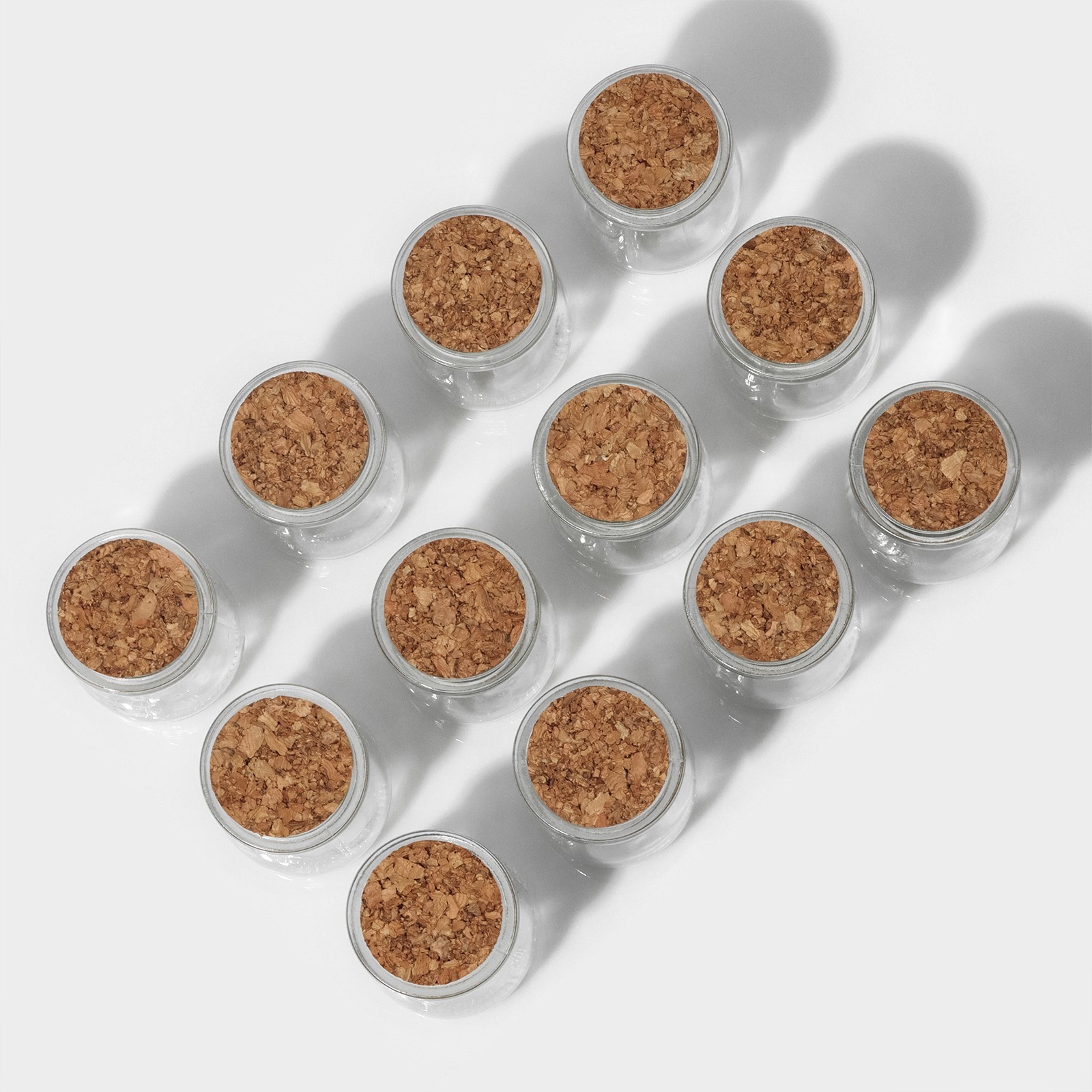 Набор стеклянных баночек для сыпучих продуктов с пробковой крышкой доляна «парфе», 100 мл, 5,7x7 см, 12 шт