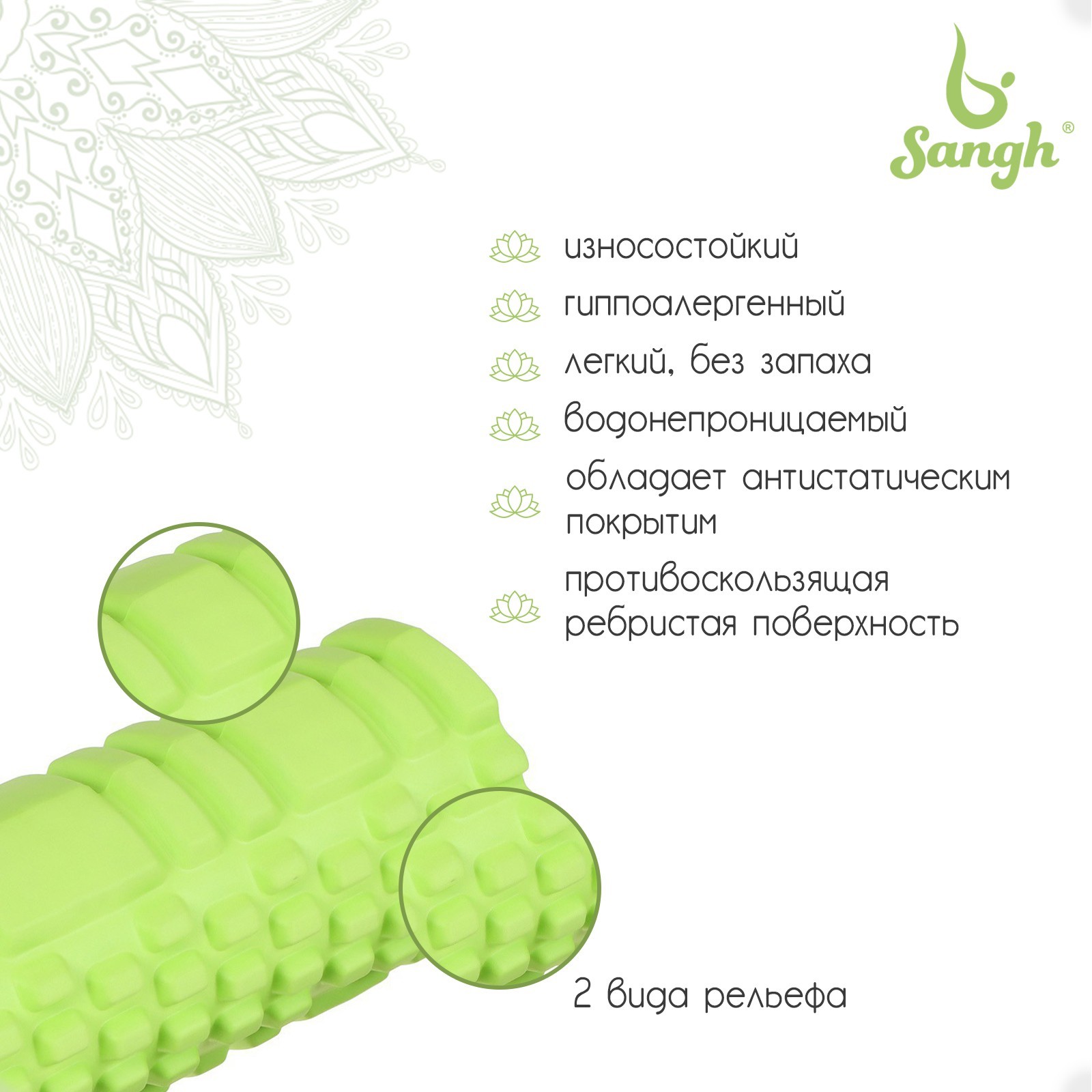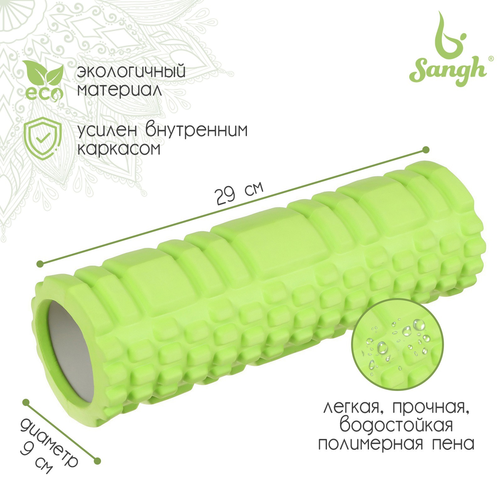 Ролик массажный Sangh, 29х9 см, цвет зелёный