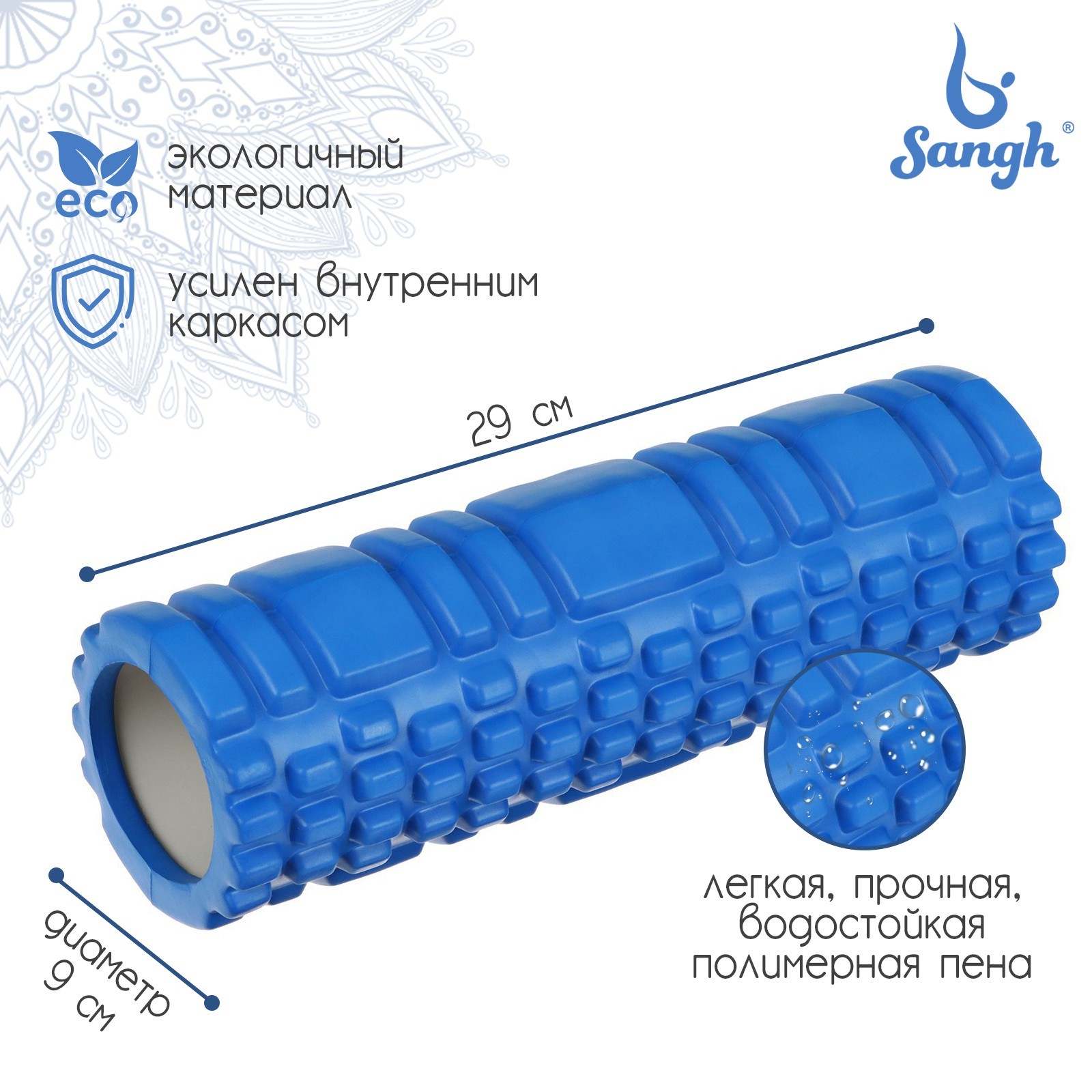 Ролик массажный Sangh, 29х9 см, цвет синий