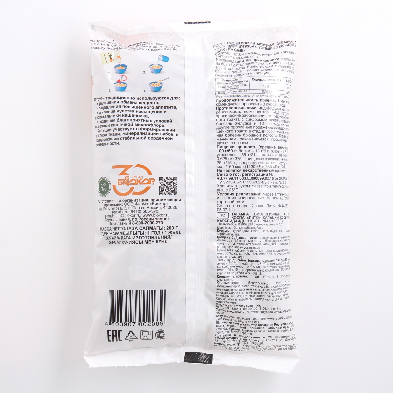 Отруби ржаные лито с кальцием, 200 г. Назначение: употребление 60 г в день удовлетворяет: рекомендуемую суточную потребность организма человека в пищевых волокнах не менее чем на 50% (не менее 15 г); в кальции не менее чем на 37, 5 % (не менее 0, 375 г). Отруби пшеничные хрустящие «ЛИТО» с кальцием — натуральный продукт для здорового питания, содержащий пищевые волокна злаков (клетчатку). Клетчатка (пищевые волокна) – один из важнейших элементов питания человека. Пищевые волокна помогают сопротивляться вредным факторам внешней среды, снижают токсическую нагрузку на организм и обладают целым спектром полезных свойств: - помогают контролировать вес, благодаря своей способности поглощать воду и увеличиваться в объеме, заполняя пространство желудка, тем самым снижая аппетит и количество усваиваемых калорий. Они замедляют всасывание углеводов в кровь, снижая потребность в инсулине и тягу к сладкому; - являются питательной средой для нормальной кишечной микрофлоры, поэтому применяются с целью предотвращения и коррекции дисбактериоза кишечника; - являются универсальным биологическим сорбентом – связывают и выводят из организма токсины, шлаки и тяжелые металлы; - набухают в кишечнике и размягчают его содержимое, благодаря чему эффективны в профилактике запоров; - обладают мягким желчегонным эффектом; - замедляют расщепление крахмала и препятствуют быстрому повышению уровня глюкозы в крови, поэтому рекомендуются при сахарном диабете; - связывают холестерин, поэтому применяются с целью профилактики атеросклероза. Кальций, входящий в состав продукта, активно участвует в формировании костной ткани, минерализации зубов и поддержании стабильной сердечной деятельности. Все злаки, используемые при производстве отрубей «ЛИТО», выращены на собственных полях в Пензенской области под контролем профессиональных агрономов, что гарантирует высокое качество и натуральность продукта. Способ употребления: отруби следует принимать во время еды, запивая достаточным количеством жидкости (не менее 1 стакана). Отруби желательно вводить в рацион постепенно, начиная с 10-15 г (2-3 столовые ложки) и доводить количество до 50-60 г (12 столовых ложек) в день в течение 1, 5-3 недель. Залейте отруби молоком, кефиром, йогуртом и Вы получите здоровый и некалорийный завтрак, обед или ужин. Можете добавлять отруби в суп или каши, а также употреблять вместо хлеба. Продолжительность приема – 1 месяц. Рекомендуется проводить 3 курса в год. Пищевая ценность в 100 г/60 г: белки – 15 г/9 г, жиры – 3, 5 г/2 г, углеводы – 30 г/18 г, кальций, не менее – 0, 625 г/0, 375 г, пищевые волокна, не менее – 25 г/15, энергетическая ценность – 260 ккал/160 ккал (1090 кДж/650 кДж). ХЕ=2, 5. Состав: отруби ржаные, источник кальция - карбонат кальция, соль. Противопоказания: индивидуальная непереносимость компонентов БАД, острые и хронические заболевания желудочно-кишечного тракта с синдромом диареи, язвенная болезнь желудка и 12-перстной кишки и другие эрозивные поражения желу-дочно-кишечного тракта в стадии обострения, спаечная болезнь брюшной полости. Перед применением рекомендуется проконсультироваться с врачом. parts count: 0 Жиры, г: 3.5 Белки, г: 13 Углеводы, г: 35 Вес нетто, г: 200 Энергетическая ценность, ккал: 270 Вид упаковки: Пакет Температурное ограничение: Нет Назначение: Для костей и суставов Назначение: Для желудка и кишечника Форма
