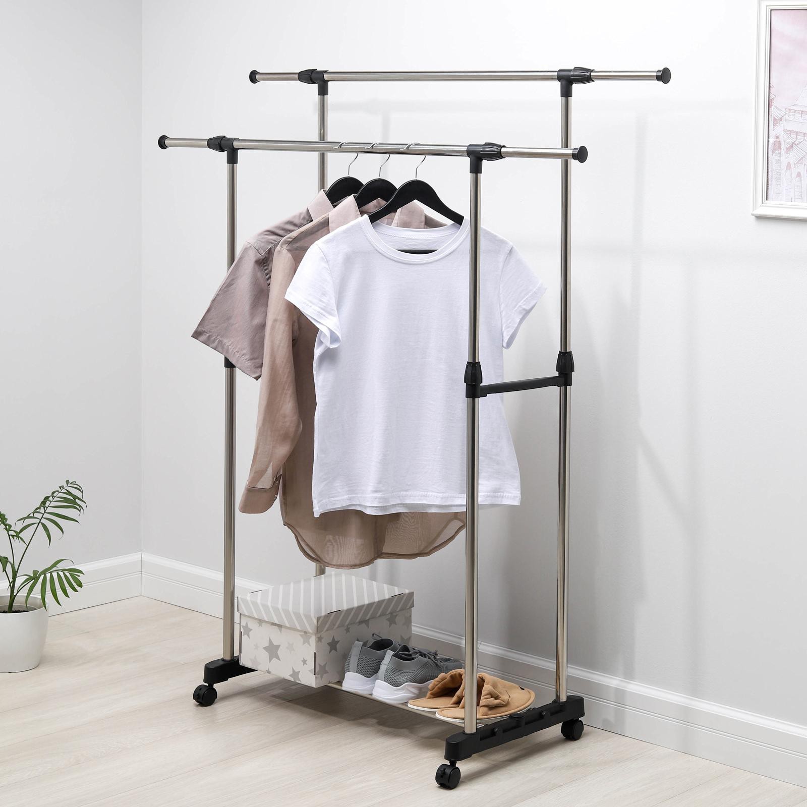 Вешалка напольная для одежды телескопическая доляна, 2 перекладины 80(145)x43x90(160) см