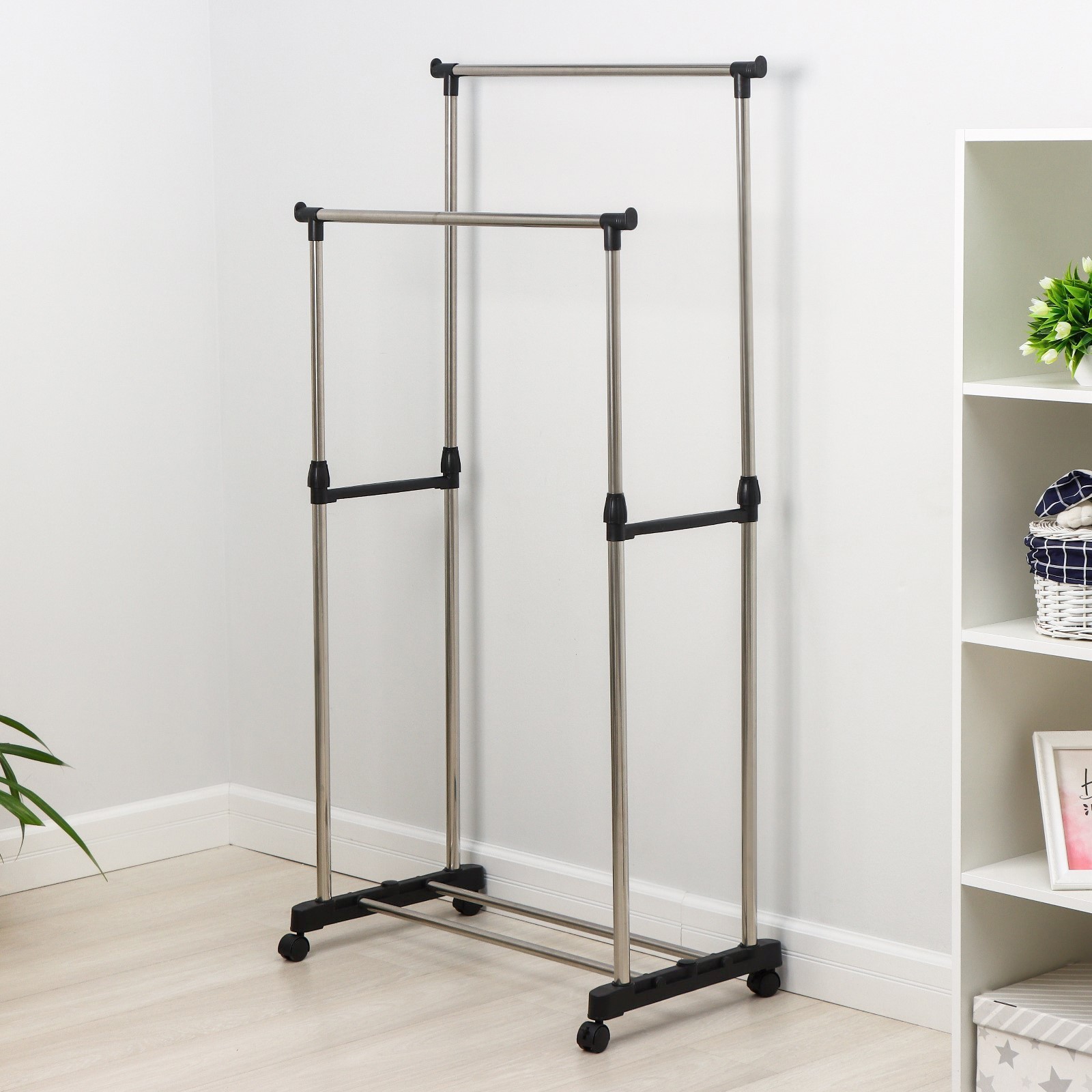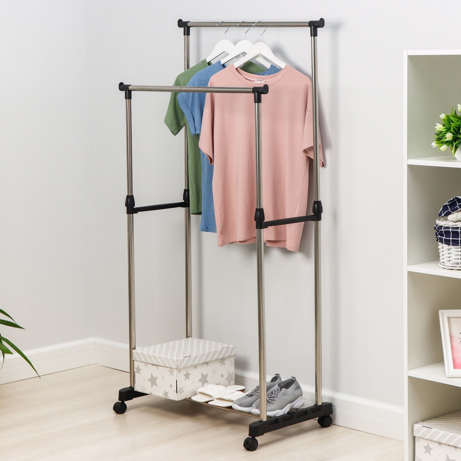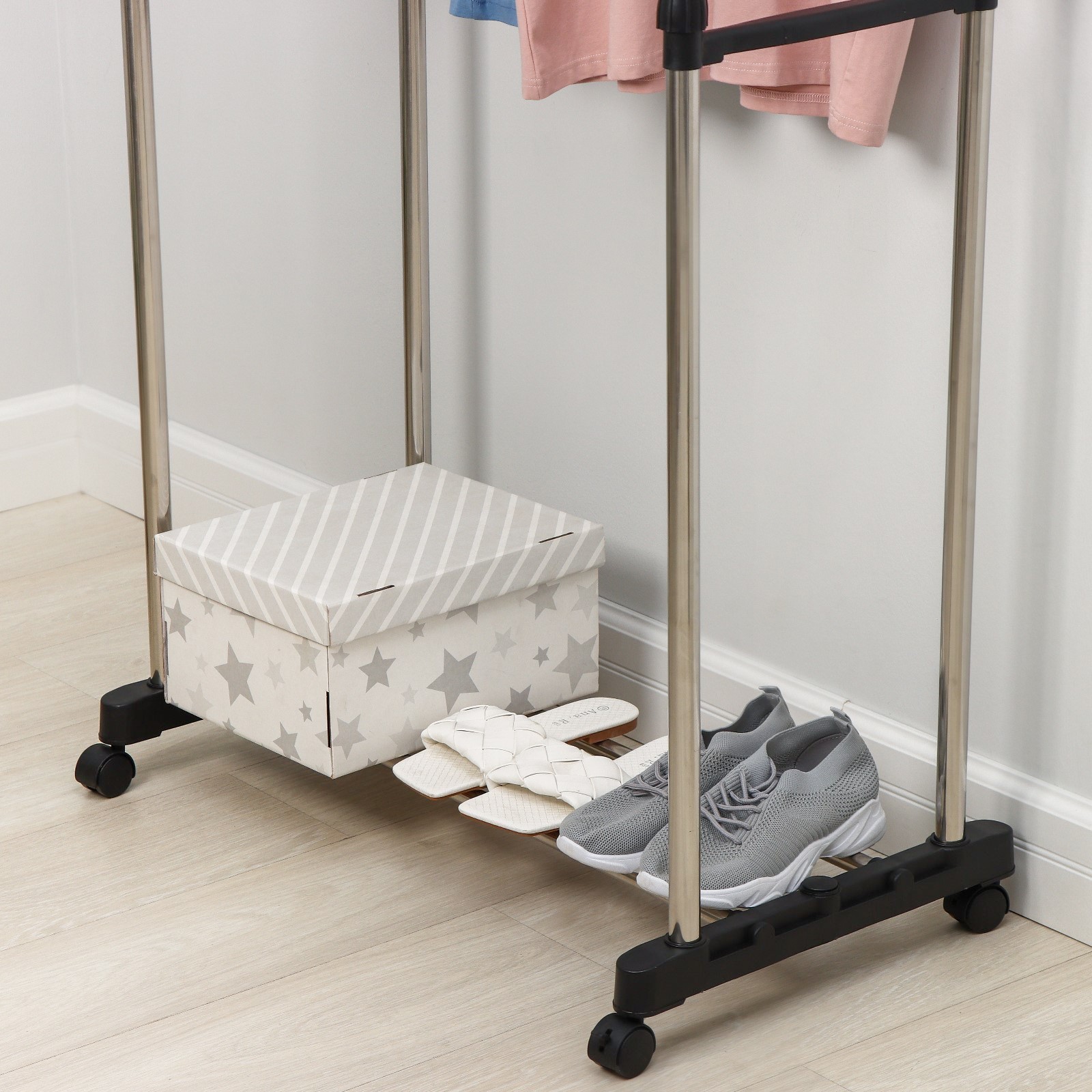 Вешалка напольная для одежды телескопическая доляна, 2 перекладины, подставка для обуви, 80x43x90(160) см