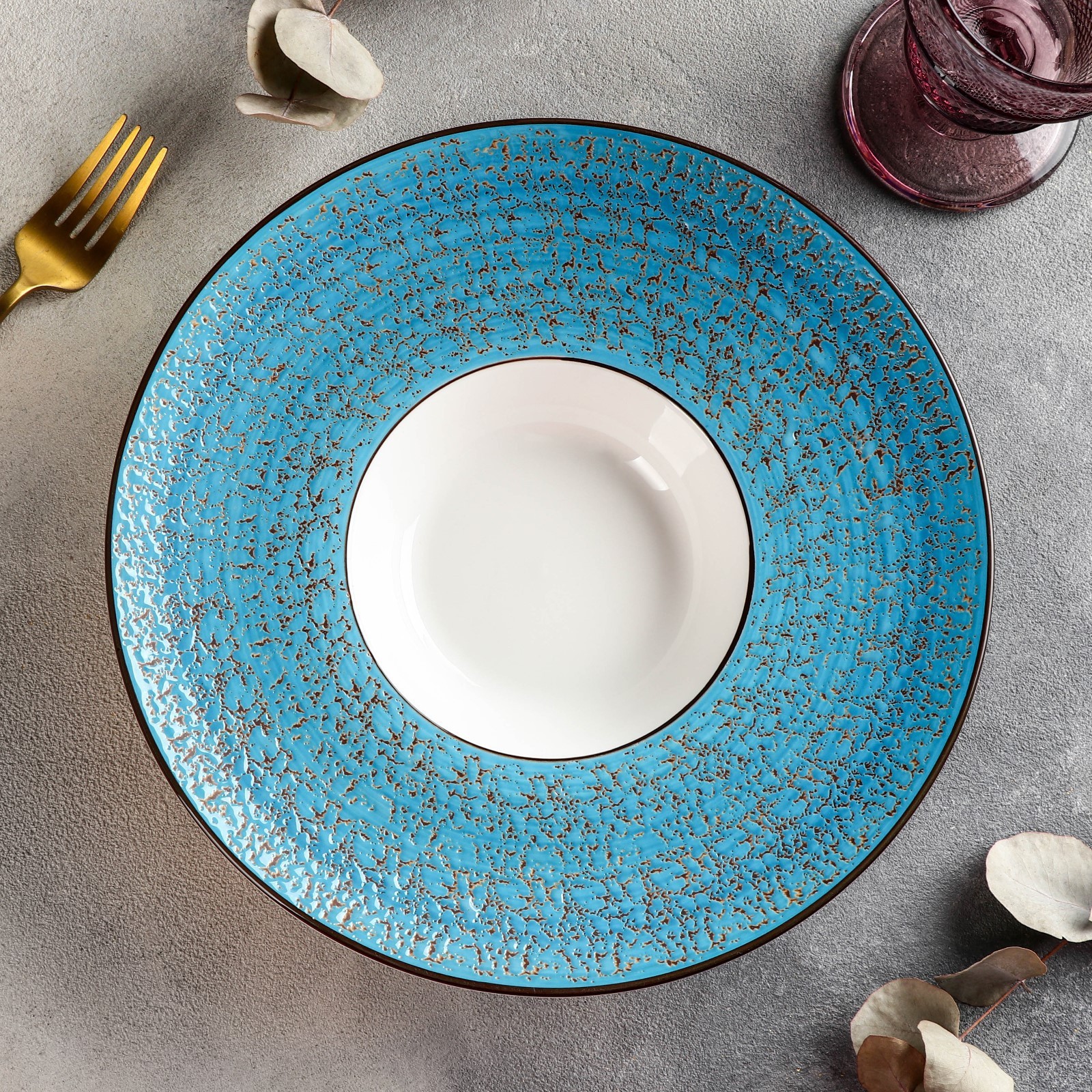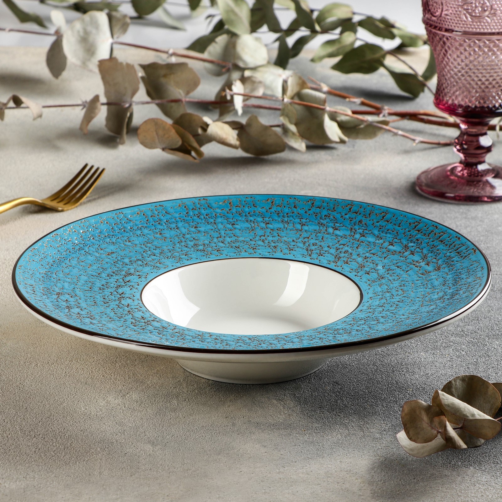 Тарелка фарфоровая для пасты Wilmax Splash, 250 мл, D=27 см, цвет голубой