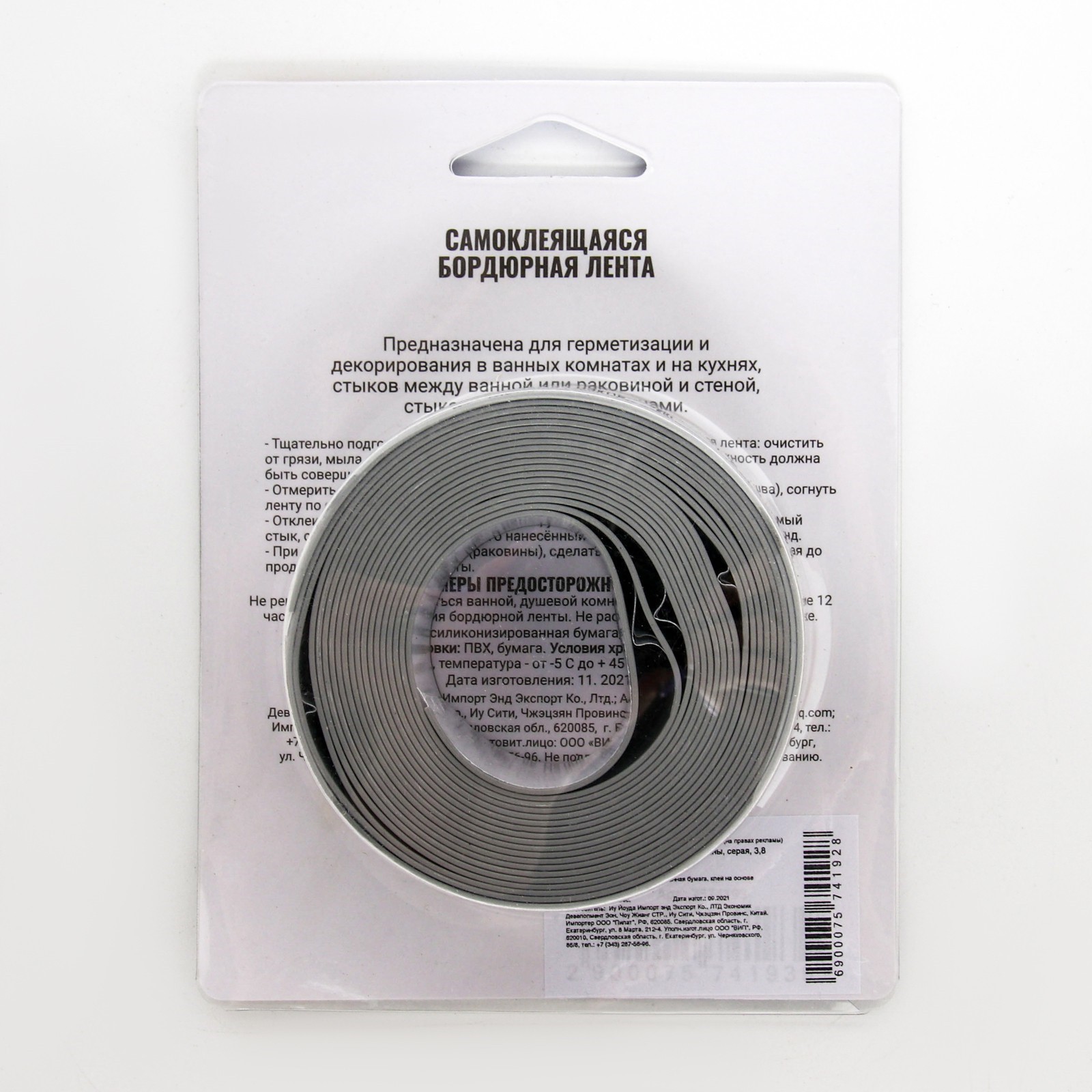 Бордюрная лента «мой выбор» для ванны и раковины, серая, 38 мм 3.2 м. Обеспечьте надежную защиту вашего дома от влаги и грязи с нашей бордюрной самоклеящейся лентой. Эффективный монтаж ванны, унитаза, раковины и варочной поверхности станет легким и качественным, экономя ваше время и ресурсы. Наша клейкая лента обеспечивает долговременную защиту от плесени, грибка и грязи, а также идеально закрывает ненавистные щели, подобно скотчу. Ее полная водонепроницаемость делает ее идеальным выбором для стыков ванны, унитаза, раковины и варочной поверхности. Широкий размер и влагоотталкивающие свойства клейкой ленты придают ей прочность, превращая ее в надежный плинтус для вашего кухонного гарнитура. Защитите свой дом легко и эффективно с нашей бордюрной лентой, созданной для долговременной безопасности и уюта. Способ применения: Тщательно обезжирьте поверхность.Приклейте ленту тщательно прижимая.Убедитесь в плотном прилегании ленты.Дождитесь полного высыхания через 12 часов, за это время не допускайте попадания влаги на ленту.Примечание: для помещений с повышенной влажностью, рекомендуется клеить ленту на жидкие грозди. Мы уверенны, что силиконовая монтажная лента станет отличным помощником при борьбе с влагой и грязью! Важно! ширина ленты, имеет погрешность в размере 1-2 мм. Набор:Нет|Цвет:Серый|Длина, м:3.2|Ширина, мм:38|Европодвес:Нет|В наборе, шт.:1|Штрихкод на единице товара:Да|Тип клейкой ленты :Односторонняя|Особенности:Цветная|Страна:Китай  развернуть описание ▼
