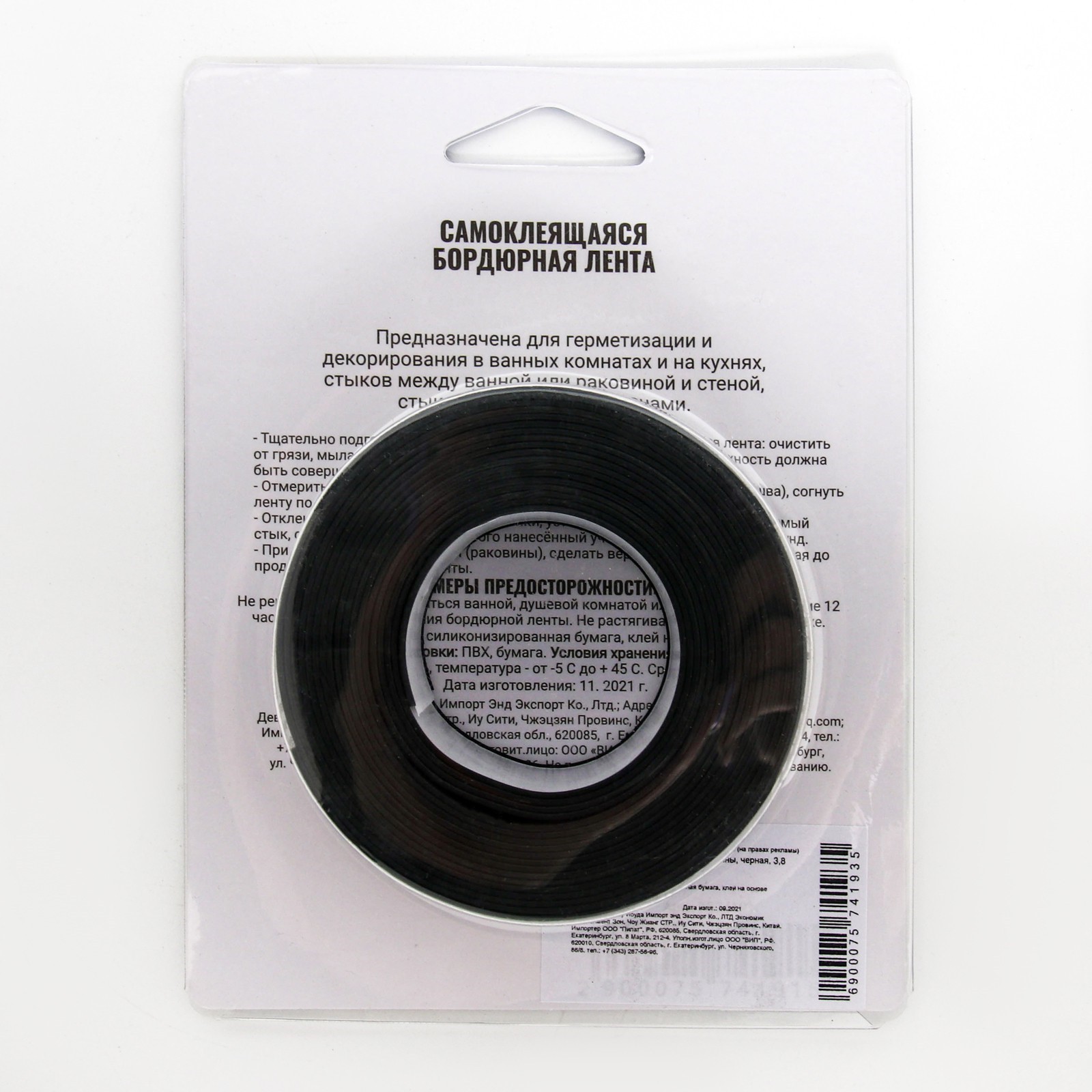 Бордюрная лента «мой выбор» для ванны и раковины, черная, 38 мм 3.2 м. Обеспечьте надежную защиту вашего дома от влаги и грязи с нашей бордюрной самоклеящейся лентой. Эффективный монтаж ванны, унитаза, раковины и варочной поверхности станет легким и качественным, экономя ваше время и ресурсы. Наша клейкая лента обеспечивает долговременную защиту от плесени, грибка и грязи, а также идеально закрывает ненавистные щели, подобно скотчу. Ее полная водонепроницаемость делает ее идеальным выбором для стыков ванны, унитаза, раковины и варочной поверхности. Широкий размер и влагоотталкивающие свойства клейкой ленты придают ей прочность, превращая ее в надежный плинтус для вашего кухонного гарнитура. Защитите свой дом легко и эффективно с нашей бордюрной лентой, созданной для долговременной безопасности и уюта. Способ применения: Тщательно обезжирьте поверхность.Приклейте ленту тщательно прижимая.Убедитесь в плотном прилегании ленты.Дождитесь полного высыхания через 12 часов, за это время не допускайте попадания влаги на ленту.Примечание: для помещений с повышенной влажностью, рекомендуется клеить ленту на жидкие грозди. Мы уверенны, что силиконовая монтажная лента станет отличным помощником при борьбе с влагой и грязью! Важно! ширина ленты, имеет погрешность в размере 1-2 мм. Набор:Нет|Цвет:Чёрный|Длина, м:3.2|Ширина, мм:38|Европодвес:Нет|В наборе, шт.:1|Штрихкод на единице товара:Да|Тип клейкой ленты :Односторонняя|Особенности:Цветная|Страна:Китай  развернуть описание ▼