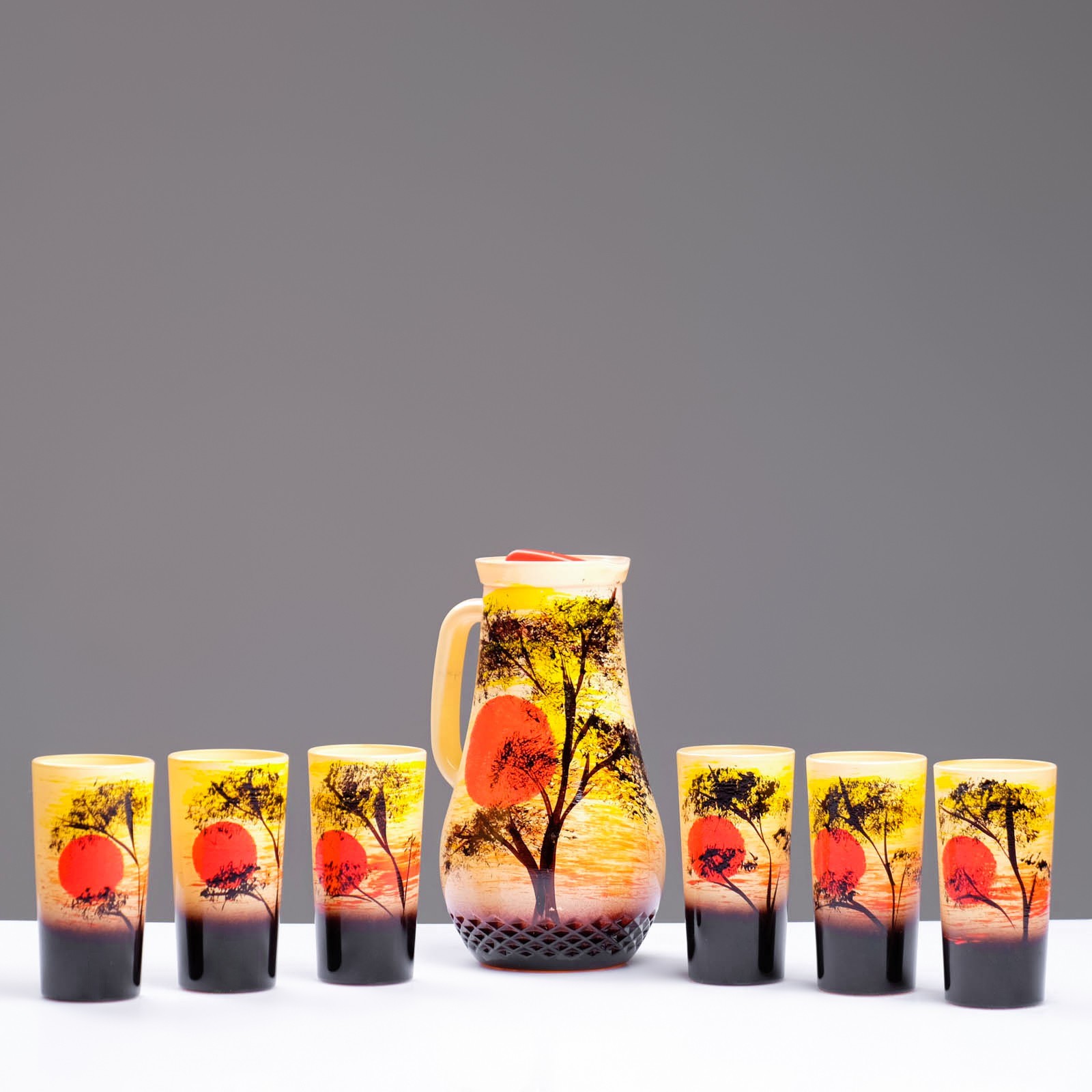 Набор для сока "закат" художественная роспись, 6 стаканов 1250/200 мл