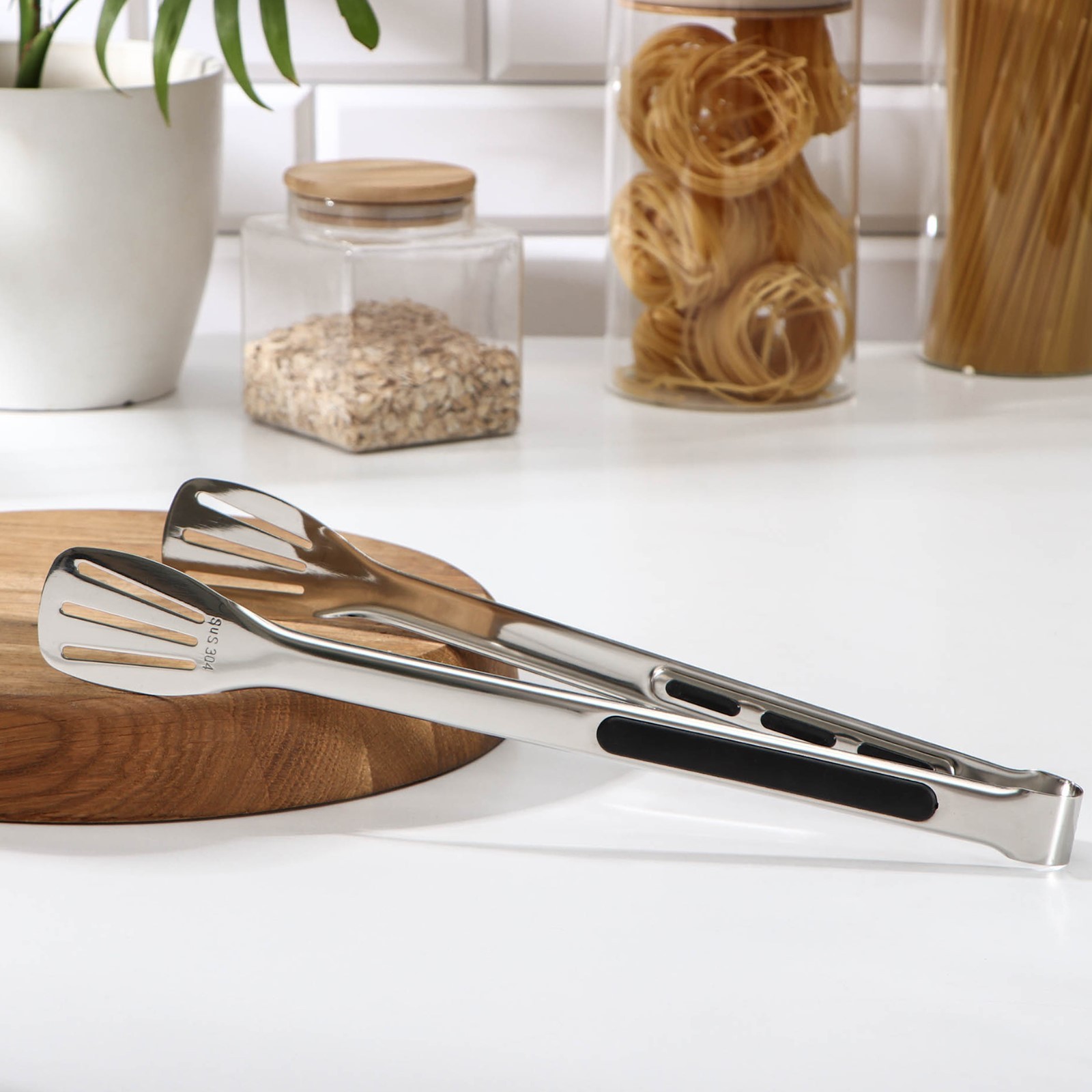 Щипцы кухонные доляна Chrome, 33 см нержавеющая сталь, цвет чёрный
