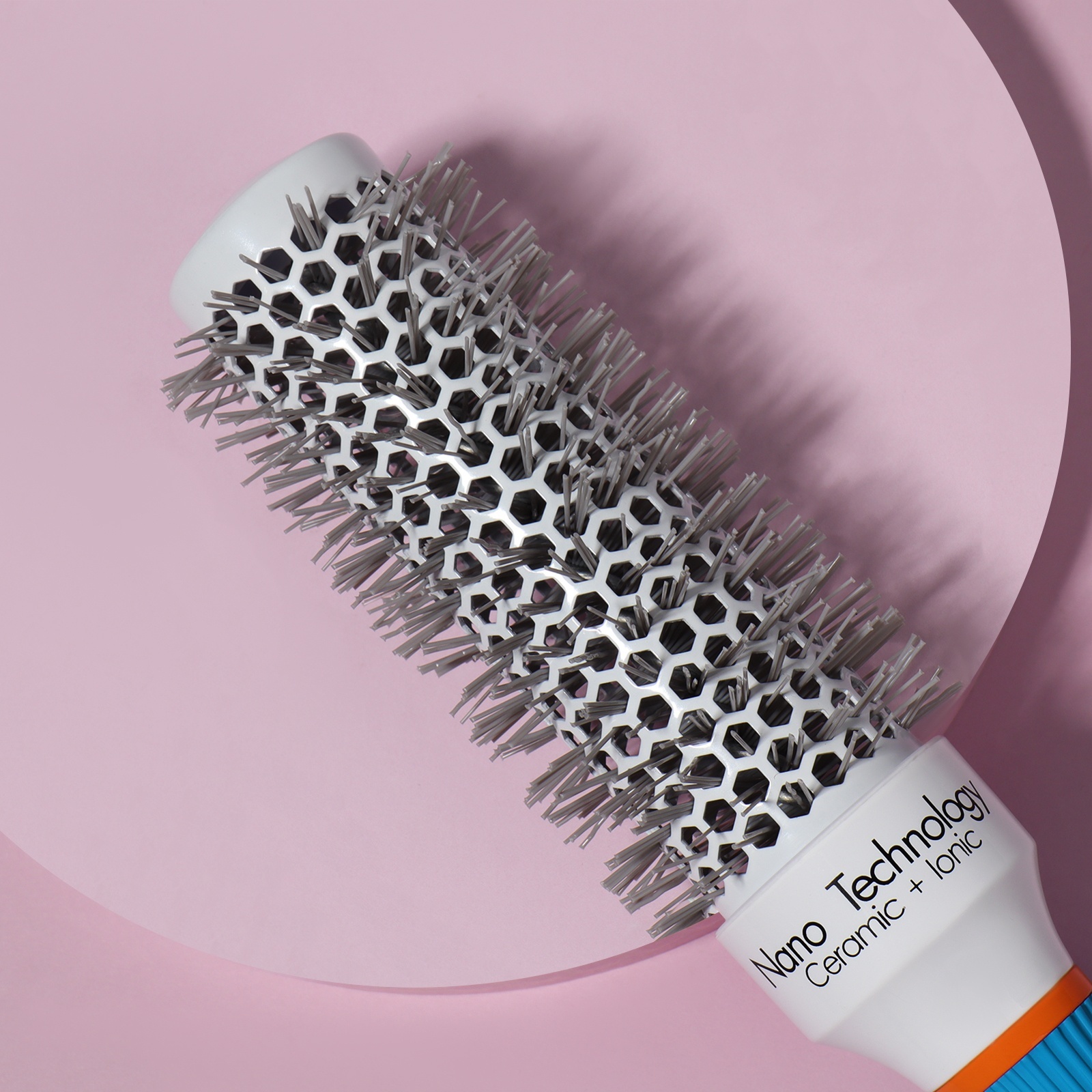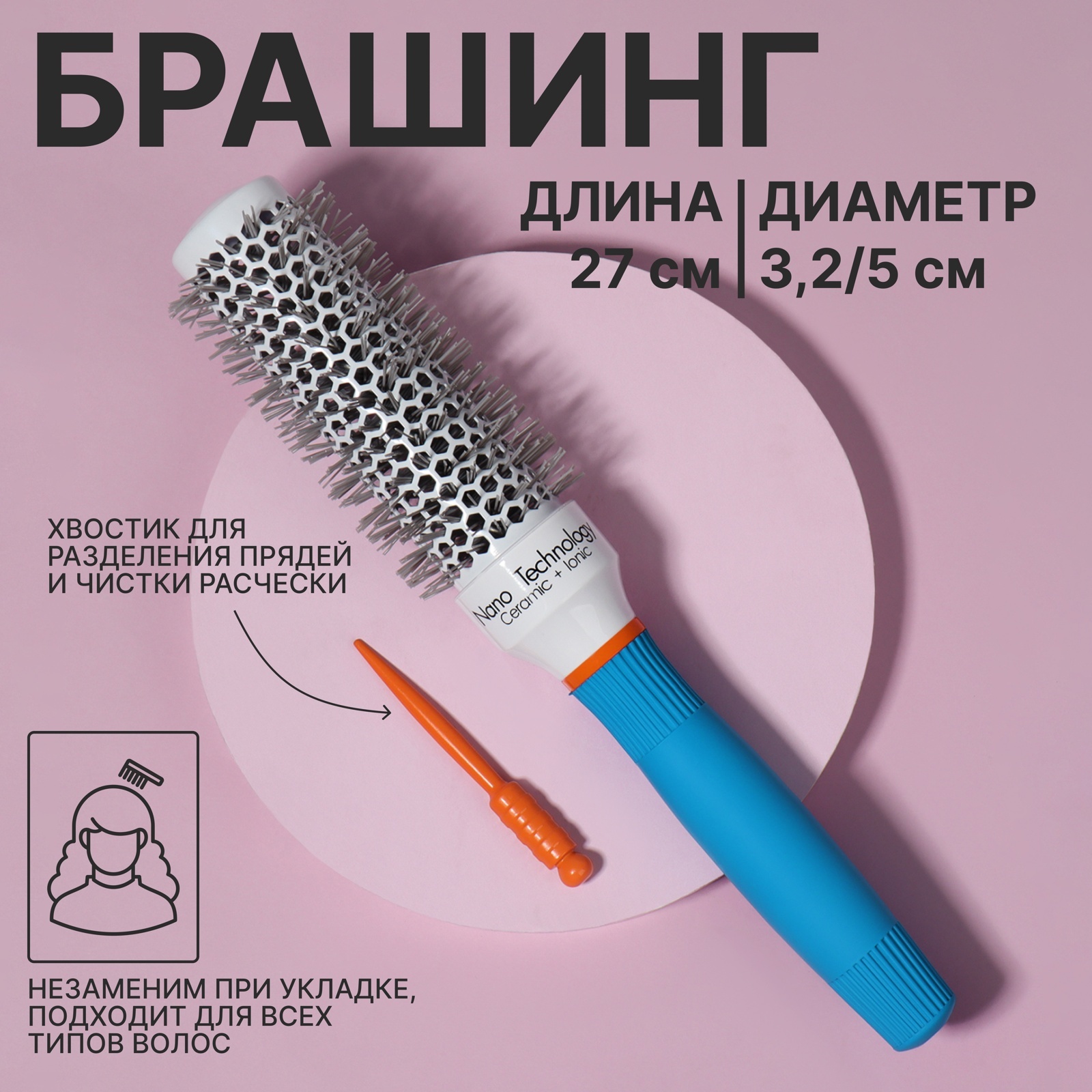Брашинг керамический, продуваемый, прорезиненная ручка, d=32/50 мм, 27(±1) см. Профессиональная керамическая щетка с вентиляцией — идеальный инструмент для салонного ухода и домашней укладки. Благодаря комбинированным материалам и продуманной конструкции, она обеспечивает бережное отношение к волосам и сокращает время сушки. Технологические преимущества Керамическое покрытие — равномерно распределяет тепло, защищая волосы от перегрева, выдержтвает до 300 градусовПерфорированная основа — ускоряет процесс сушки, позволяя воздуху свободно циркулироватьПрорезиненная ручка — обеспечивает надежный захват даже при продолжительной работеДиаметр 5 см — оптимален для создания объемных укладок на волосах средней длины и густотыПрофессиональное применение Щетка разработана для парикмахеров, ценящих эргономику и эффективность. Керамическая основа выдерживает интенсивное использование в салонных условиях, сохраняя первоначальные свойства. Рекомендации по уходу Очищайте зубцы после каждого применения. Для дезинфекции используйте специализированные растворы. Храните в сухом месте, избегая падений — керамическое покрытие требует бережного обращения. Набор:Нет|Цвет:Разноцветный|Форма:Круглая|Диаметр, см:5|Детские:Нет|Материал корпуса:Керамика|Вид упаковки:Подвес|Рисунок:Нет|Материал:Пластик|Материал:Резина|Материал:Керамика|Материал:Металл|Материал:Нейлон|Прорезиненная ручка:Да|Продуваемая расчёска:Да|Тип расчёски:С ручкой|Зубчики расчёски:Частые|Профессиональная(ый):Да|В подарочной упаковке:Нет|Материал щетины:Пластиковая|Страна:Китай  развернуть описание ▼