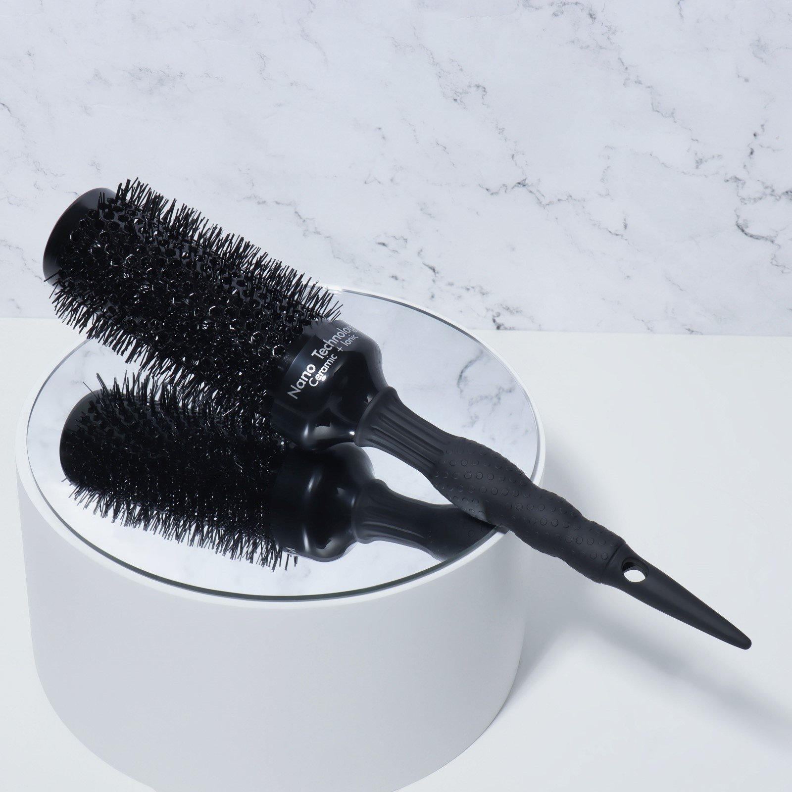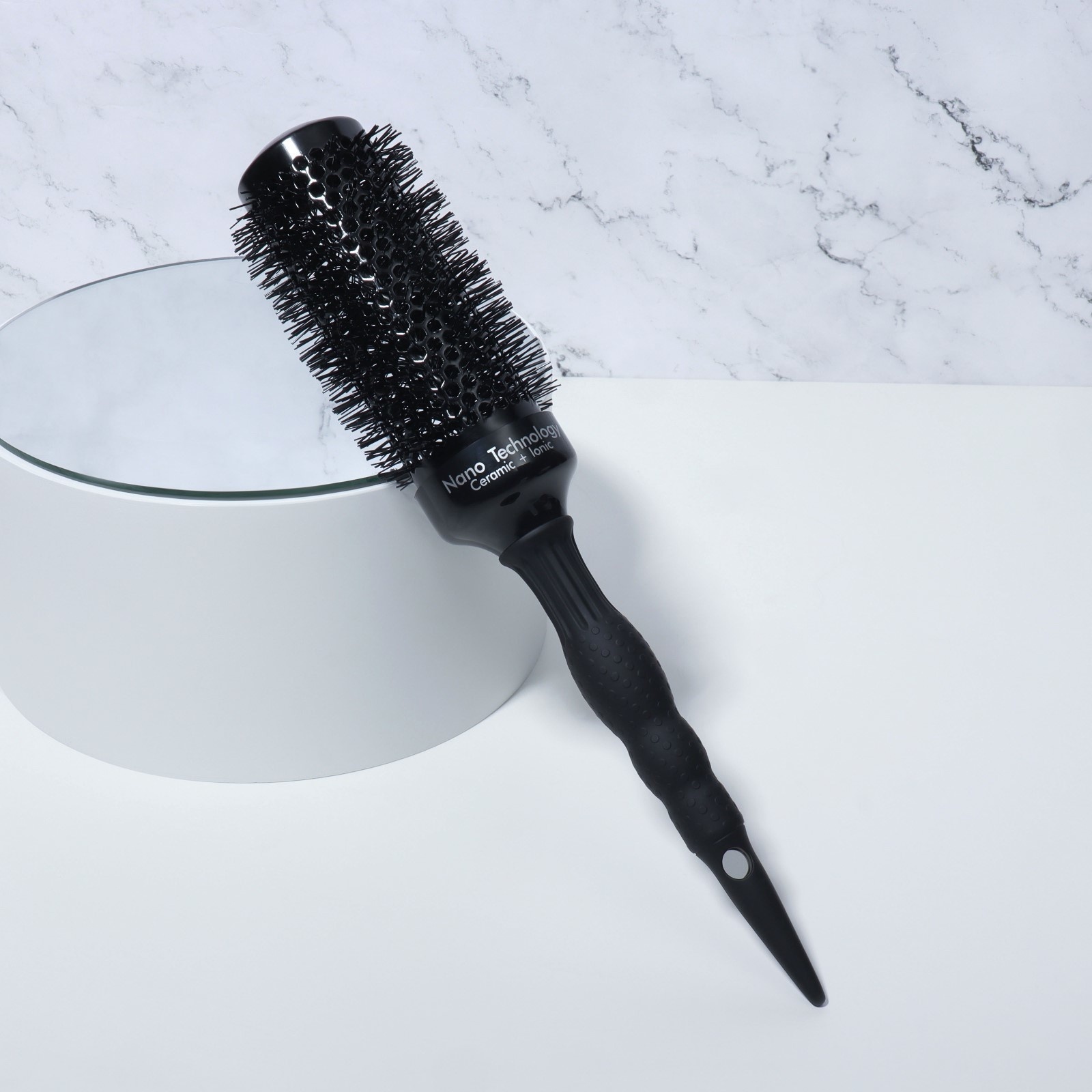 Брашинг керамический premium, продуваемый, прорезиненная ручка, d=43/60 мм, 28.7(±1) см, чёрный. Профессиональная керамическая щетка премиум-класса с диаметром 6 см — инструмент для мастеров укладки. Черный лаконичный дизайн сочетается с продуманной эргономикой и технологичными материалами. Диаметр основания брашинга — 4,3 см. Диаметр брашинга с щетиной — 6 см. Технические преимущества Керамико-металлический сердечник — обеспечивает равномерное распределение тепла при укладке. Выдерживает до 300°.Вентилируемая конструкция — сокращает время сушки на 25-40%Прорезиненная ручка — предотвращает скольжение во время работыНейлоновая щетина — бережно взаимодействует с волосами разной структурыДля профессионального использования Щетка разработана для салонов красоты и стилистов, работающих с клиентами премиум-сегмента. Оптимальна для создания сложных укладок на длинных и густых волосах. Рекомендации по уходу Очищайте после каждого клиента специализированными дезинфицирующими средствами. Храните в индивидуальном чехле для сохранения керамического покрытия. Избегайте падений и механических повреждений. Набор:Нет|Цвет:Чёрный|Форма:Круглая|Диаметр, см:6|Детские:Нет|Материал корпуса:Керамика|Вид упаковки:Пакет|Вид упаковки:Подвес|Рисунок:Нет|Материал:Нейлон|Материал:Керамика|Материал:Резина|Материал:Металл|Материал:Пластик|Прорезиненная ручка:Да|Продуваемая расчёска:Да|Тип расчёски:С ручкой|Зубчики расчёски:Частые|Профессиональная(ый):Да|В подарочной упаковке:Нет|Материал щетины:Нейлоновая|Страна:Китай  развернуть описание ▼