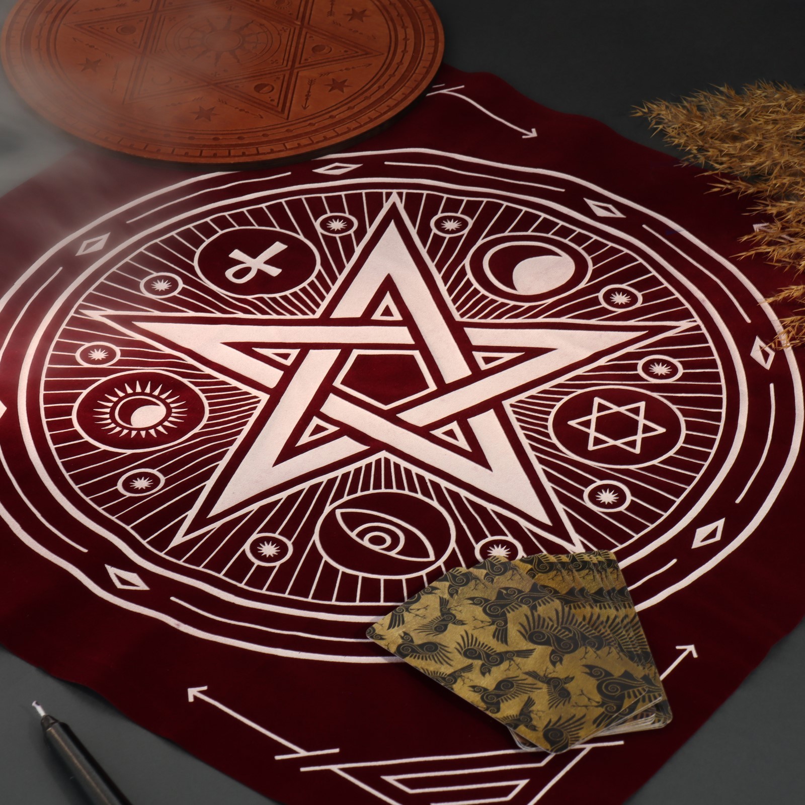 Скатерть для гадания бархатная «пентаграмма», 50х50 см, бордовая, 16+