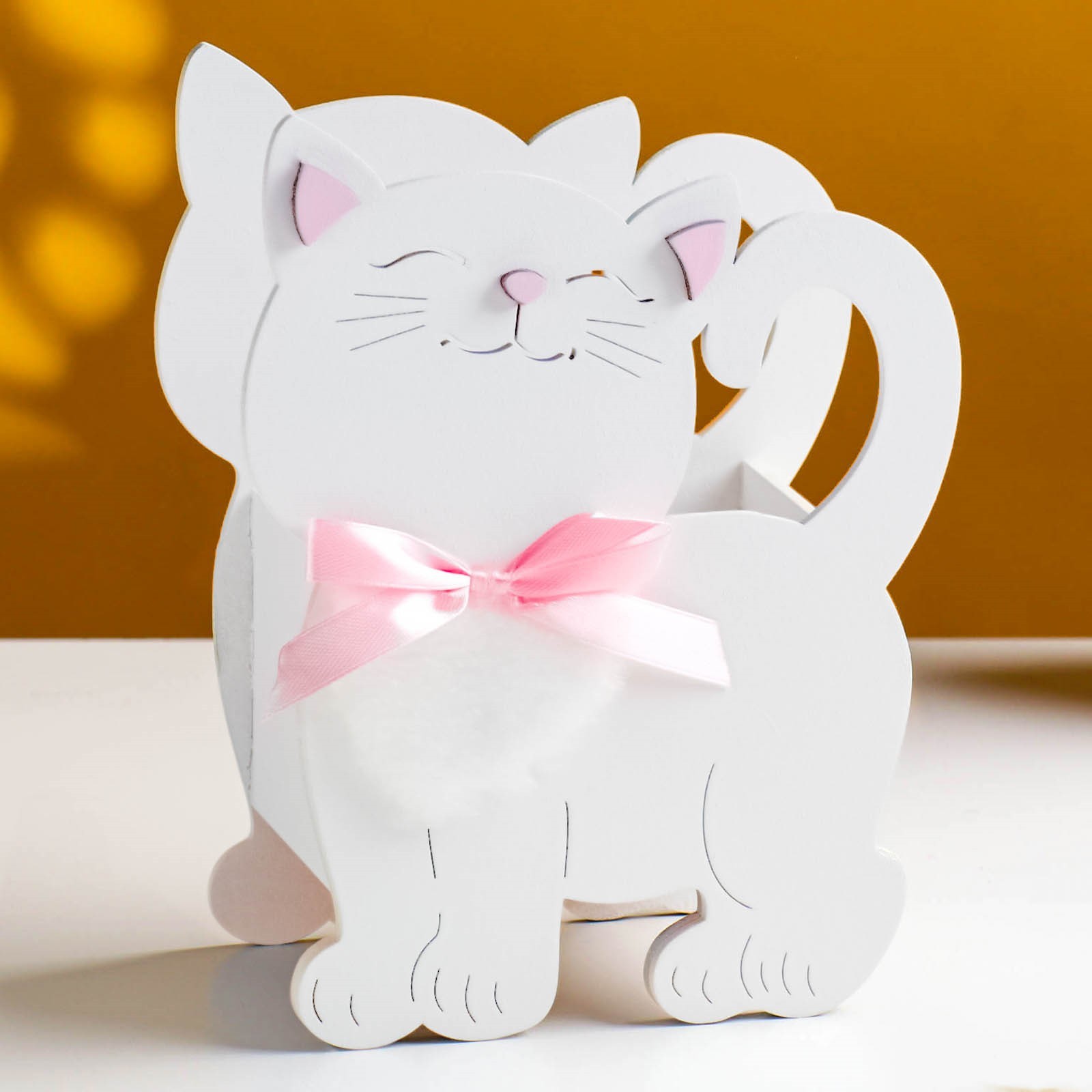 Кашпо для цветов «котик», 14.5 7 18.5 см, деревянное, белое. Кашпо можно использовать как функциональную упаковку для подарка, подставку под цветы игрушки и разнообразные мелочи, в качестве украшения интерьера. Оно подходит как для живых, так и для искусственных цветов. Цвет:Белый|Форма:Фигурная|Длина, см:14.5|Ширина, см:7|Высота, см:18.5|Вид установки:Настольное|Тематика:Однотонная|Материал:Дерево|Вид ручки:Без ручки|Можно оставлять зимой на улице:Да|Страна:Россия  развернуть описание ▼