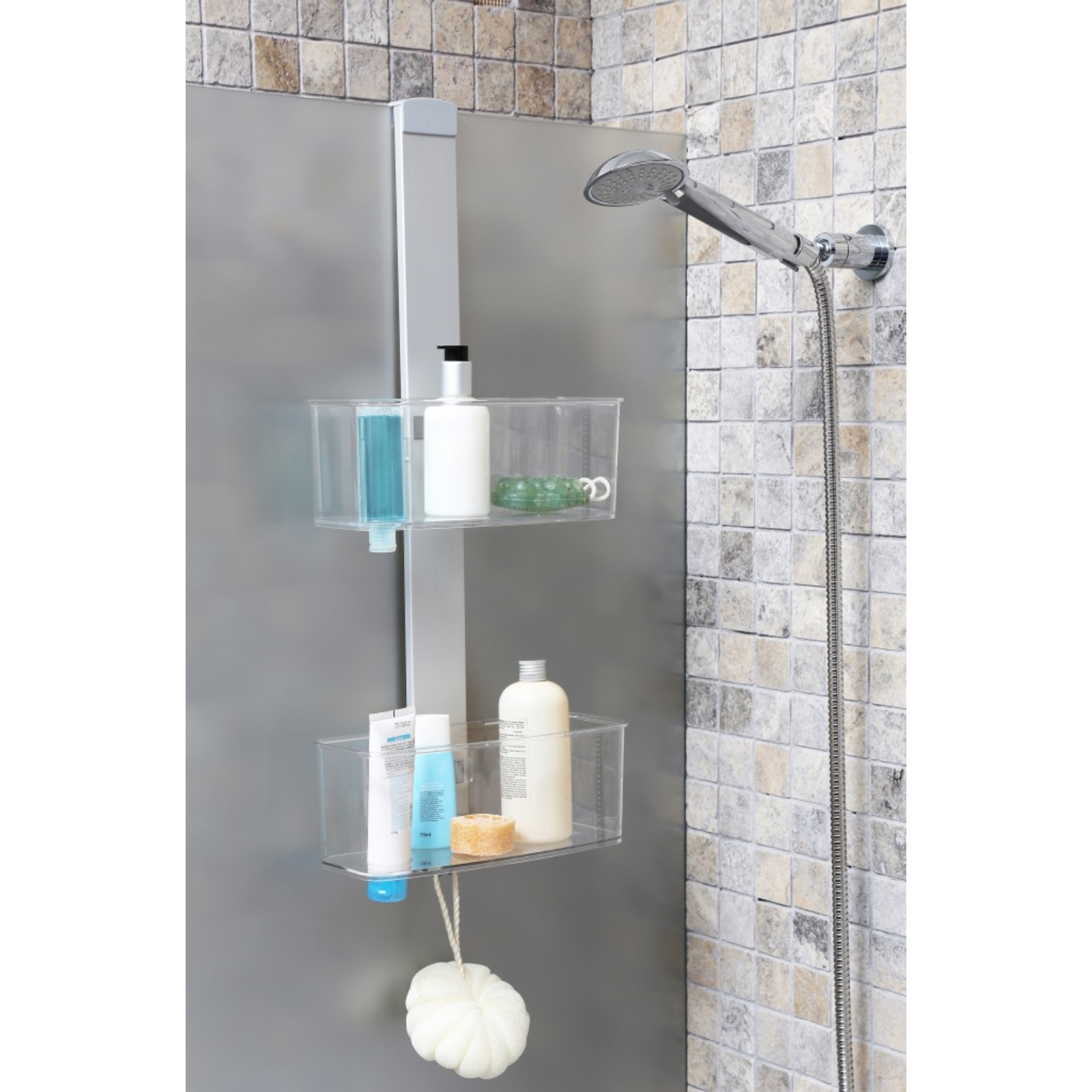 Алюминиевая стойка с 2-мя глубокими полками, 29х13х11 см, для душевой кабины, прозрачно-натуральная