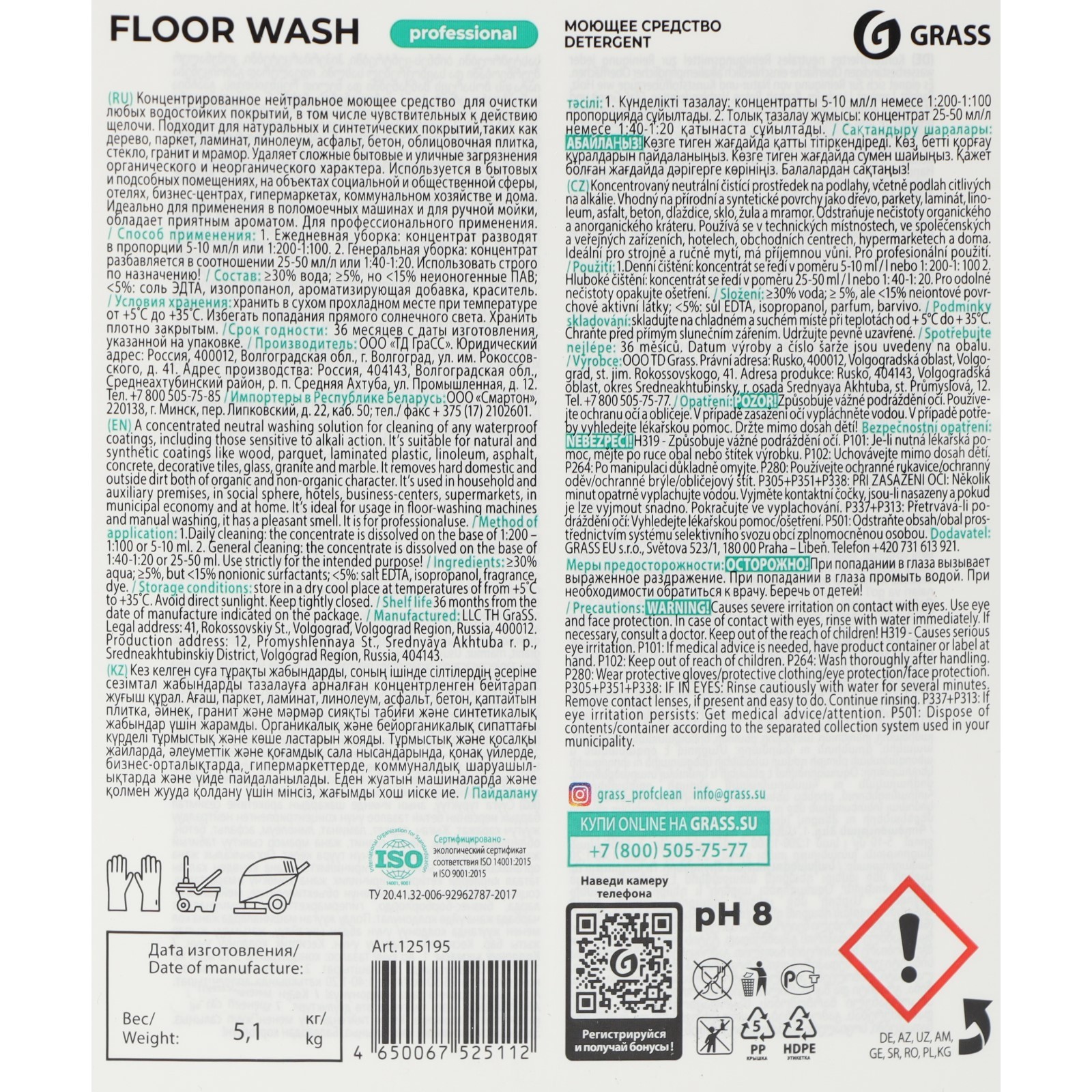 Нейтральное средство для мытья пола "Floor Wash", 5 л