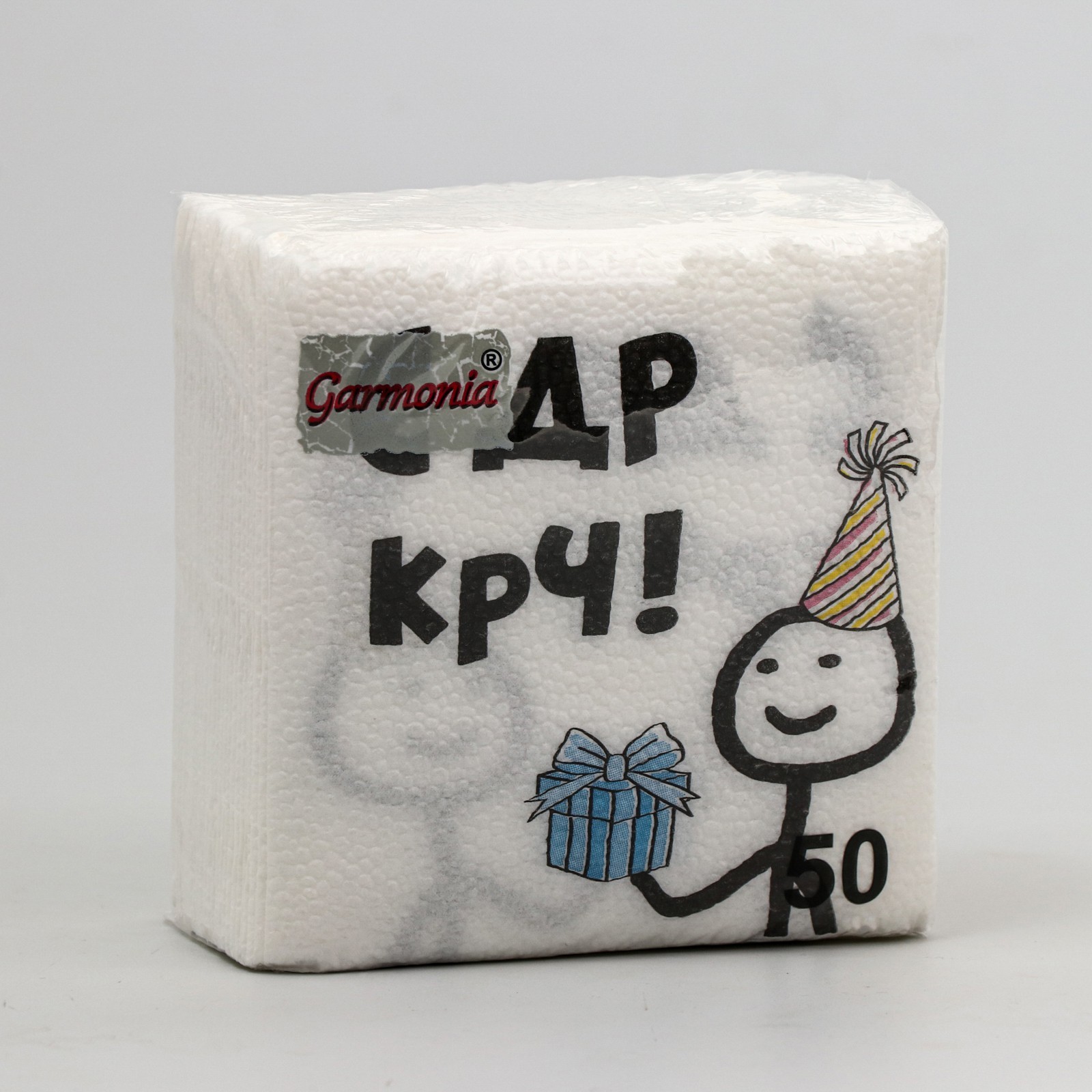 Салфетки бумажные однослойные гармония цвета "с др крч" белые 24*24 см, 50 шт