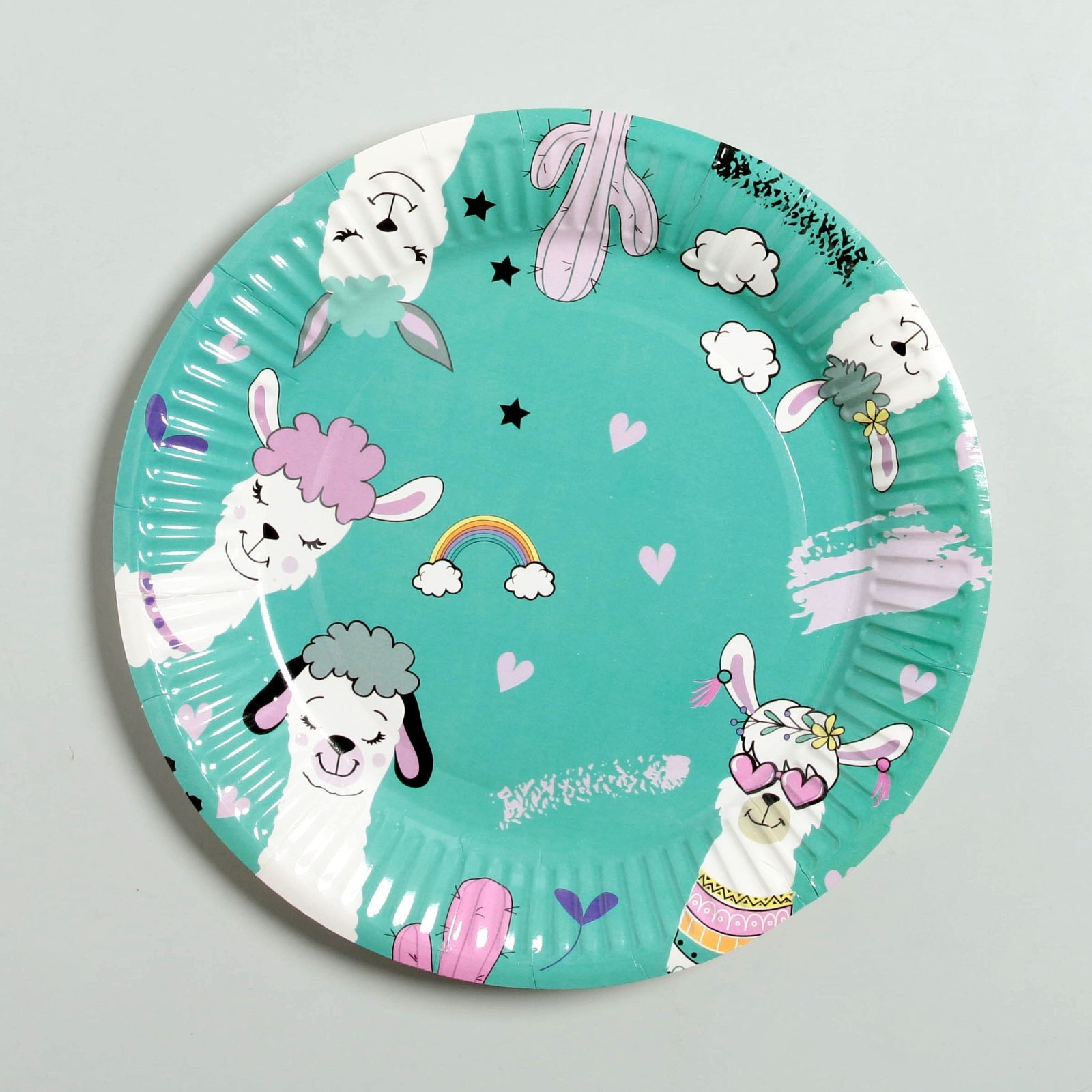 Тарелки бумажные «ламы», набор, 6 шт.. Посуда изготовлена из высококачественной бумаги без добавления поликарбоната, меламина и поливинилхлорида. Такие изделия безопасны, они не «раскисают» при взаимодействиями с продуктами питания. Преимущества бумажной посудыЭкологически безвредна: полностью разлагается в естественной среде. Гигиеничность и безопасность: при изготовлении используется первичный и вторичный картон с ламинацией, крафт-бумага и пищевые красители. Выдерживает высокую и низкую температуру. Сохраняет вкус еды и напитков, не выделяя вредных веществ, при нагреве. Тарелки и стаканы из бумаги приятнее на ощупь, чем аналогичная посуда из пластика. Такую посуду не надо мыть и невозможно разбить. Где применяется бумажная посуда:детские заведения и мероприятия, организация питание на свежем воздухе, точки продажи фастфуда, летние кафе и бистро, вендинг и офисы, доставка обедов. Цвет: Бирюзовый Диаметр, см: 18 В наборе, шт.: 6 Материал: Бумага  развернуть описание ▼