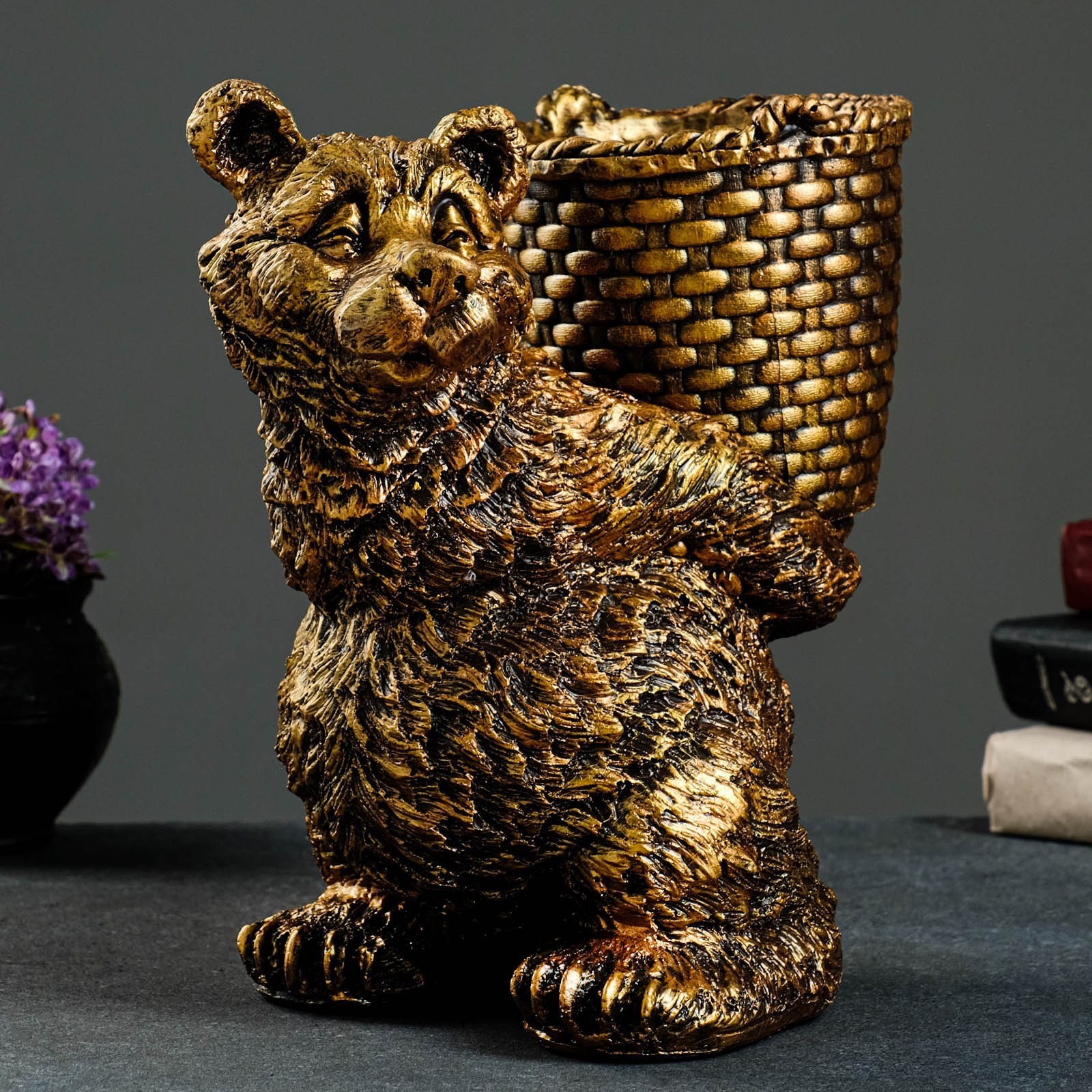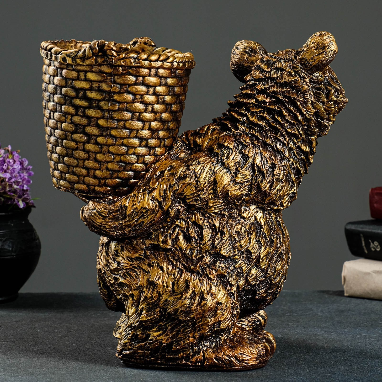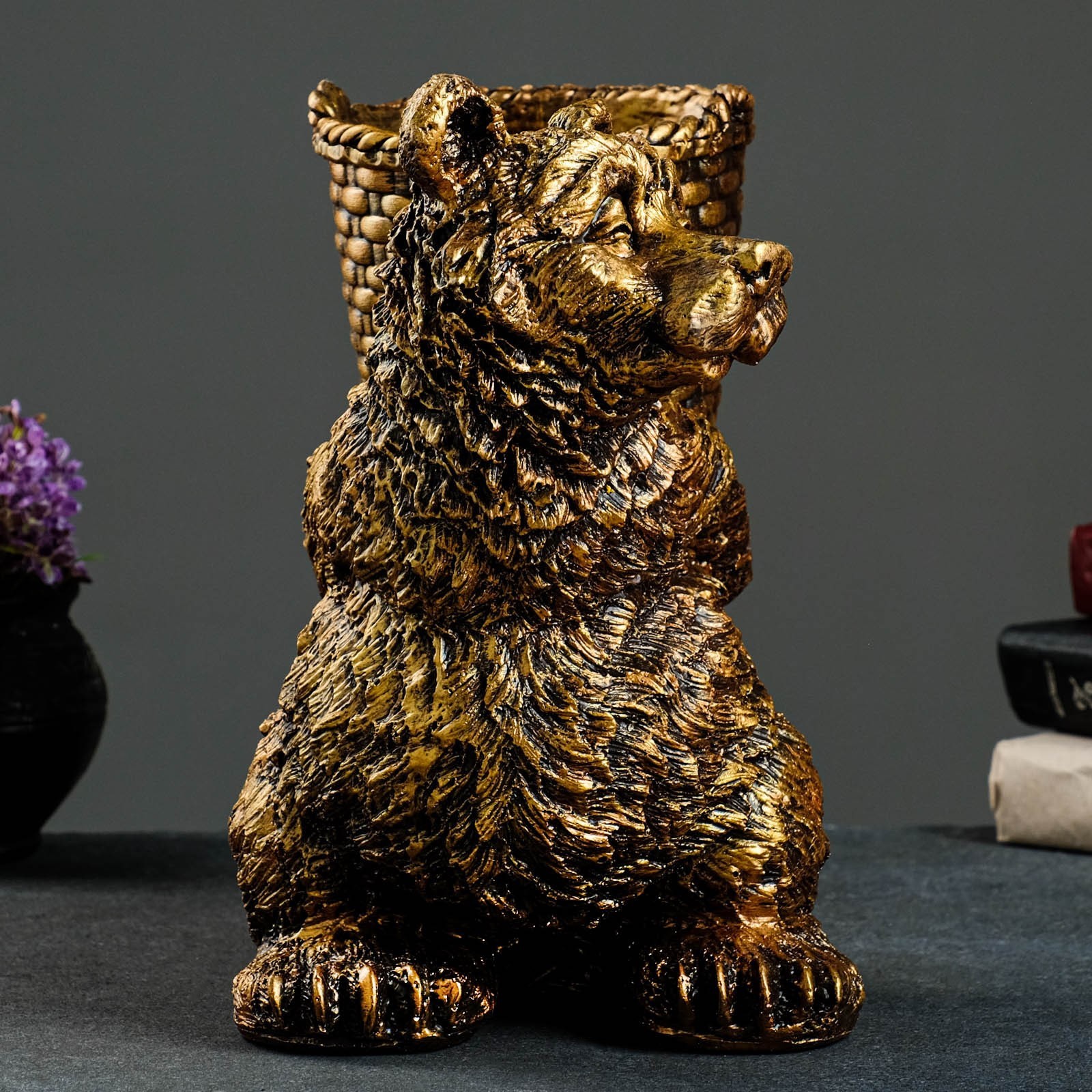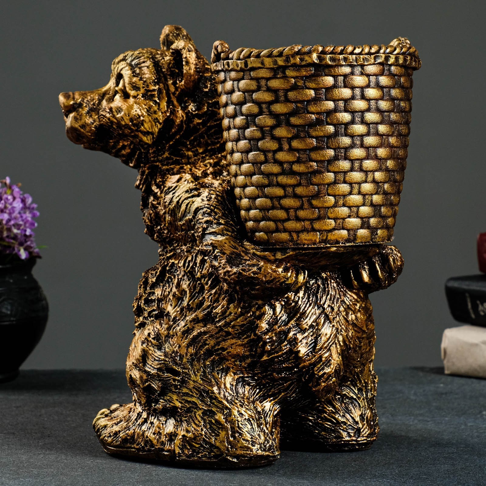 Подставка для зонтов "медведь с корзиной" 30х23х30см, бронза