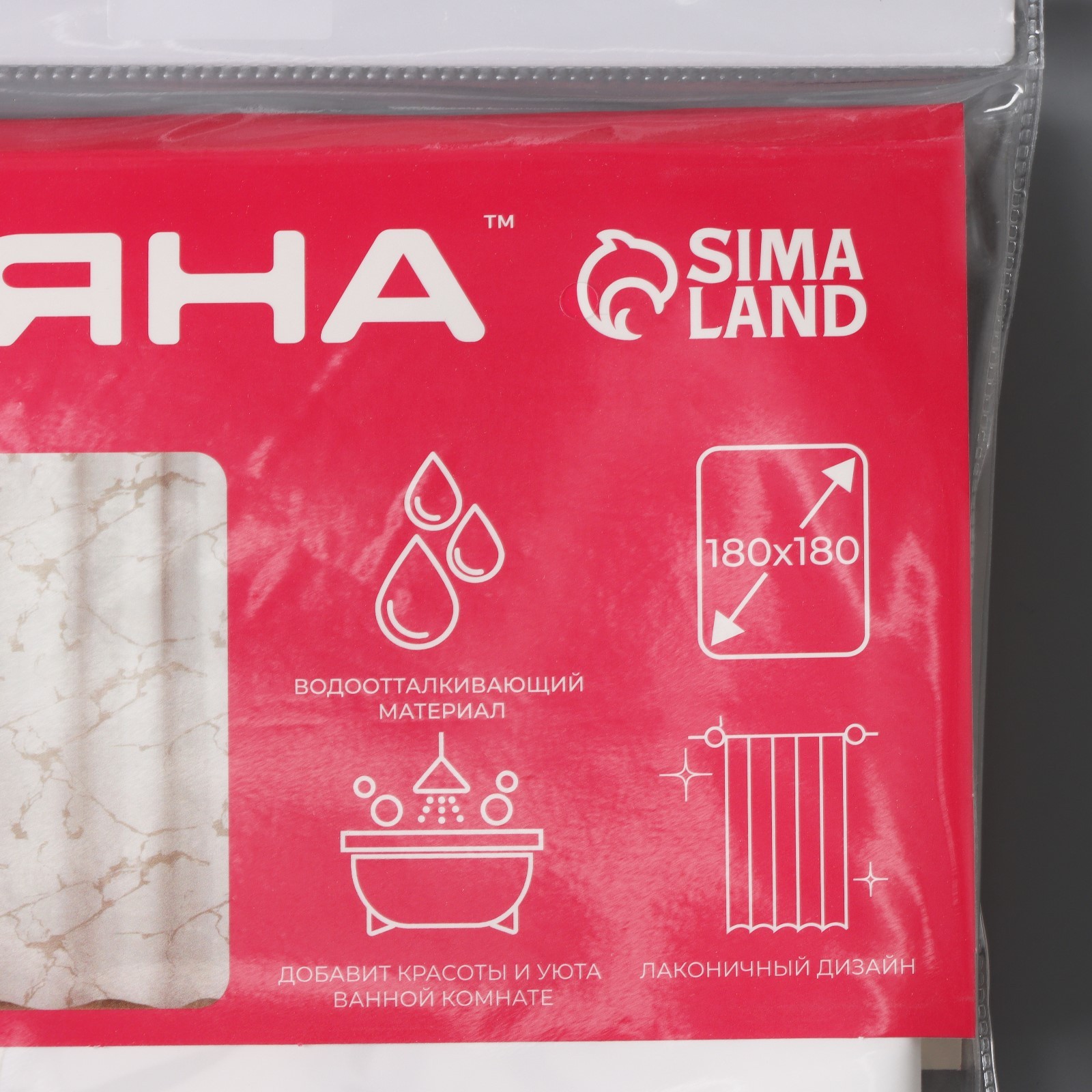 Штора для ванной доляна «мрамор», 180x180 см, eva, с люверсами. Как правильно выбрать шторку для ванной комнаты? Хочется, чтобы новое приобретение было качественным, износостойким, практичным и в то же время ярко и нетривиально оформленным. У нас есть решение! Пластиковые занавески для душа — несомненные лидеры по популярности. Хозяйки всего мира отдают им предпочтение из-за низкой стоимости и многообразия расцветок. Штора для ванной демонстрирует строго выдержанный баланс между декоративностью и функциональностью. Материал EVA - совершенно нетоксичный полимерный материал, не обладающий запахом. Они совсем не впитывают влагу, поэтому можно не беспокоиться о том, что штору придется часто просушивать. Кроме того, в случае необходимости их можно аккуратно укоротить с помощью самых обычных ножниц — края не потребуют дополнительной обработки. Да и в уходе они неприхотливы — их достаточно протирать губкой, смоченной в мыльном растворе. Чем она хороша? Модель выполнена из безопасного пластика, гарантирующего непромокаемость. Можно не беспокоиться о сухости пола или коврика у ванны. Красочный дизайн нового приобретения ощутимо освежит знакомый интерьер, а низкая цена позволит легко сменить занавеску, если вам наскучил рисунок или хочется чего-то нового. При необходимости вы можете с лёгкостью изменить размер шторы, просто обрезав её на необходимую вам длину или ширину. Структура материала не нуждается в дополнительно обработке линии среза. Цвет: Белый Размер, см: 180 х 180 Тематика: Мрамор Материал: EVA Тип крепления: Люверсы Кольца в комплекте: Да  развернуть описание ▼