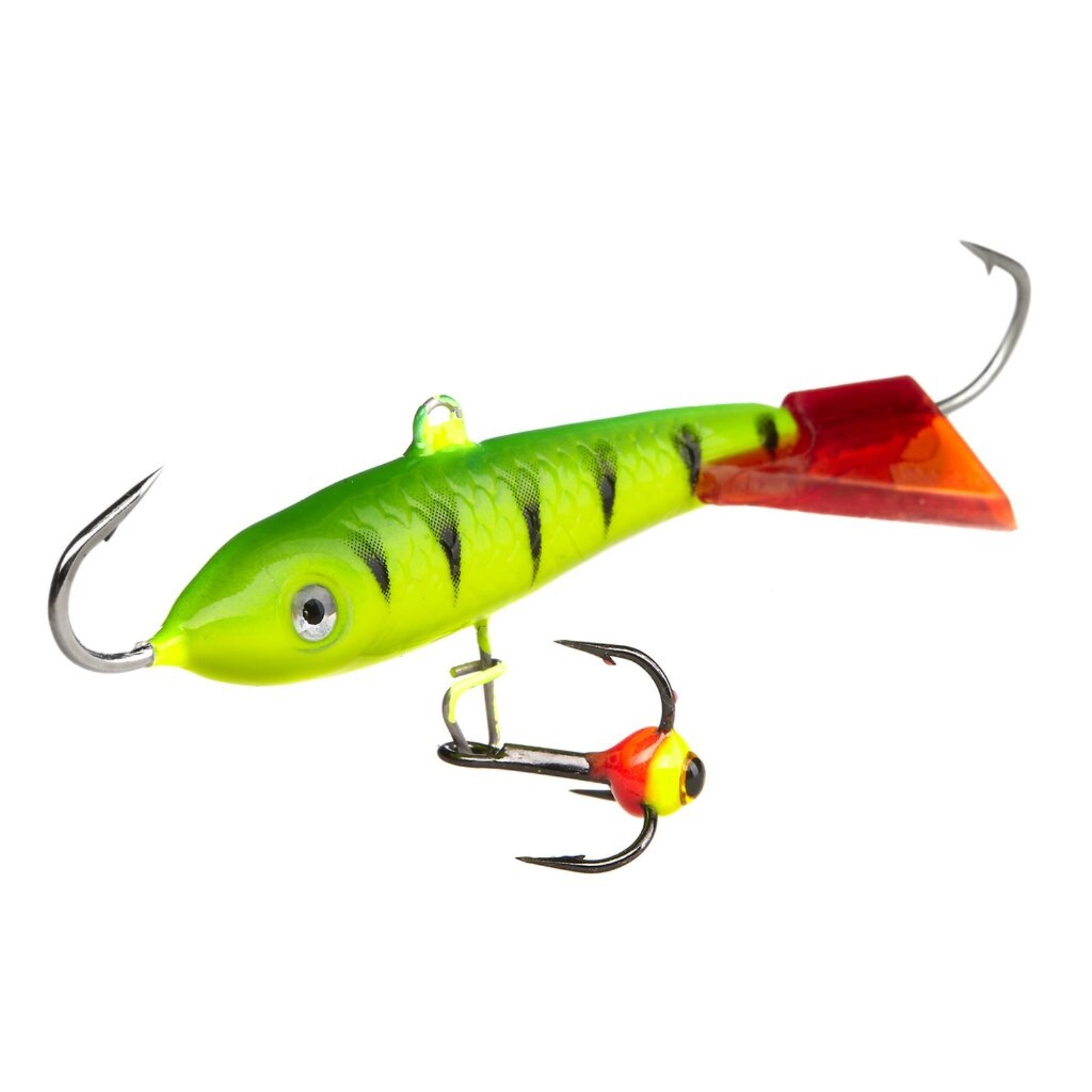 Популярный у рыболовов балансир для ловли крупного окуня, берша, судака и щуки. Длина приманки 60 мм. Для ловли судака его с успехом можно использовать на глубинах до 13 метров, если на водоеме нет течения. Особенно уловисты для судака следующие расцветки: с голубой спинкой, «красная голова» – 18 и светящаяся – 33RT. Проверено: когда полное бесклевье, судак реагирует только на расцветку 36RT. Следует учитывать, что щука, как и судак, очень «уважает» расцветки приманок, имеющих в своем составе красные оттенки. Для ловли окуня рекомендуется использовать монофильную леску диаметром от 0, 18 до 0, 25 мм, (для ловли судака и щуки до 0, 30 мм. ) или плетеную леску 0, 11 – 0, 15 мм.