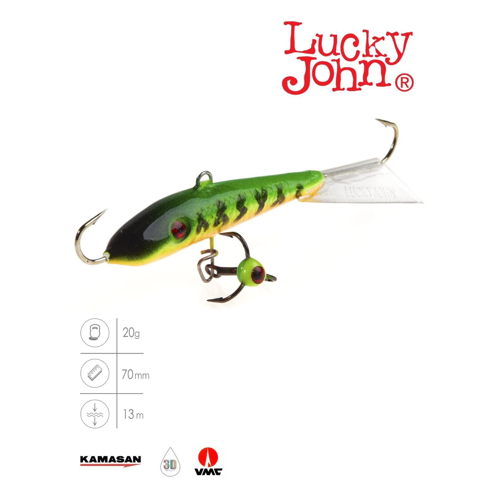 Балансир lucky john fin 5 + тройник, 7 см, цвет 20 блистер. Популярный у рыболовов балансир, для ловли крупного окуня, берша, судака и щуки длиной 70 мм. Для ловли судака его с успехом можно использовать на глубинах до 13 м, если на водоеме нет течения. Для ловли крупного окуня рекомендуется использовать монофильную леску диаметром от 0, 18 до 0, 25 мм, (для ловли судака и щуки до 0, 30 мм) или плетеный шнур 0, 11–0, 15 мм. Цвет: Зелёный Длина, мм: 70 Вес, г: 20  развернуть описание ▼