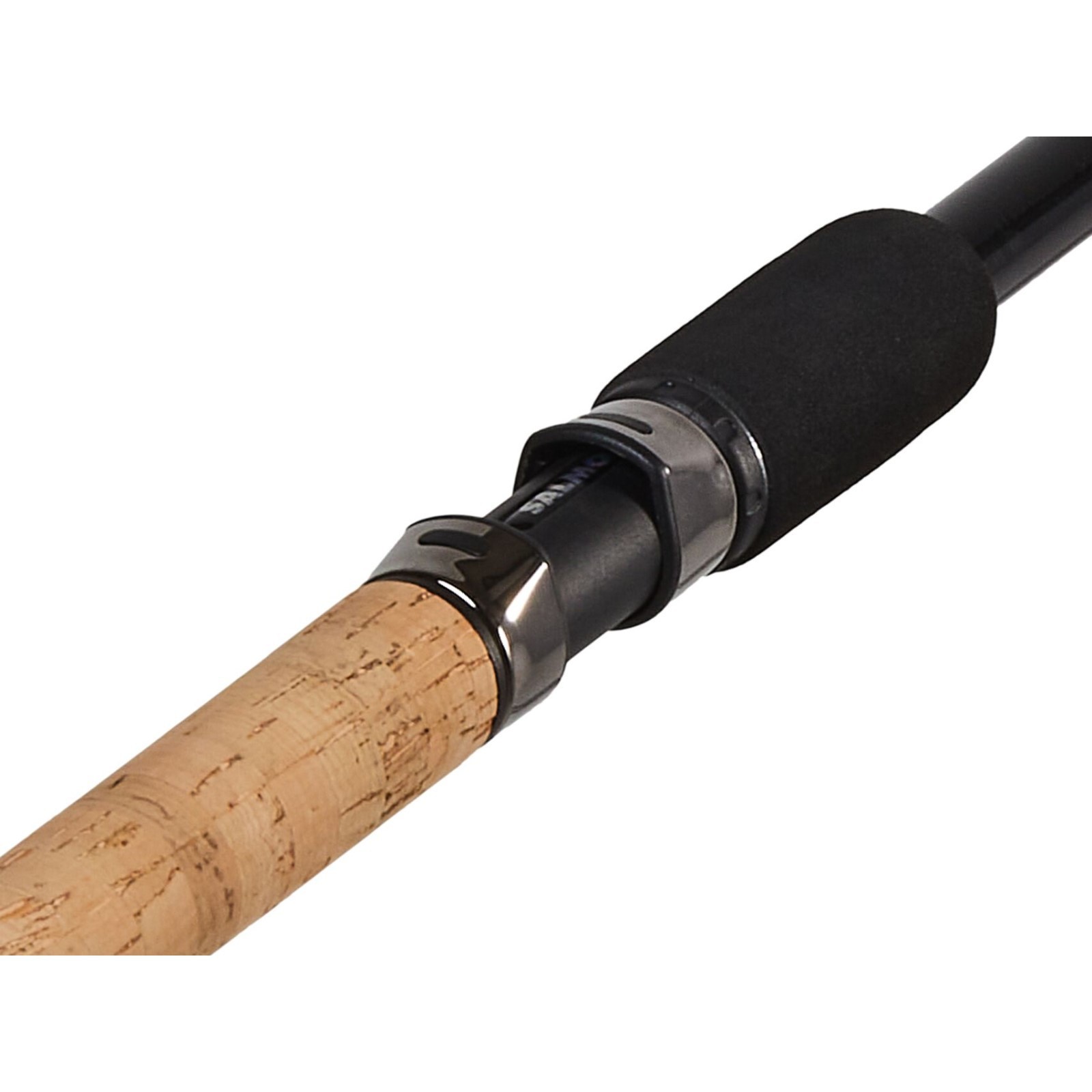 Строй бланка - быстрый, конструкция - штекерная, соединение колен типа - OVER STEEK. Кольца пропускные: на высоких ножках со вставками SIC. Рукоятка - комбинированная, катушкодержатель - винтового типа.