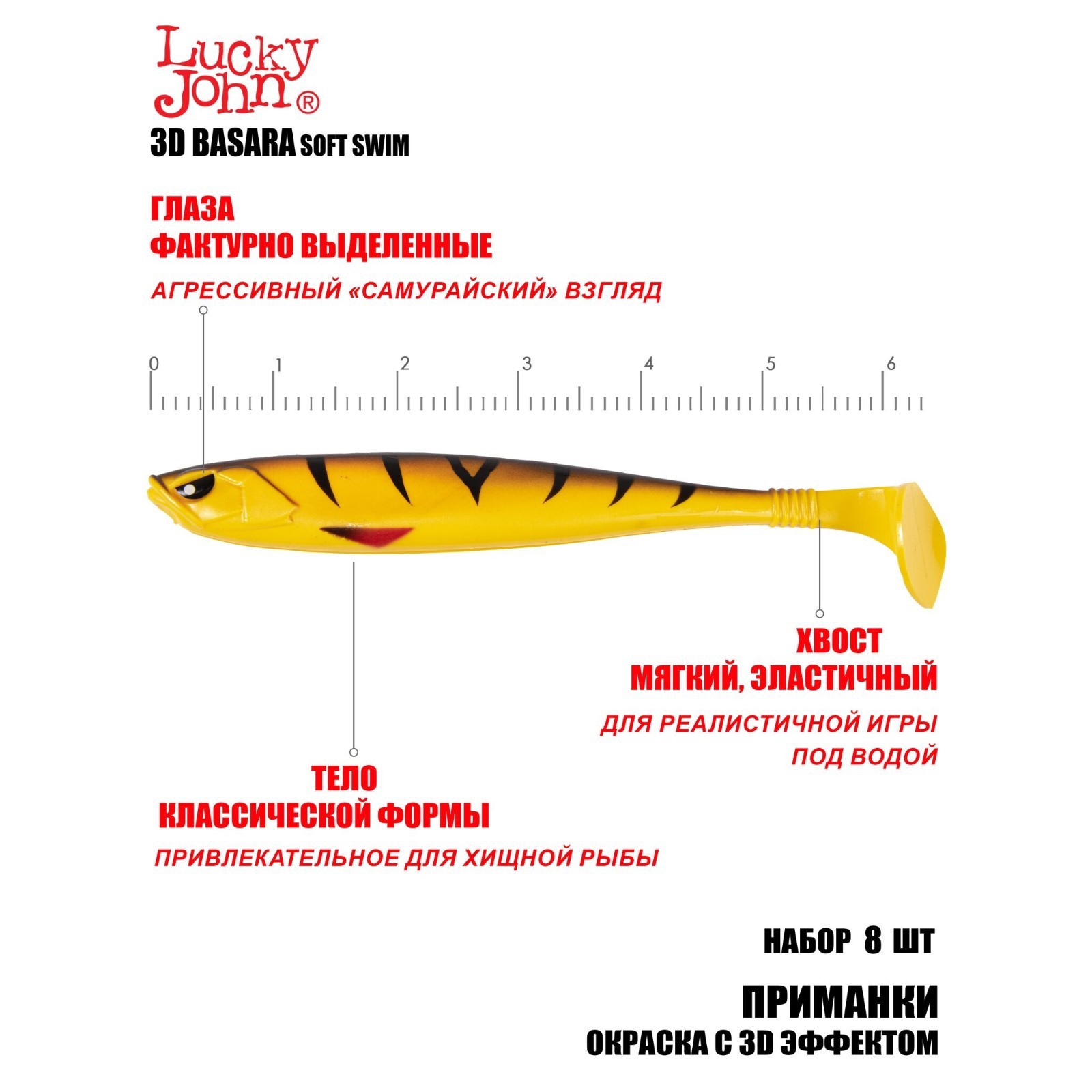 Виброхвосты lj pro series 3d basara soft swim 06,35/pg08 8шт.. BASARA SOFT SWIM – мягкая «съедобная» приманка, имеющая реалистичную окраску с 3D эффектом. Приманка представлена в 4-х размерах: 2, 5, 3, 5, 5 и 6 дюймов. Размеры 2, 5, 3, 5 дюйма прекрасно подойдут для ловли окуня и судака, размеры 5 и 6 – актуальны при ловле щуки. Приманки имеют привлекательный для рыбы запах креветки и доступны в шести расцветках, популярных у рыболовов. В теле приманки имеются специальные пазы для удобного монтажа на офсетном крючке. Цвет: Чёрный Цвет: Оранжевый Длина, см: 6.35 Тип приманки: Мягкая Материал: Силикон Вид: Виброхвост  развернуть описание ▼