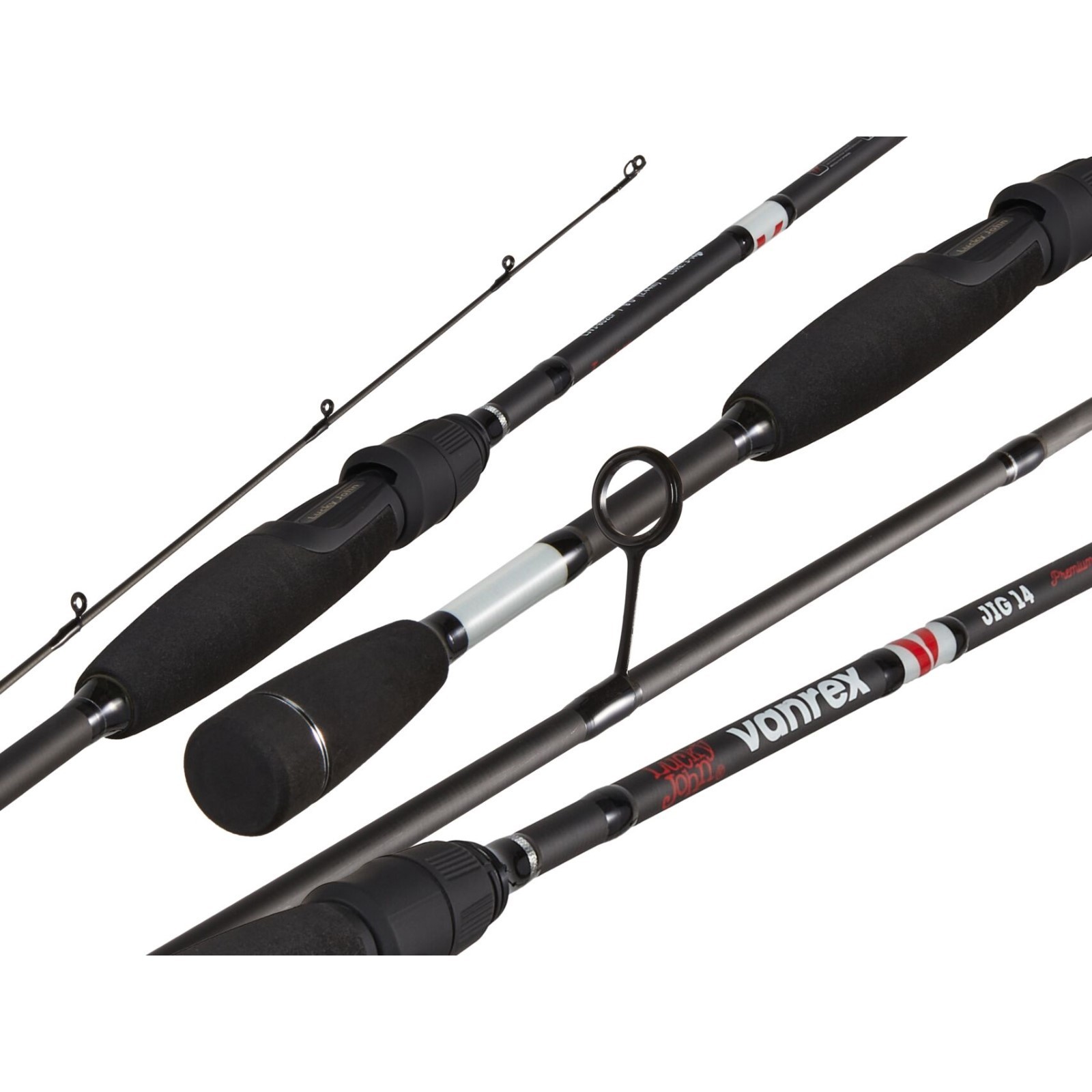 Спиннинг lucky john vanrex jig 14, тест 3-14 г., длина 2,44 м.. Современные спиннинговые удилища для джиговой ловли. Однолапочные кольца, свойственные более дорогим моделям, позволили снизить общий вес удилищ. Отличное сочетание цена - качество. Бланк: материал - углеволокно (T30). Строй быстрый, класс спиннинга L. Конструкция штекерная, соединение колен типа OVER STEEK. Рукоятка: EVA, разнесённая. Кольца пропускные: со вставками SIC, облегчённые. Катушкодержатель: с верхней гайкой. Длина, м: 2.44 Минимальная длина в сложенном состоянии, м: 1.24 Рабочая длина, мм: 2440 Сезон: Лето Сезон: Всесезонный Вид: Спиннинг штекерный Кольца: Да Конструкция: Штекерное Материал ручки: ЭВА Материал: Углеволокно Тест удилища, г: 3 - 14 Тест удилища, г: 3-14 Строй: Быстрый Строй: Средне-быстрый Способ ловли: Джиговый  развернуть описание ▼