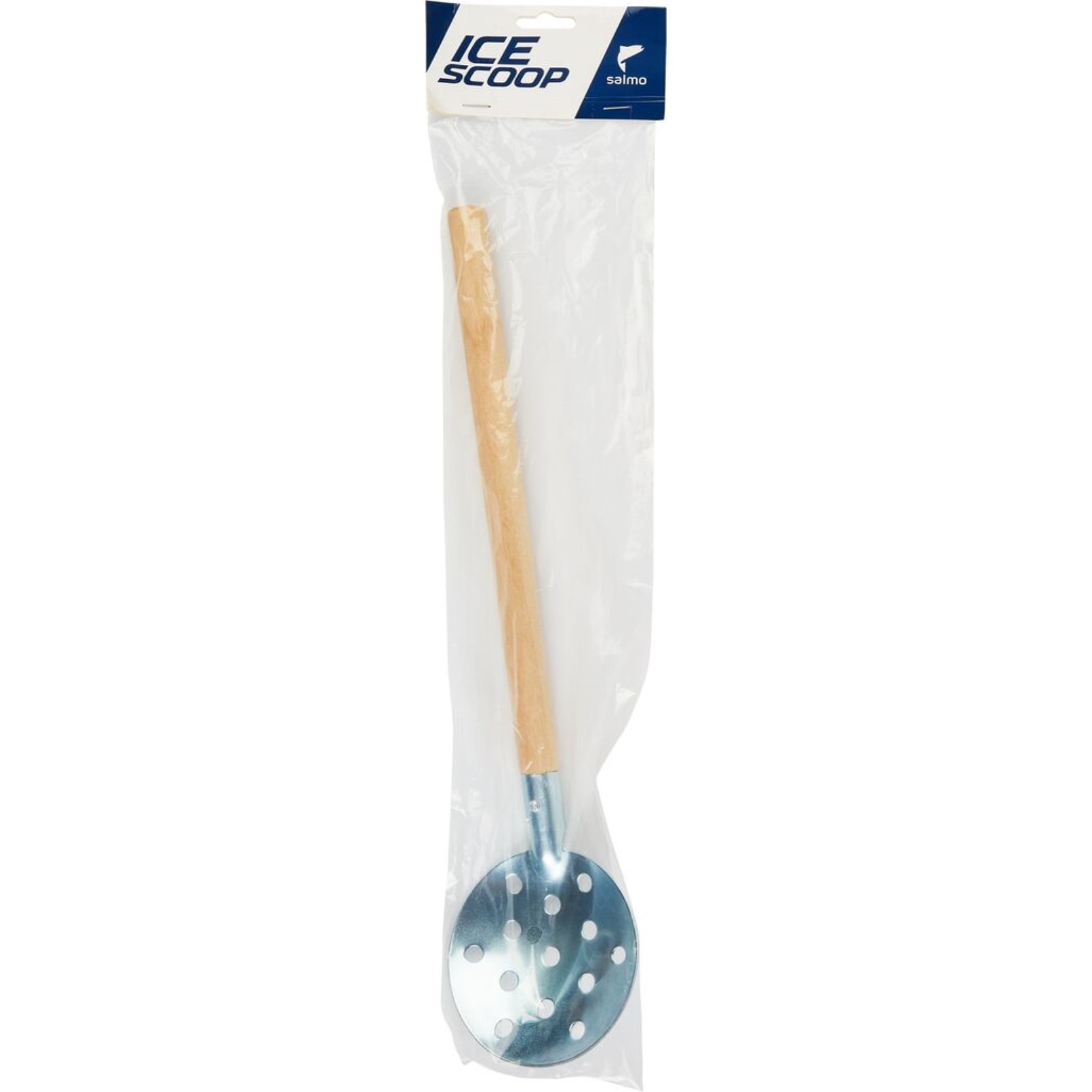 Черпак рыболовный salmo 400. На зимней рыбалке со льда рыболову приходится очень часто чистить лунки – вынимать из них шугу, образовавшуюся при сверлении лунки, или постоянно удалять корочку нарастающего льда при ловле в морозную погоду. Чтобы упростить эту необходимую работу, предлагается несколько вариантов черпаков. Черпак классический – с деревянной ручкой. Цвет: Серебристый Вид черпака: Классический Материал: Дерево Материал: Металл Вид: Черпак  развернуть описание ▼