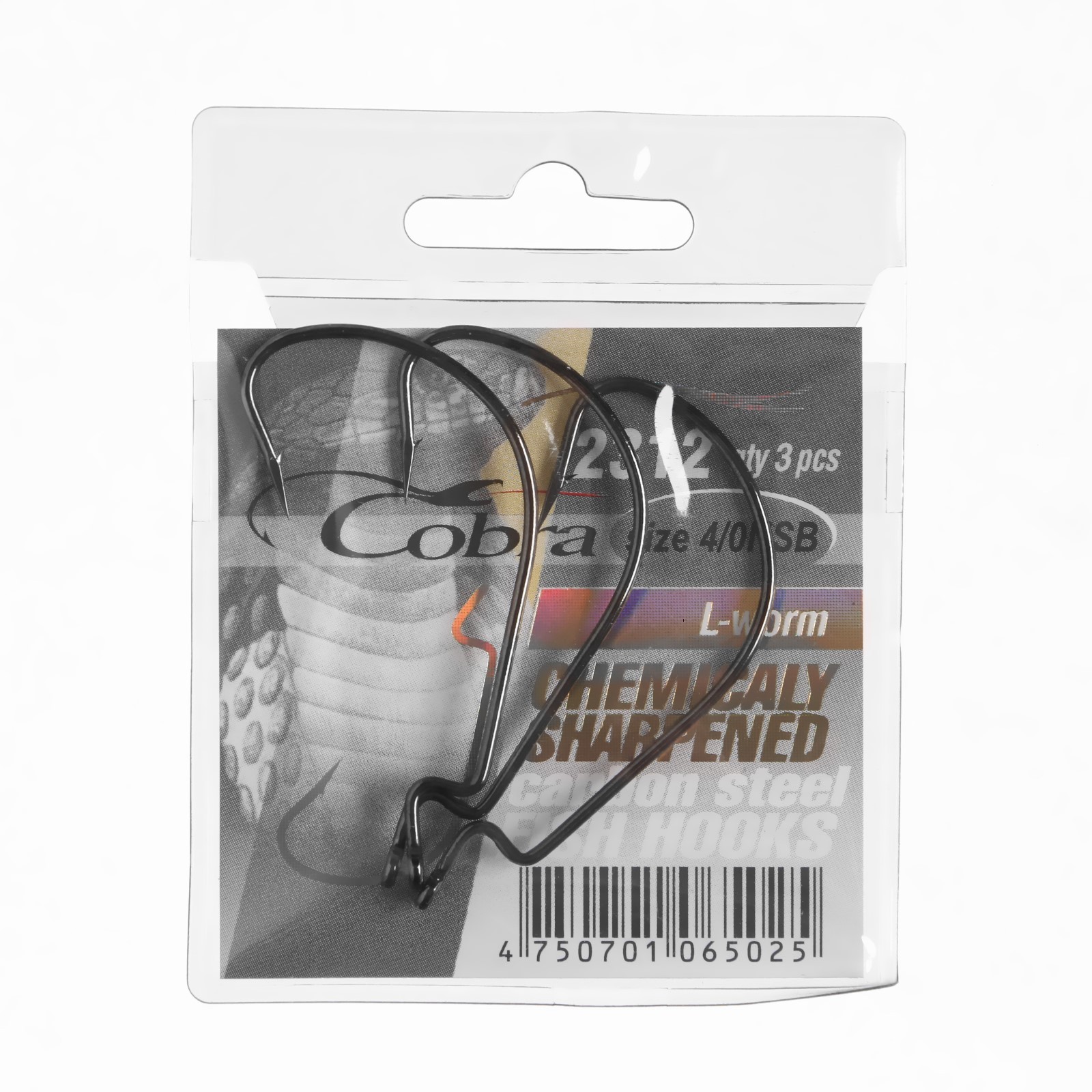 Крючки офсетные cobra l-worm, серия 2312, цвет nsb, № 04/0, 3 шт.. Офсетные крючки с широкой формой скошенного загиба, укороченным цевьем с “правильным” Z-изгибом ступеньки. Крючки используются в каролинской и техасских оснастках при ловле на мягкие пластиковые приманки, в том числе и на достаточно объемные. Крючки имеют темное, очень стойкое, антикоррозийное покрытие и чрезвычайно остры. Цвет: NSB. В упаковке, шт.: 3 Вид крючка: Офсетный Размер крючка: 4/0 Вид крюка: Одинарный Офсетный: Да Бородка на жале: Да Бородки на цевье: Нет Защита от зацепов: Нет  развернуть описание ▼