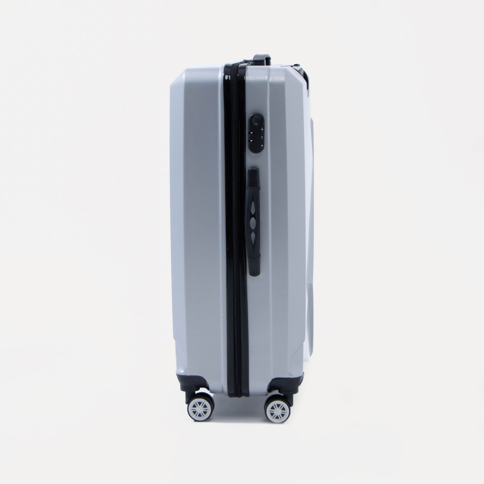 Чемодан большой 84 л (l), отдел на молнии, кодовый замок, цвет серебристый. Цвет: Серебристый Количество колёс: 4 Возраст: Любой Материал: Пластик Размер: 28" (L) Дополнительный объём: Без увеличения Вид пластика: ABS-пластик Каталог ВБ: Да  развернуть описание ▼