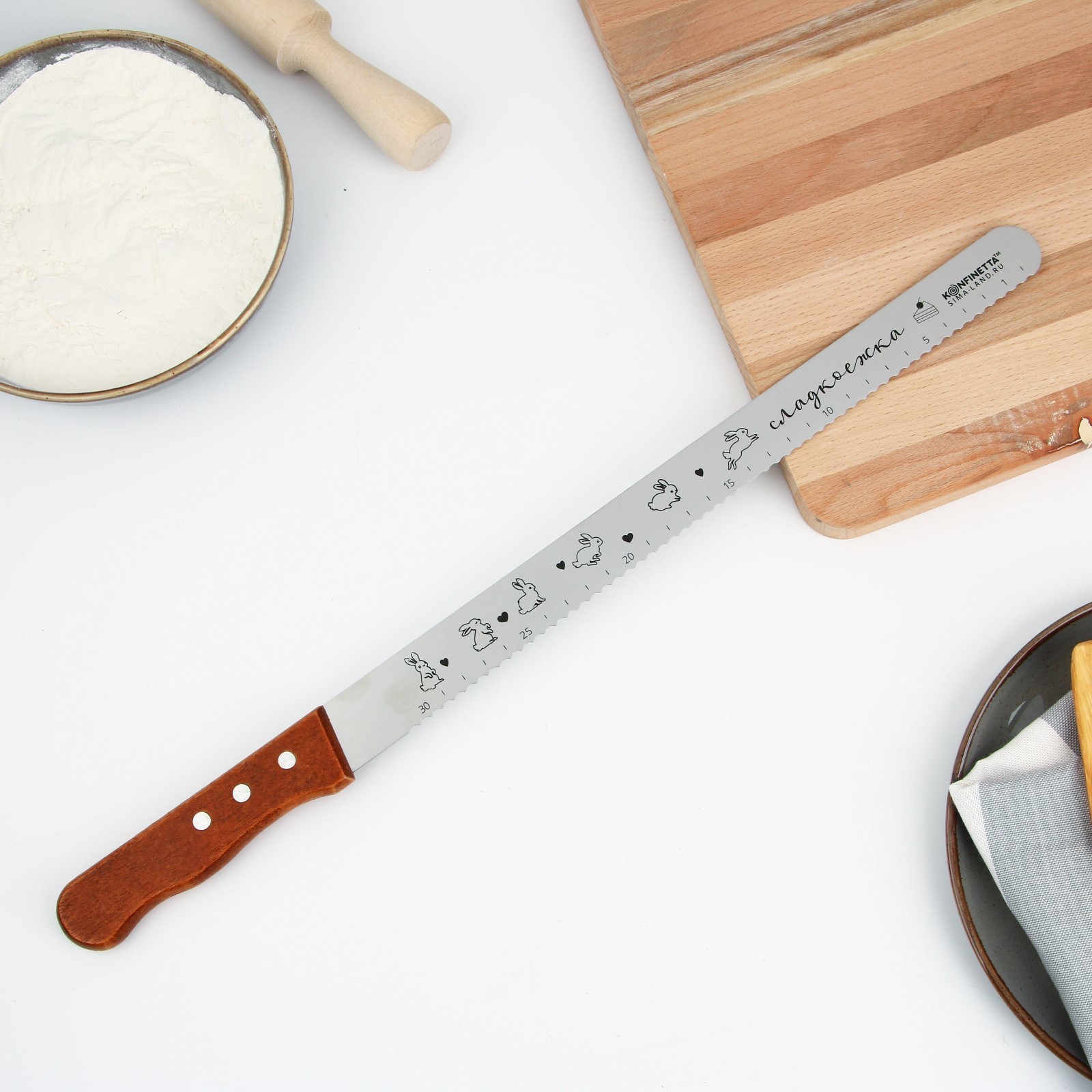 Нож для бисквита с крупными зубцами «кролики», 48 х 3 см, лезвие 35 см Нож для бисквита с крупными зубцами «кролики», 48 х 3 см, лезвие 35 см