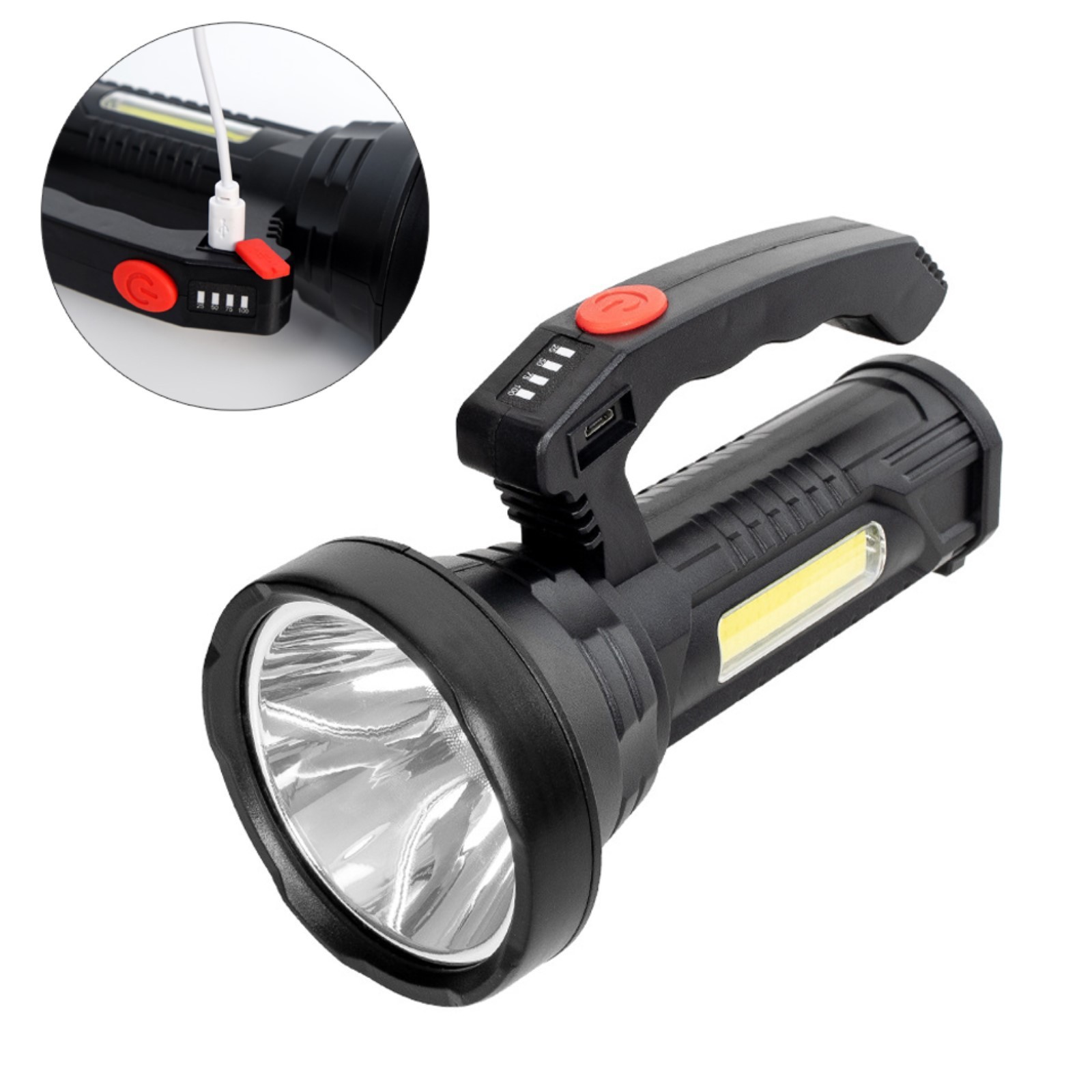 Фонарь светодиодный аккумуляторный ручной, 10+5 вт, jl-501, 2000 мач, xpe, usb. Особенности: Тип фонарика: ручной, аккумуляторныйМатериал: пластик ABSМаксимальная дальность: 200 метровЕмкость аккумулятора: 2000 мАчИсточник питания: АКБ 18650Мощность: 10 и 5 ВТИсточник света: XPE и COB диодыСпособ зарядки: USB (в комплекте)Индикатор заряда: естьКоличество режимов: 4Защита от воды: да Цвет: Чёрный Материал корпуса: АБС-пластик Влагозащита: Нет Тип питания: От аккумулятора Способ зарядки аккумулятора: От USB Особенности: С ручкой  развернуть описание ▼